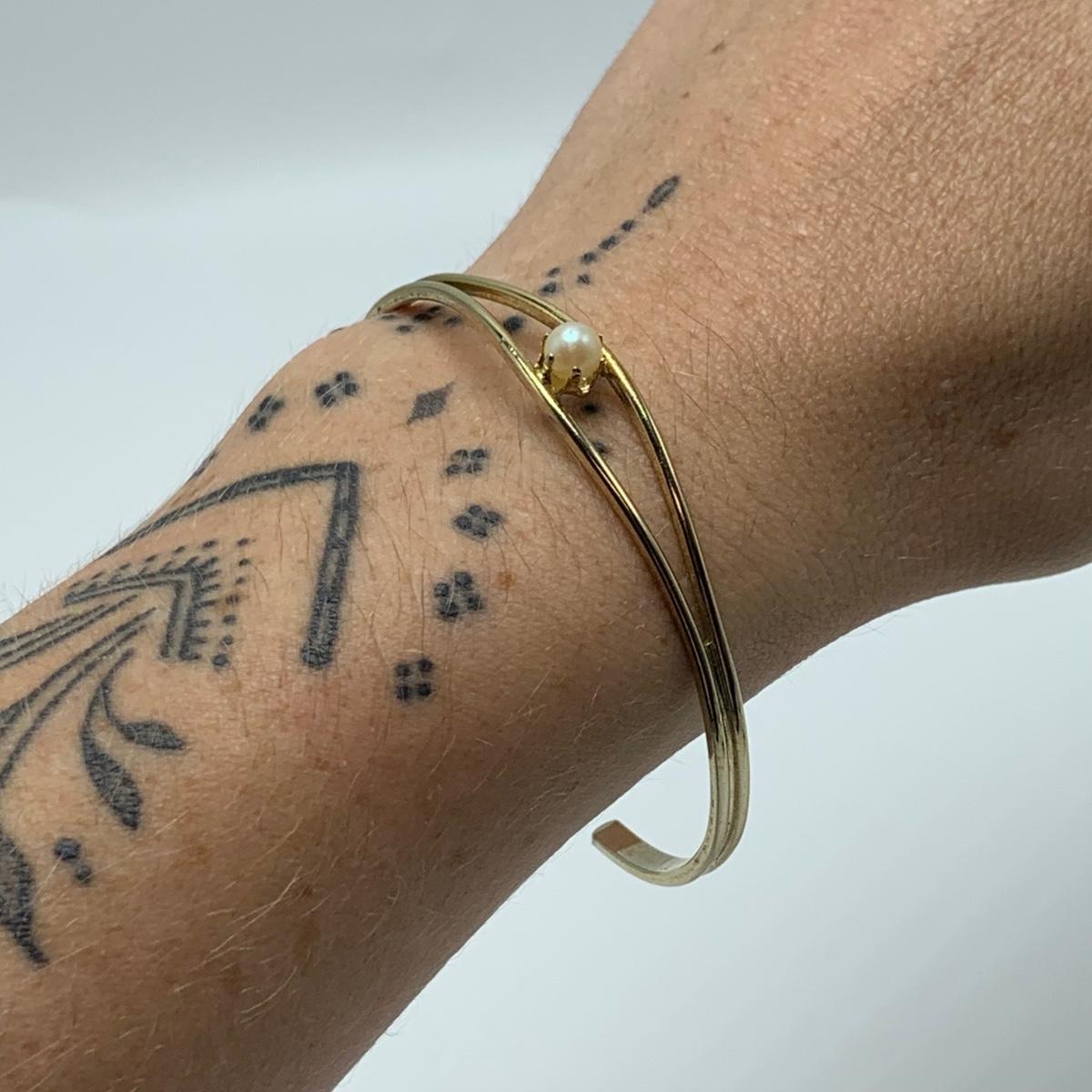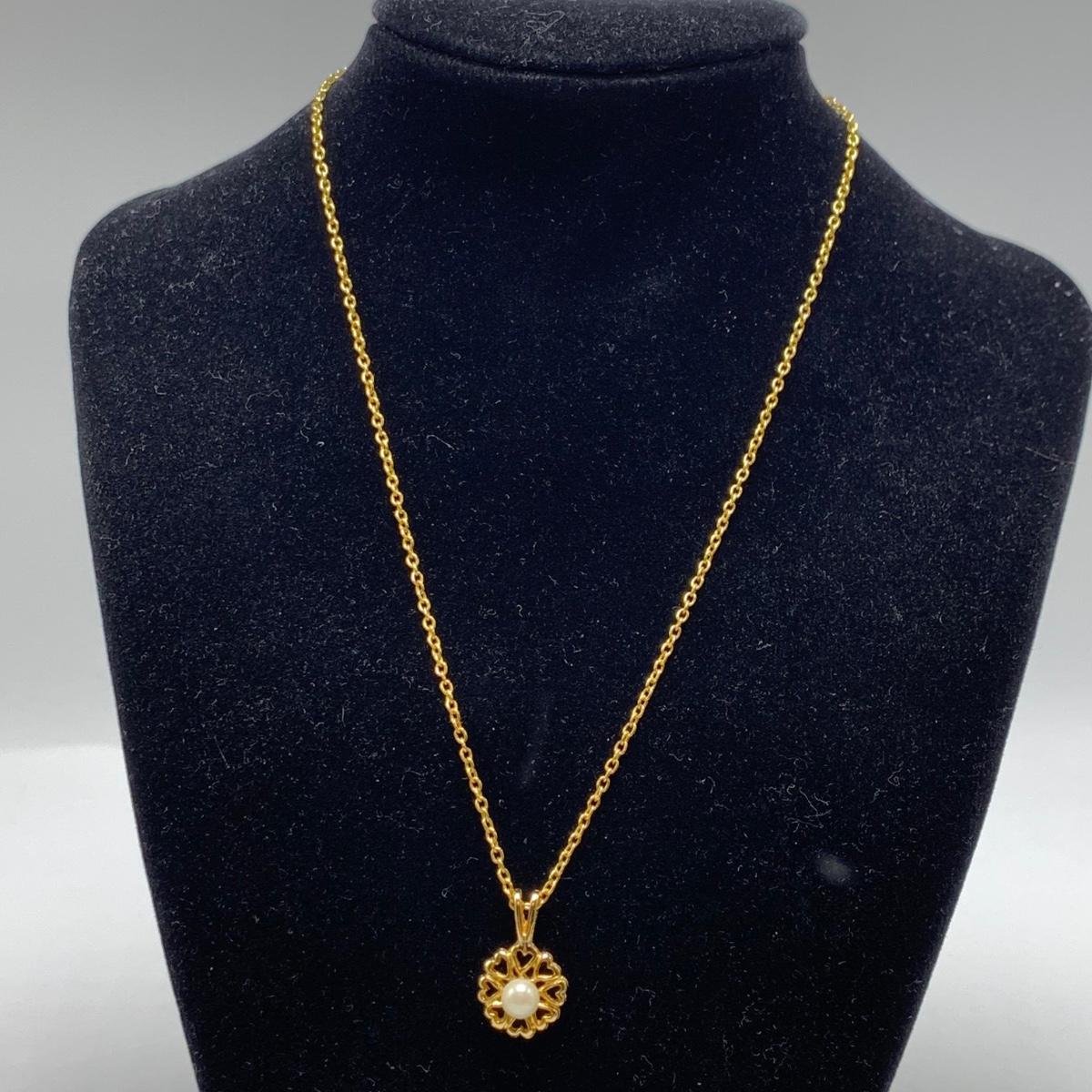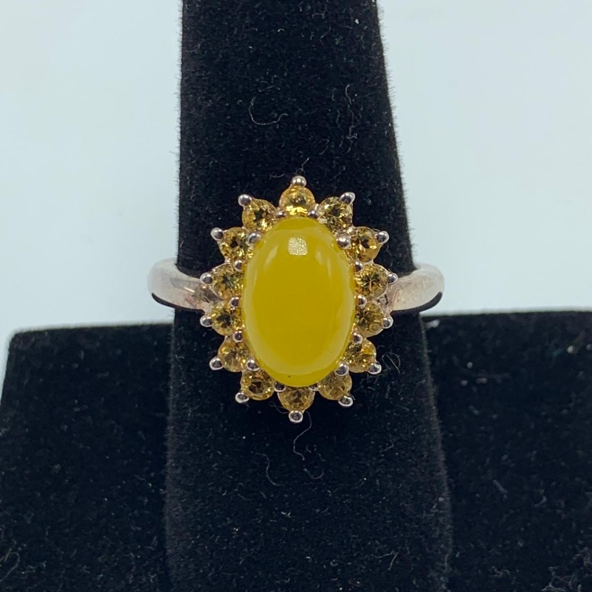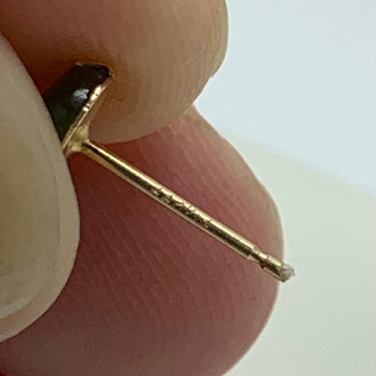 Five necklaces, four rings, a cuff bracelet, a pair of stud earrings, and a loose green gemstone. Longest necklace chain that has oval tan colored stone is 20”; it has no markings, nor does the necklace with the pearl-like bead. Necklace with pink colored gemstone and its pendant are marked “˜14K’. Chain with single green pendant is marked “˜Sarah Cov 1/20 12K’. Necklace with four green gemstones is marked “˜CID 10K’. The ring with the large yellow stone is marked 925, the one with pink stones is marked 10K, and the one with the white stone is marked “˜18K HGE’. This one shows wear to the band and does not appear to be solid 18K. Please see photos for all markings found. We cannot guarantee the authenticity of the gemstones.