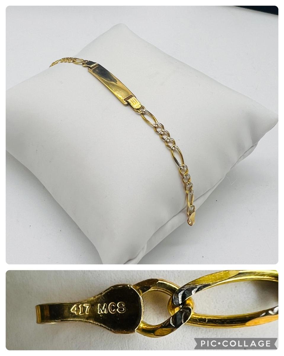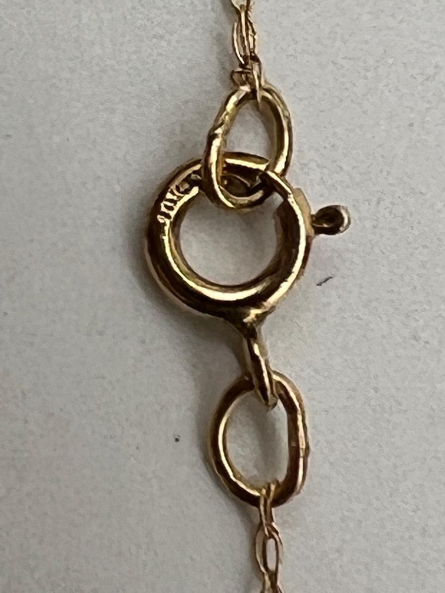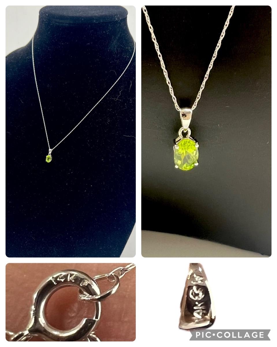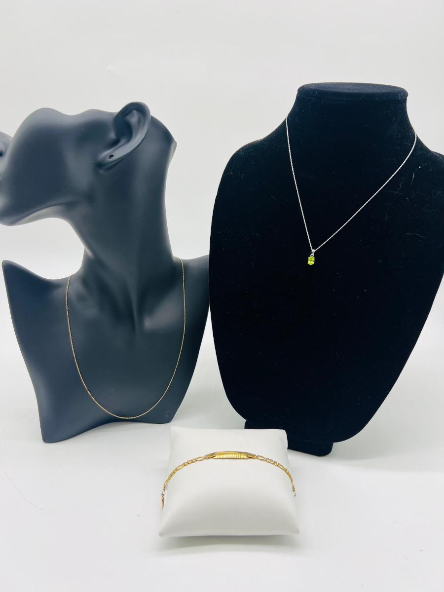 Jewelry lot of 14k & 10k. See markings. 14k necklace measures 18 inches with a 14k Peridot Pendant. Gold 10K necklace measures 18 inches. 417 MCS Jewelry 10 Karat (I believe) child bracelet measures 5 1/2 inches