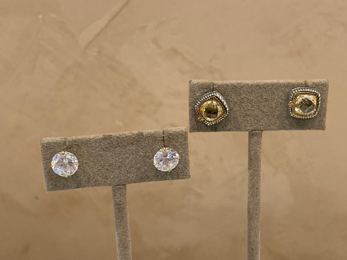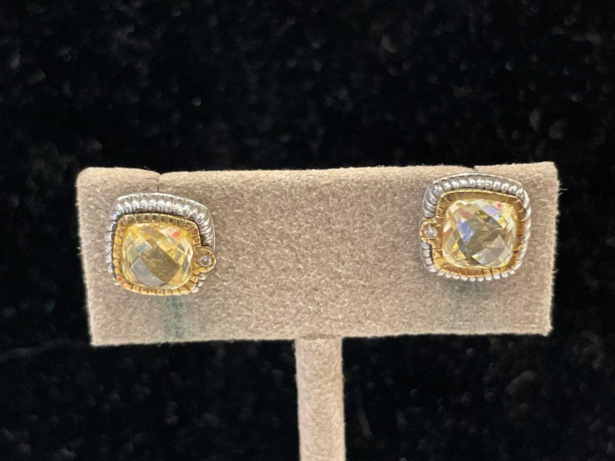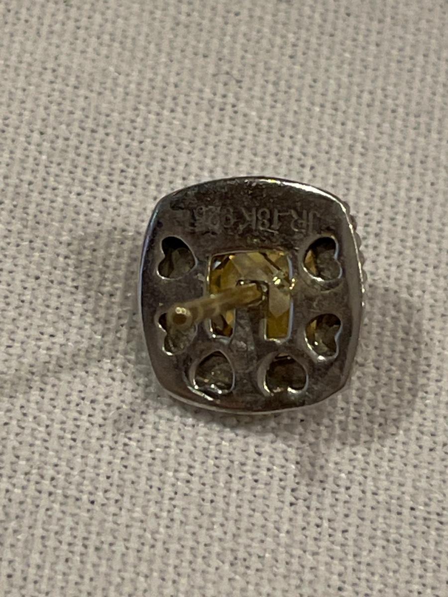 Citrine color earrings are stamped JR 18k 929 on stud and 925 on back