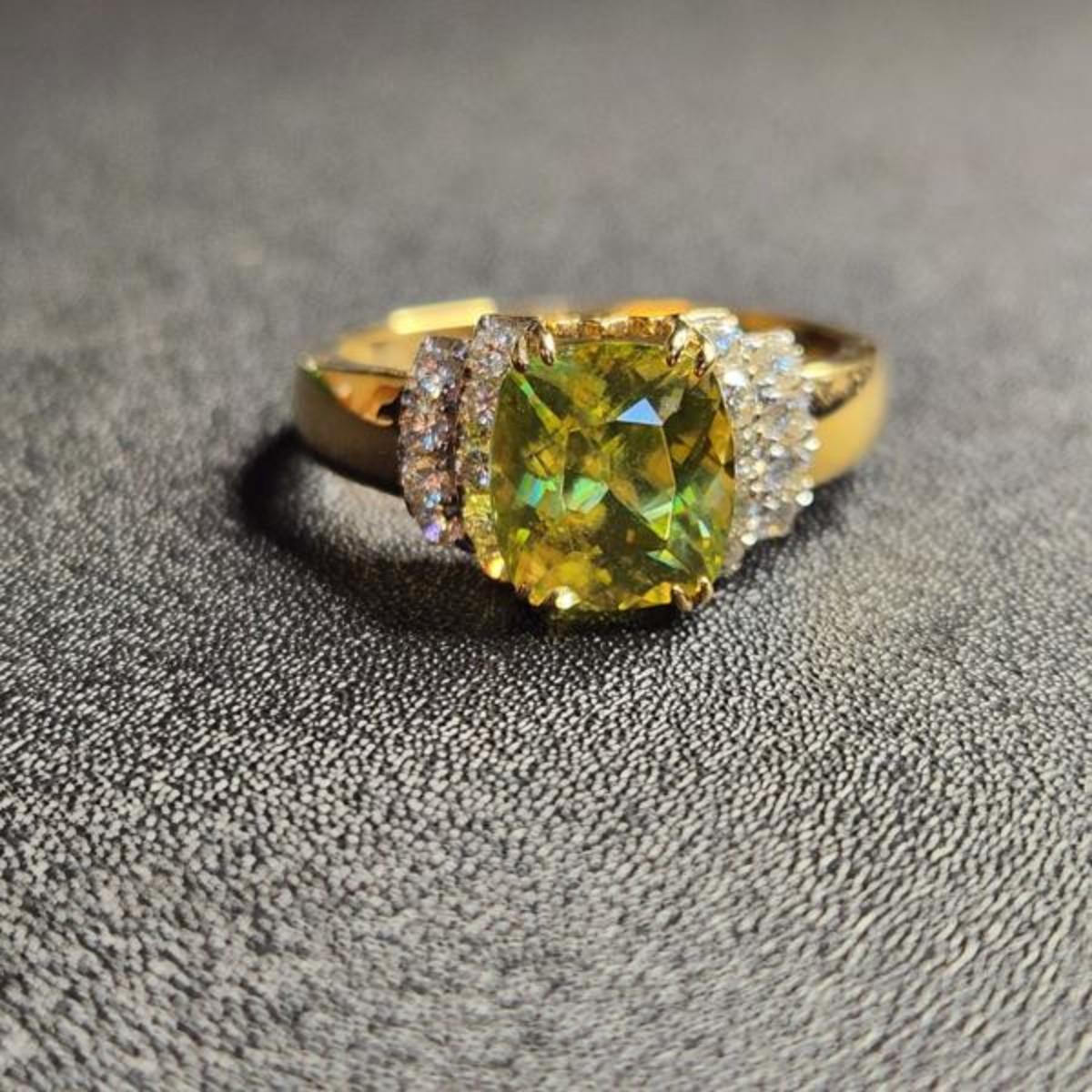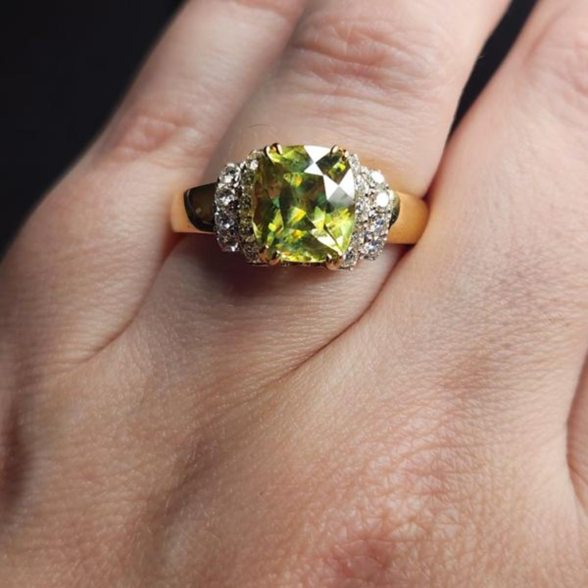 14k 5.07 Cttw Sphene And VS Diamond Ring Size 12