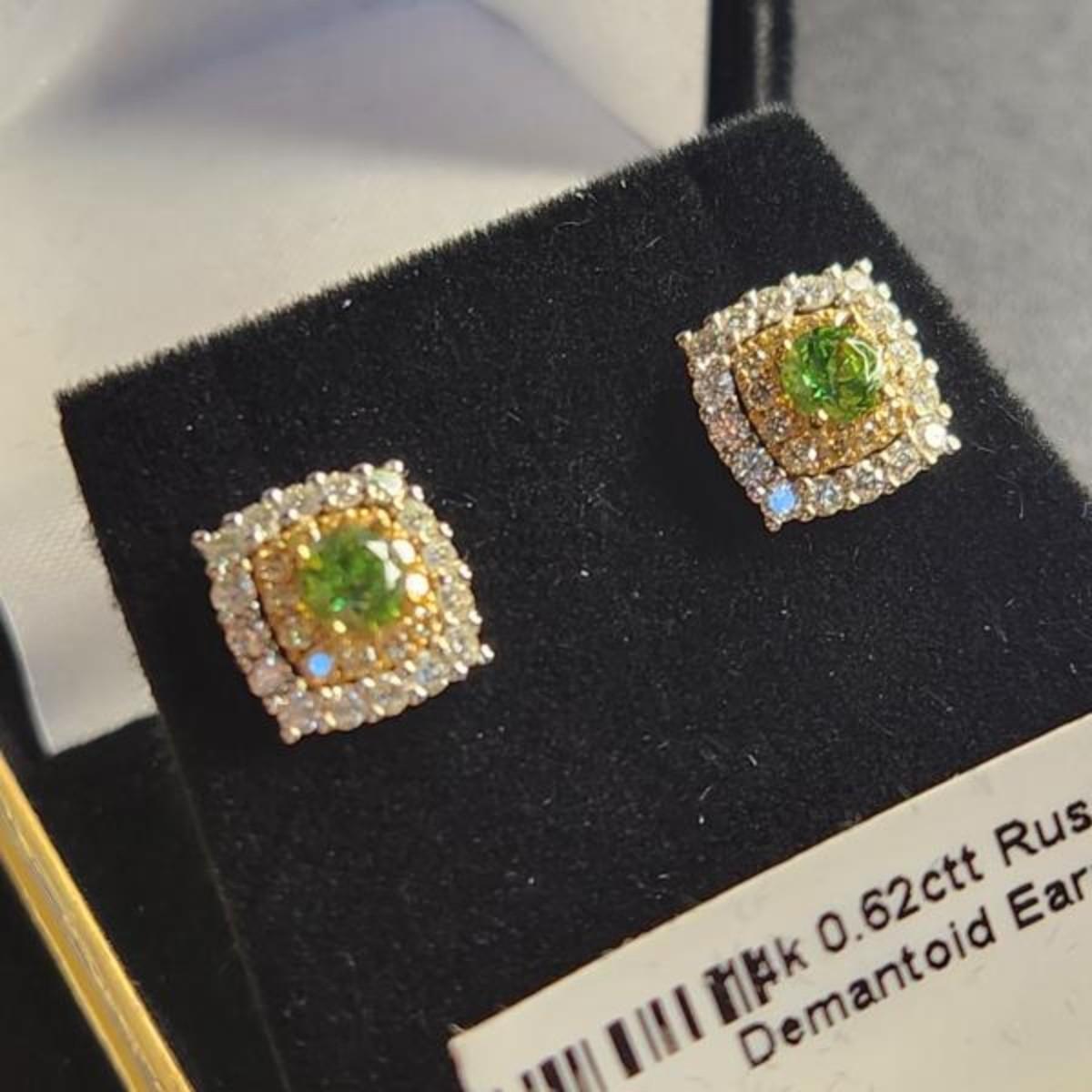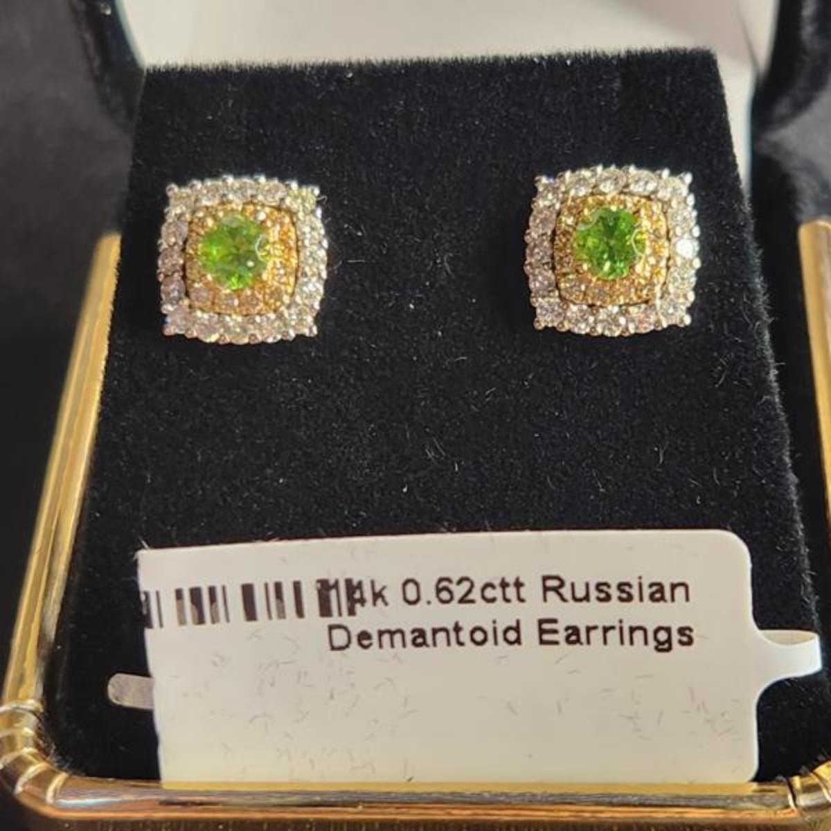 14k .62 natural russian demantoid garnet diamond earrings. Pictures dont do justice . these are such a nice looking ones in person.