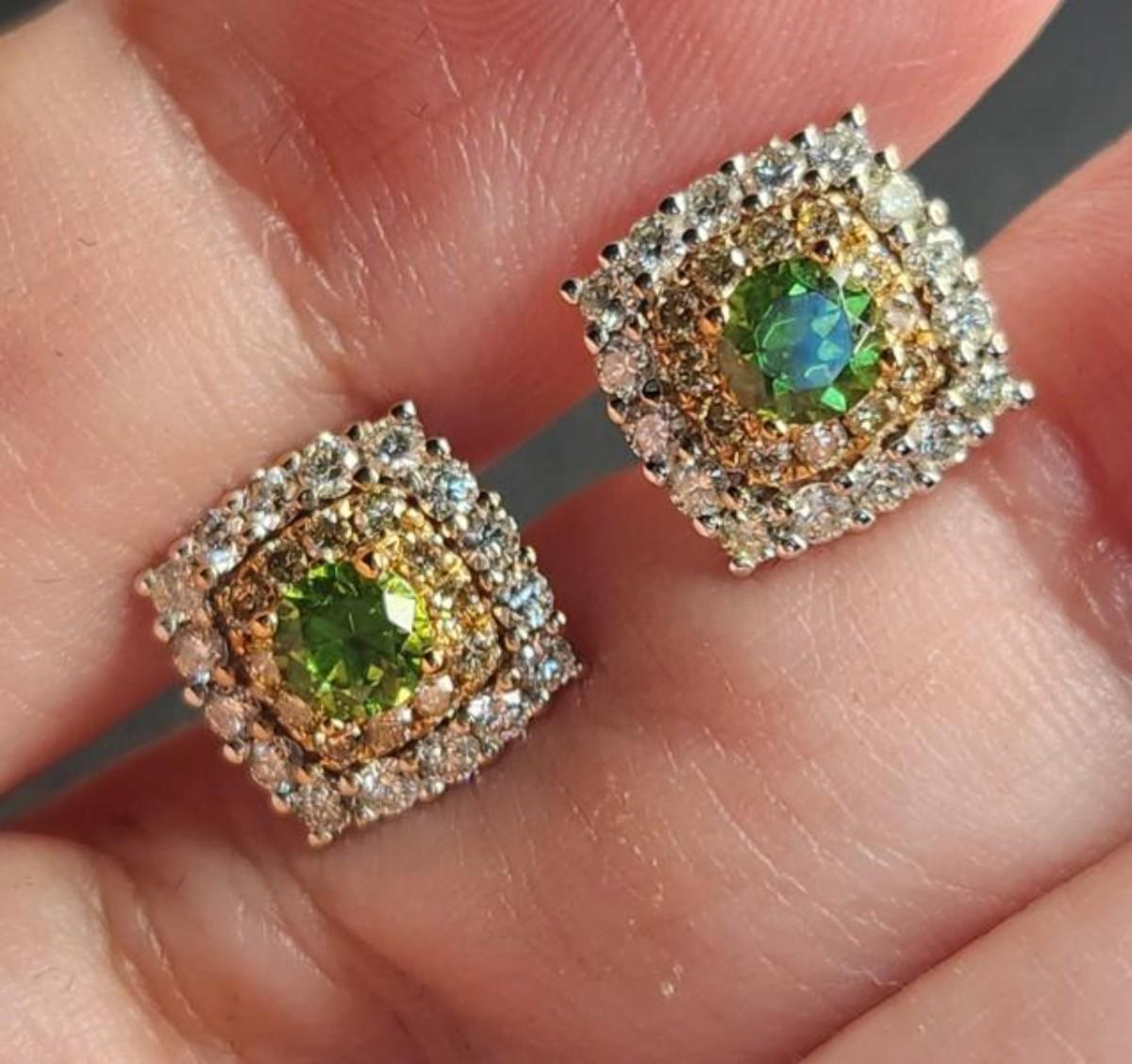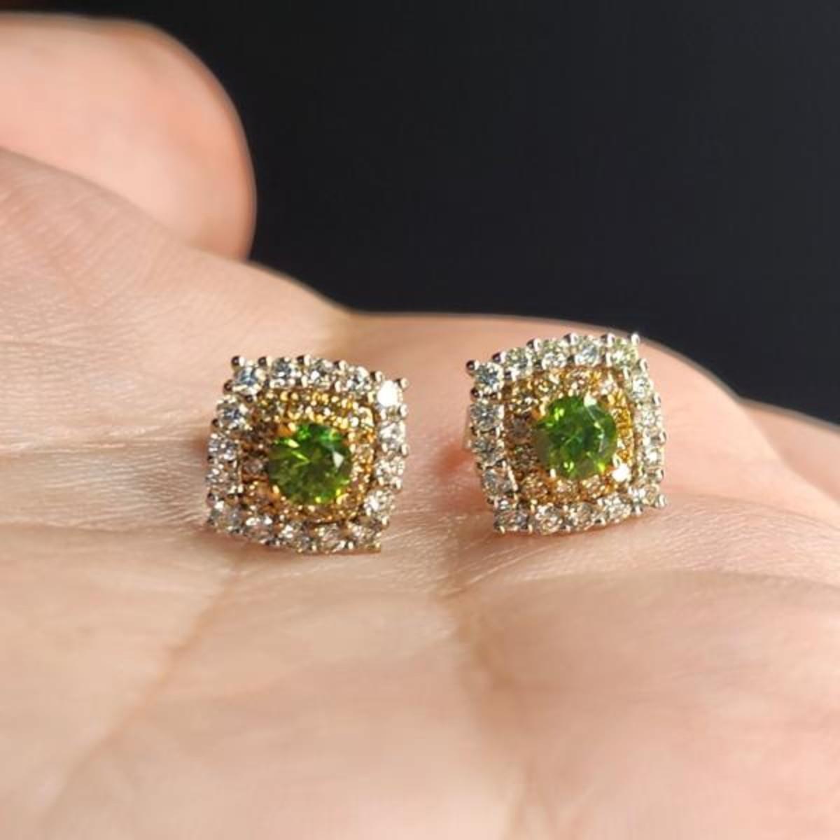 14k .62 Natural Russian Demantoid Garnet Diamond Earrings