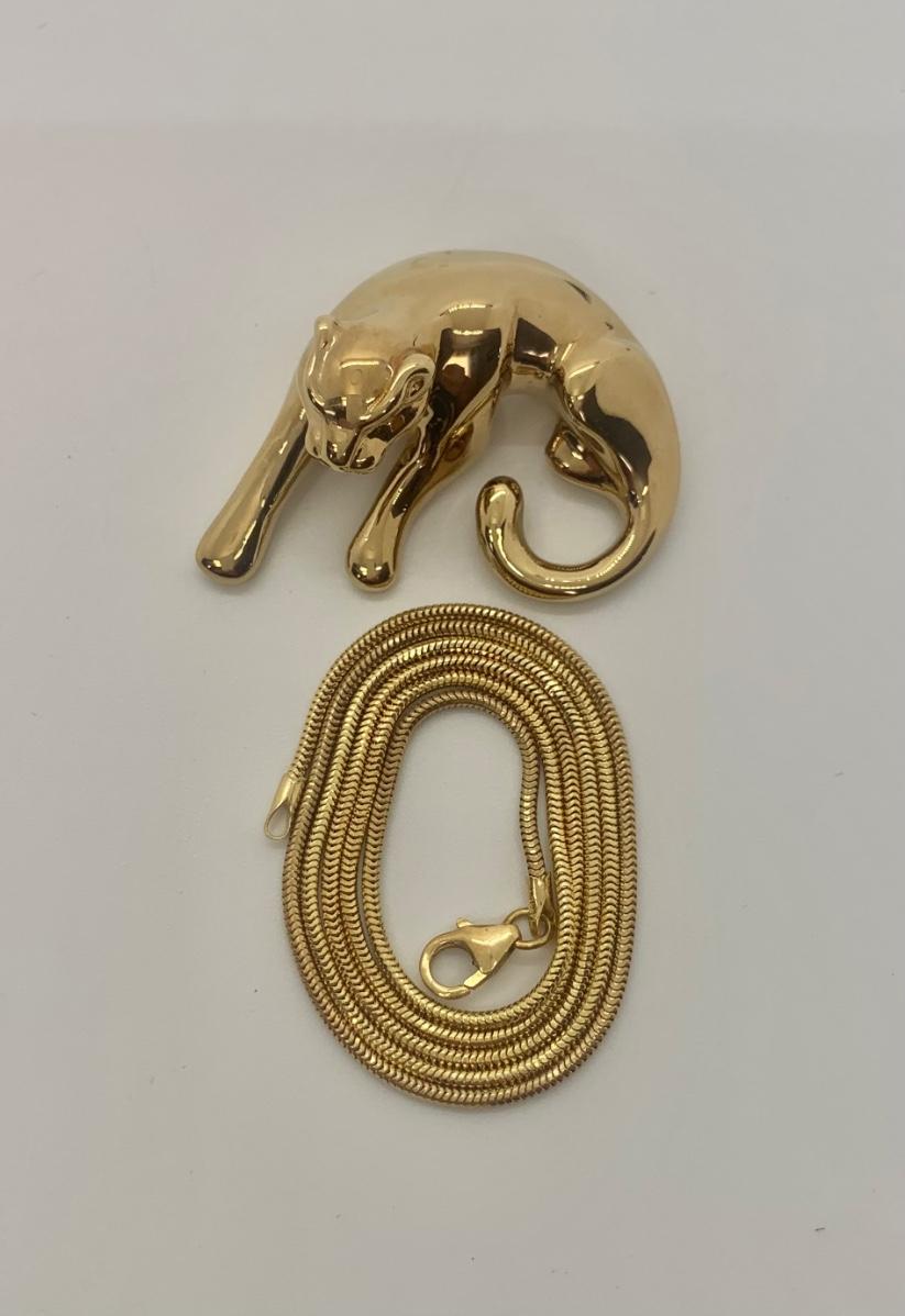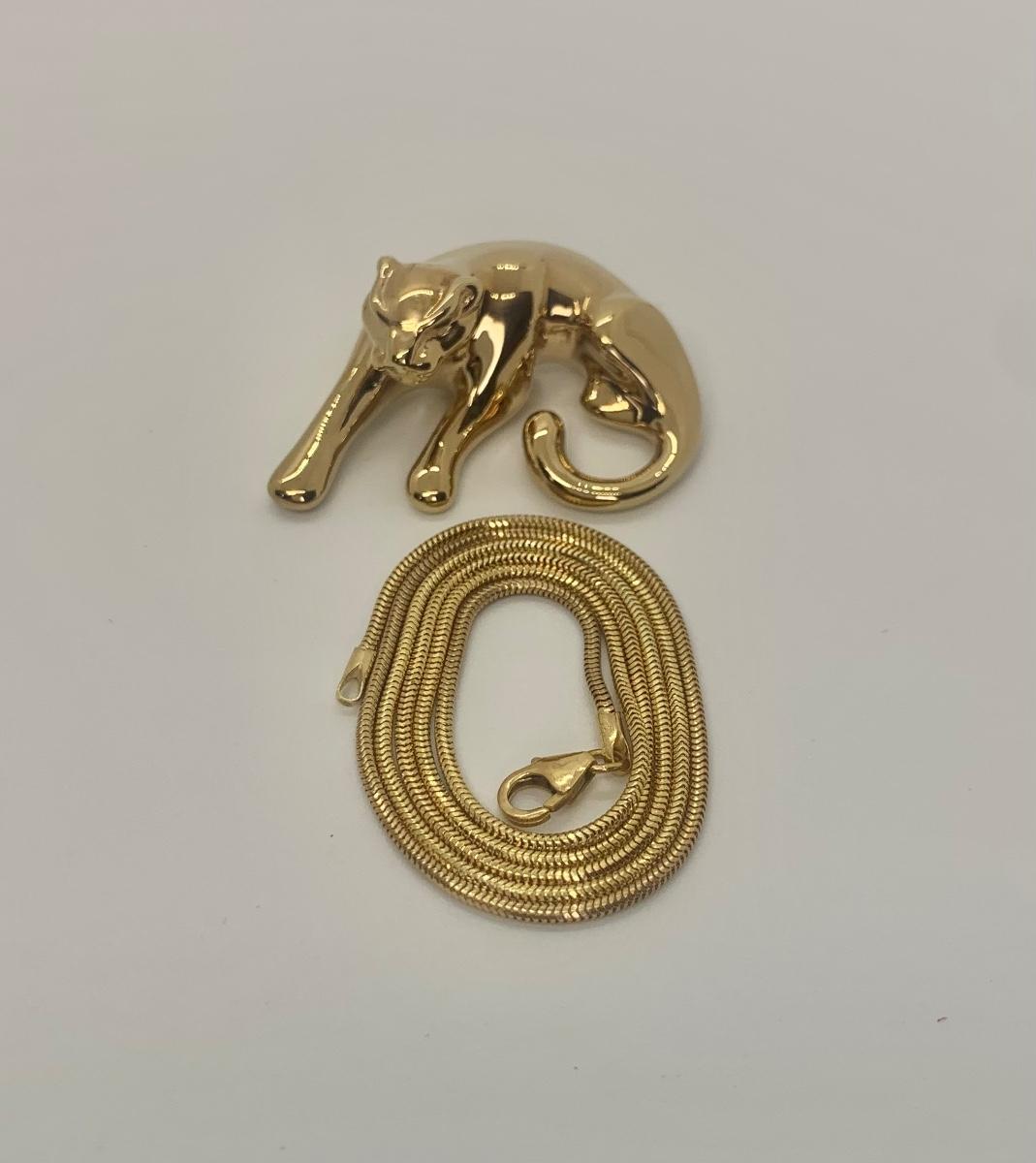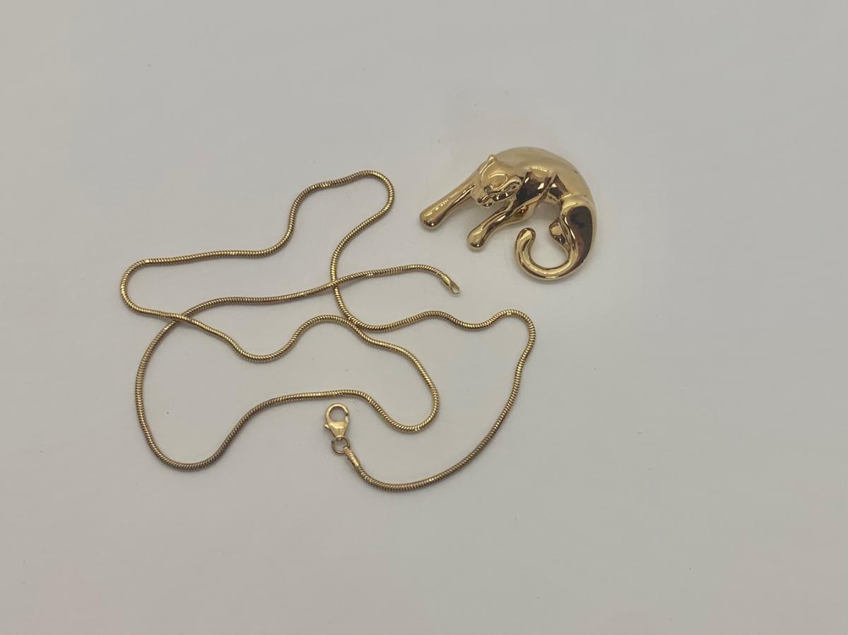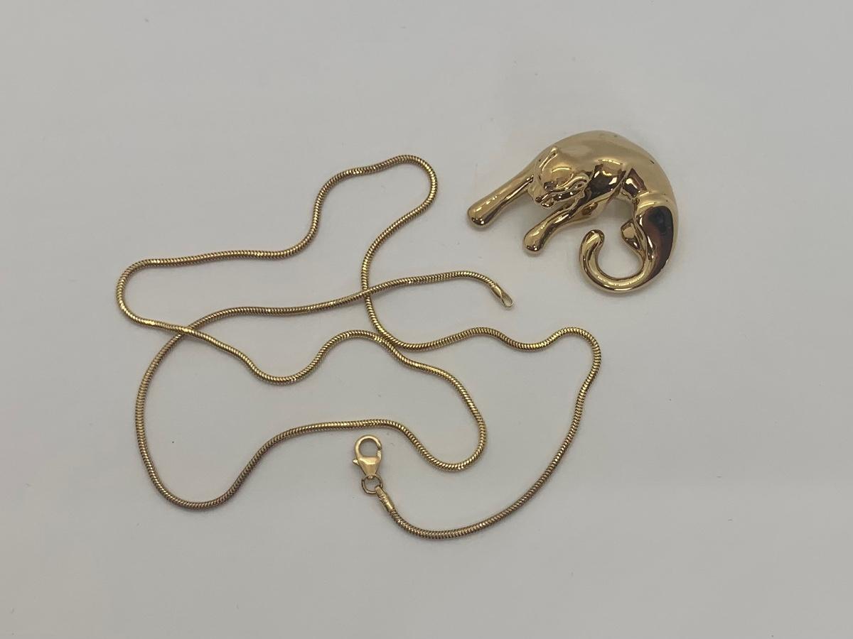 14k 7.9g UNS 20” Milor Snake Chain & Jaguar Pendant