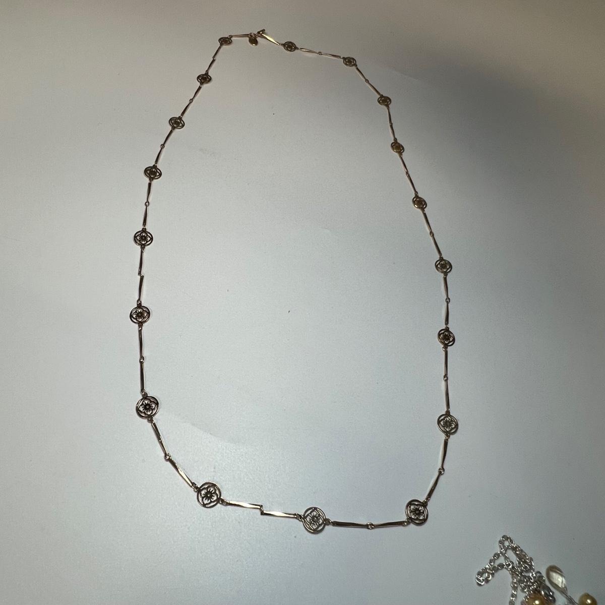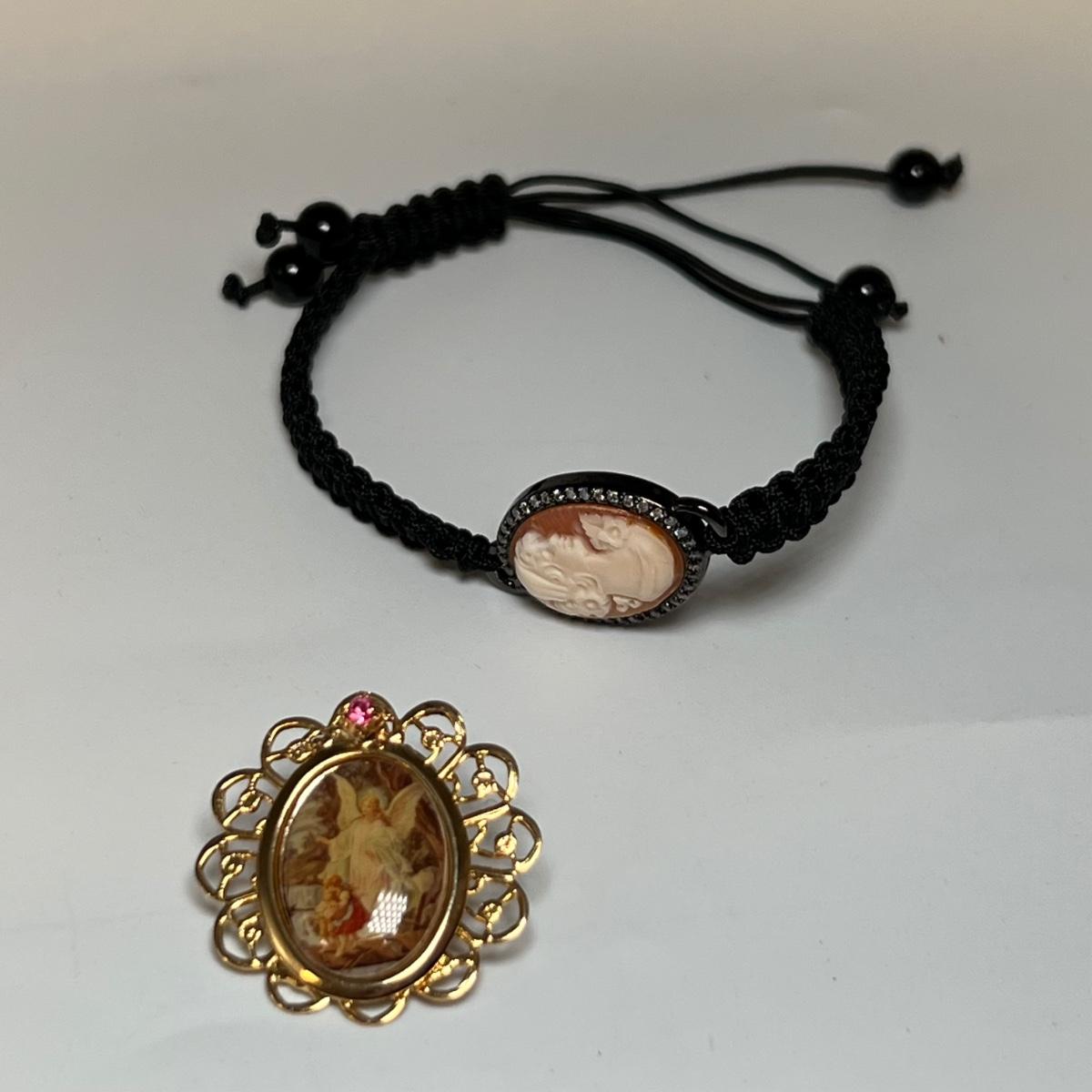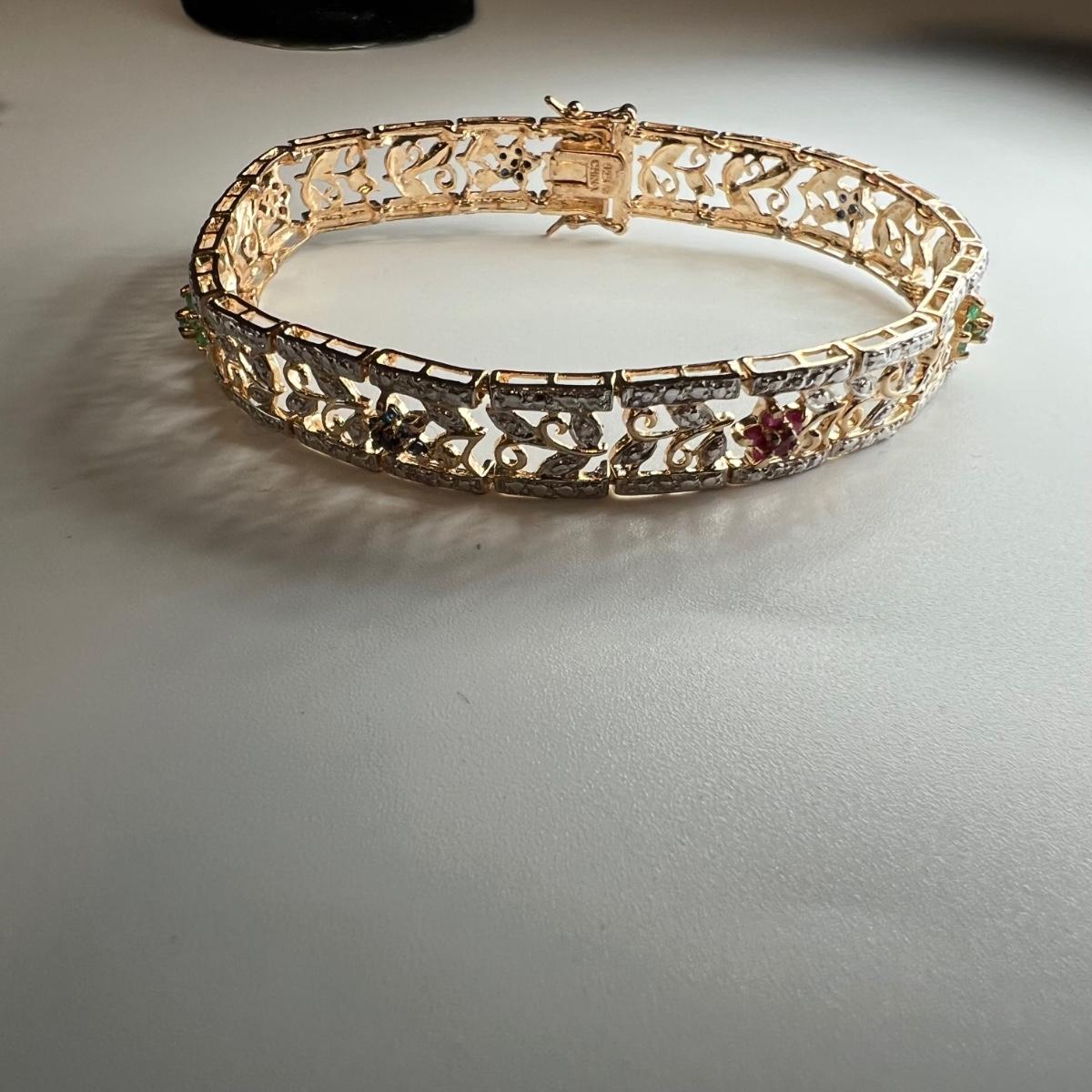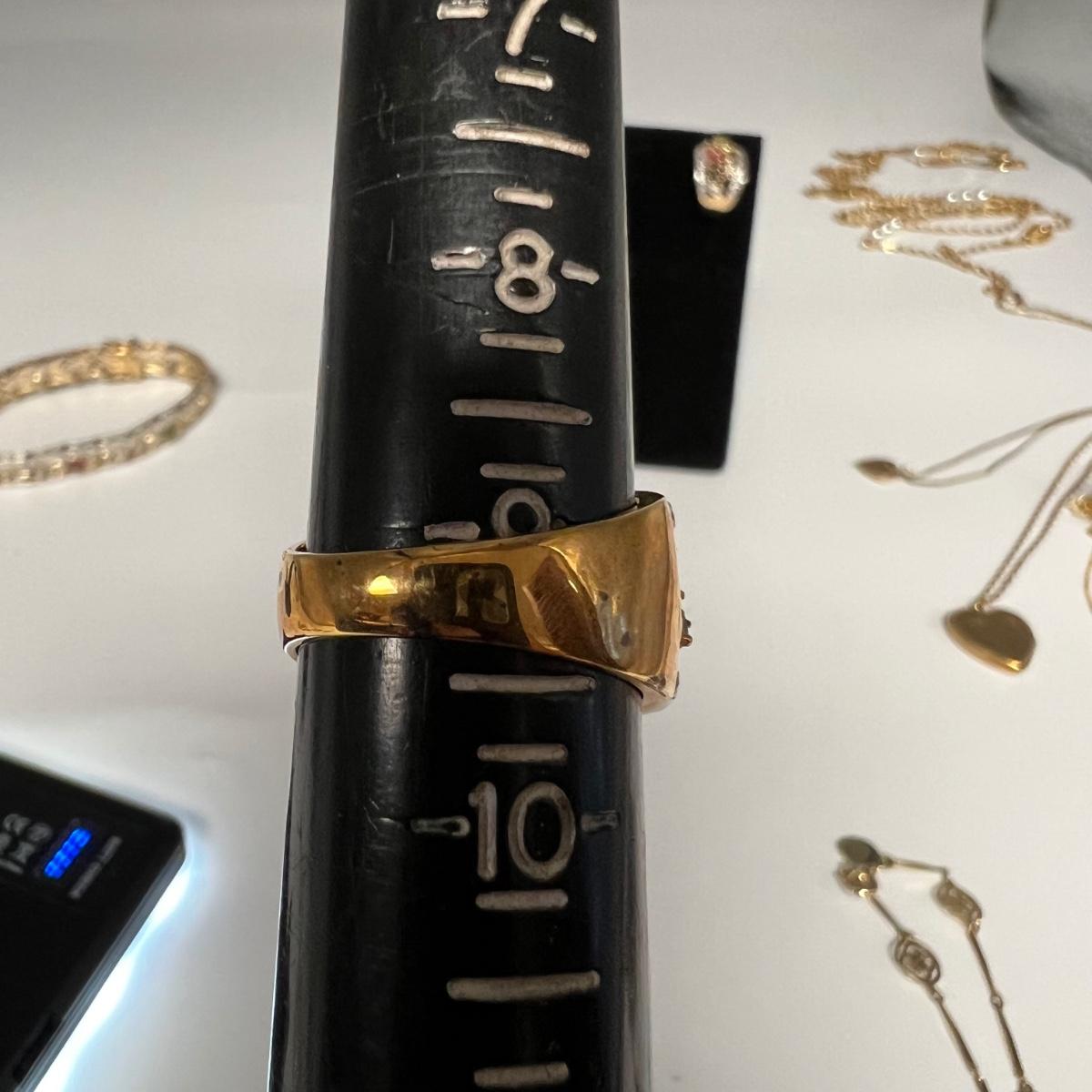 The two jewelry sets included are marked 925 which includes the necklace, earrings, ring and bracelet which have Ruby, sapphire and jade like stones and a necklace and earring set with citrine glass like dangling pendants. The double strand gold colored necklace is also stamped 925. Items stamped 14K includes the pink cameo pendant and pendant with two pearls. The Pearl ring appears to be marked 18K GF. See images for all markings. All earrings are for pierced ears.