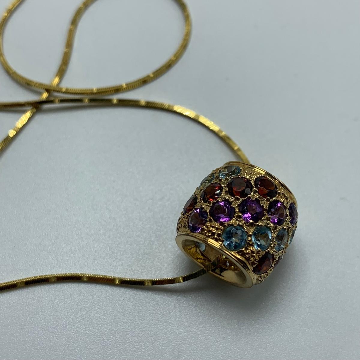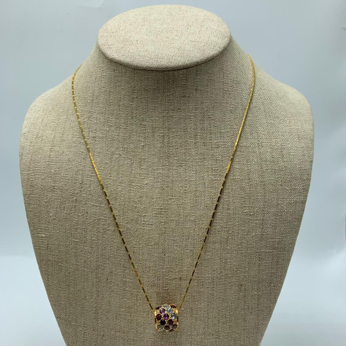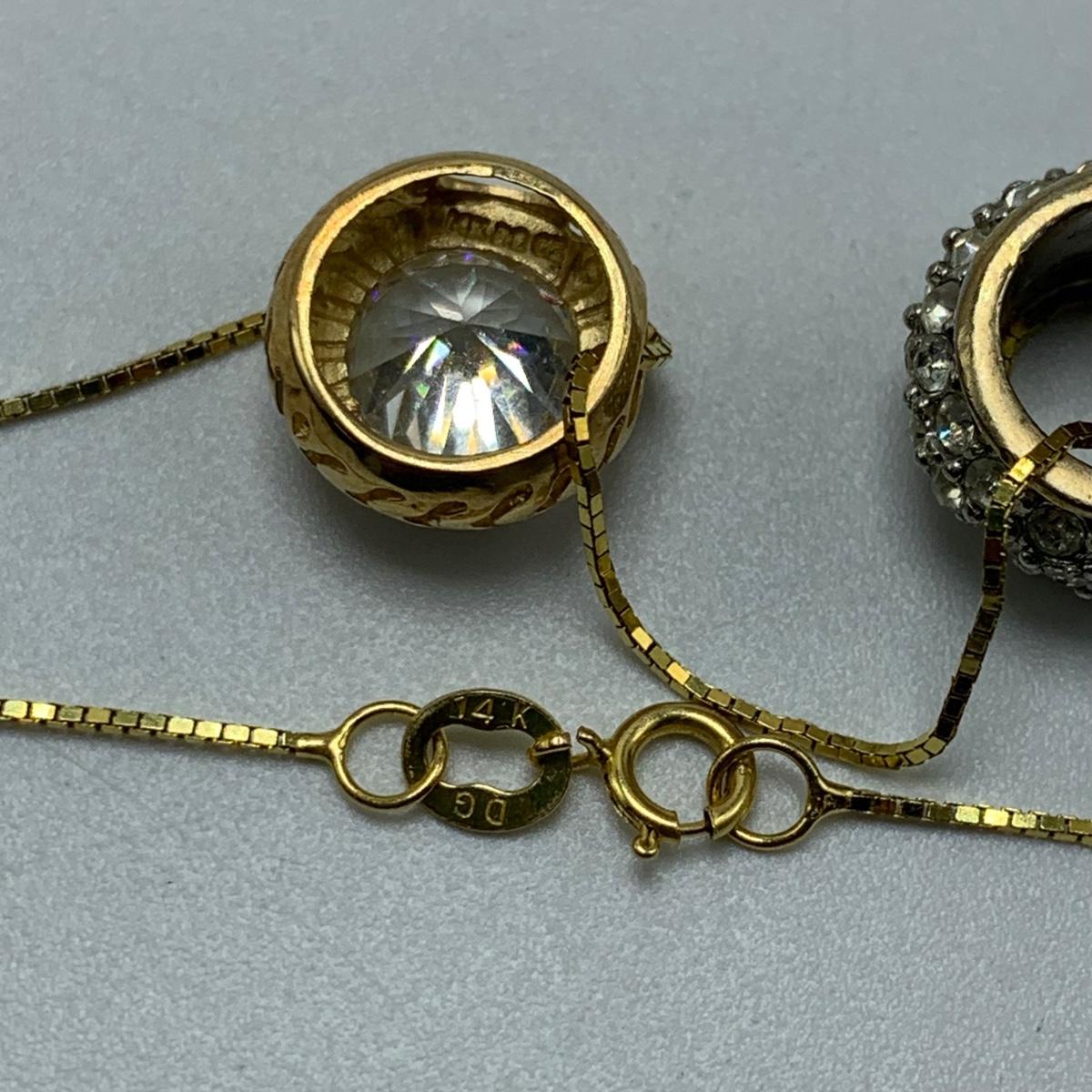 Eight necklaces with “glitter ball” or “Times Square ball” pendants. Four chains are marked “˜14K’ and four are marked “˜925’. The longest chain is marked “˜Vior’ and has the multi-colored gemstone pendant. It is 20”.“¨ One necklace came in a box listing Victoria Wieck as the designer. See images for other known markings.