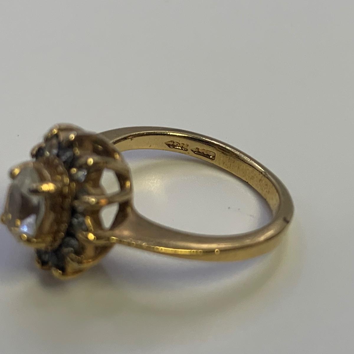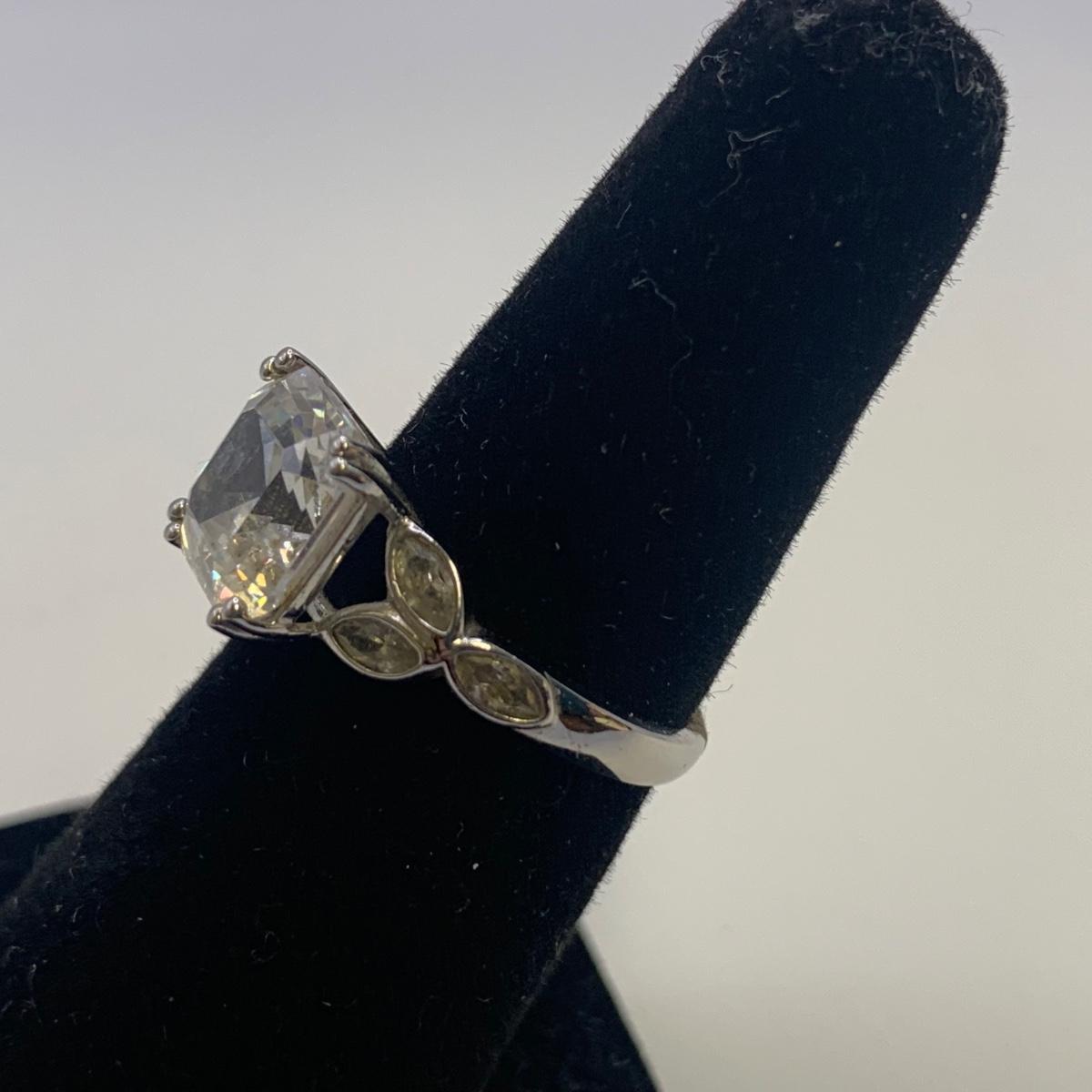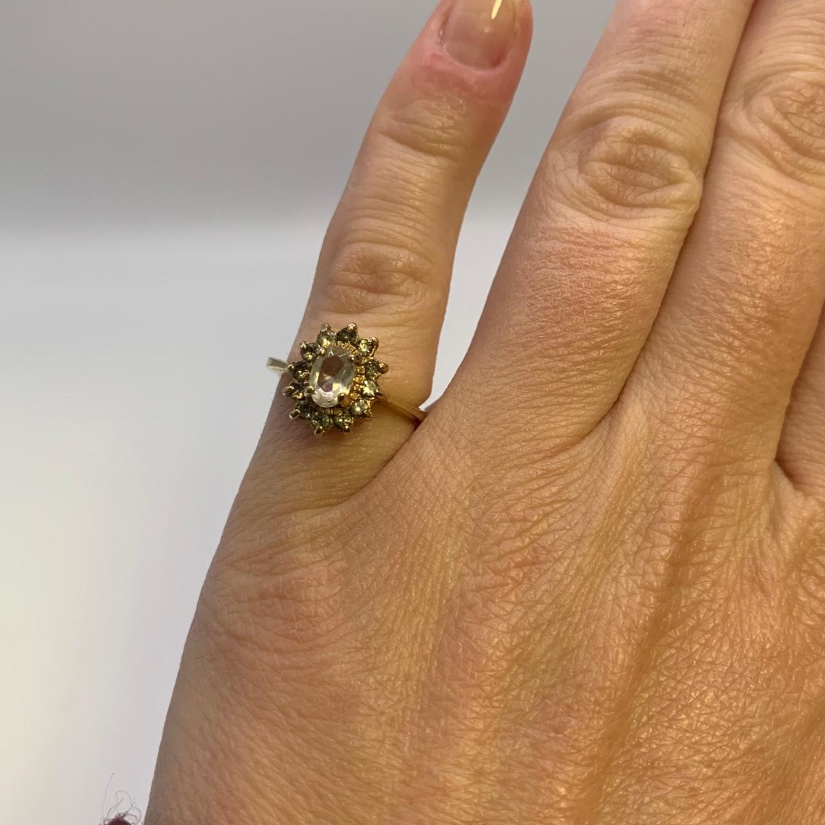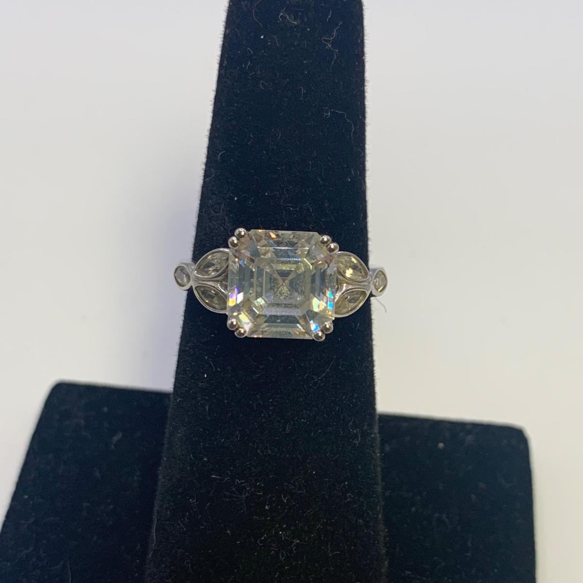 A variety of seven rings. All have clear sparkling gemstones. The gold flower is stamped ‘PSP 14K’. It is missing one small gemstone. The ring enhancer ring with the two bands is marked ‘14K’. One ring that fits perfectly inside the ring enhancer is missing its main stone. It was two gemstones in the band that both tested positive as diamonds with our diamond tester. Its band has hallmarks stamped but they are illegible. Please see photos for hallmarks on the other rings and all sizes. One is marked 925, others are illegible.
