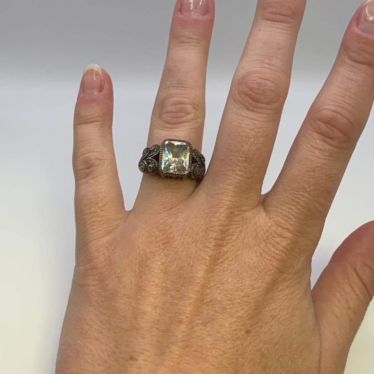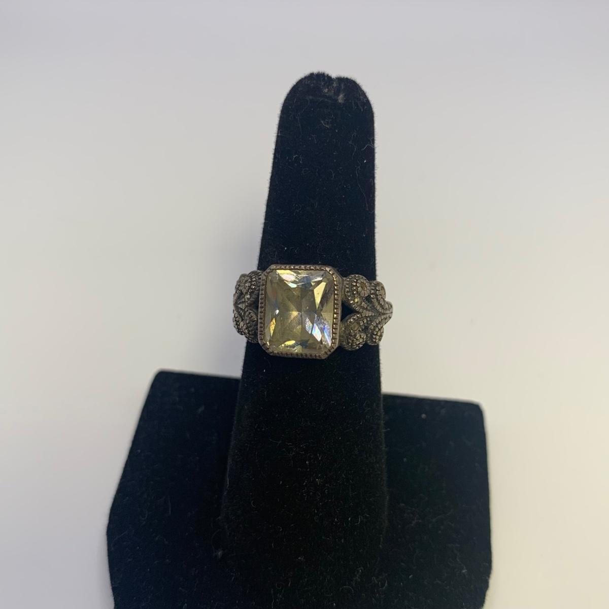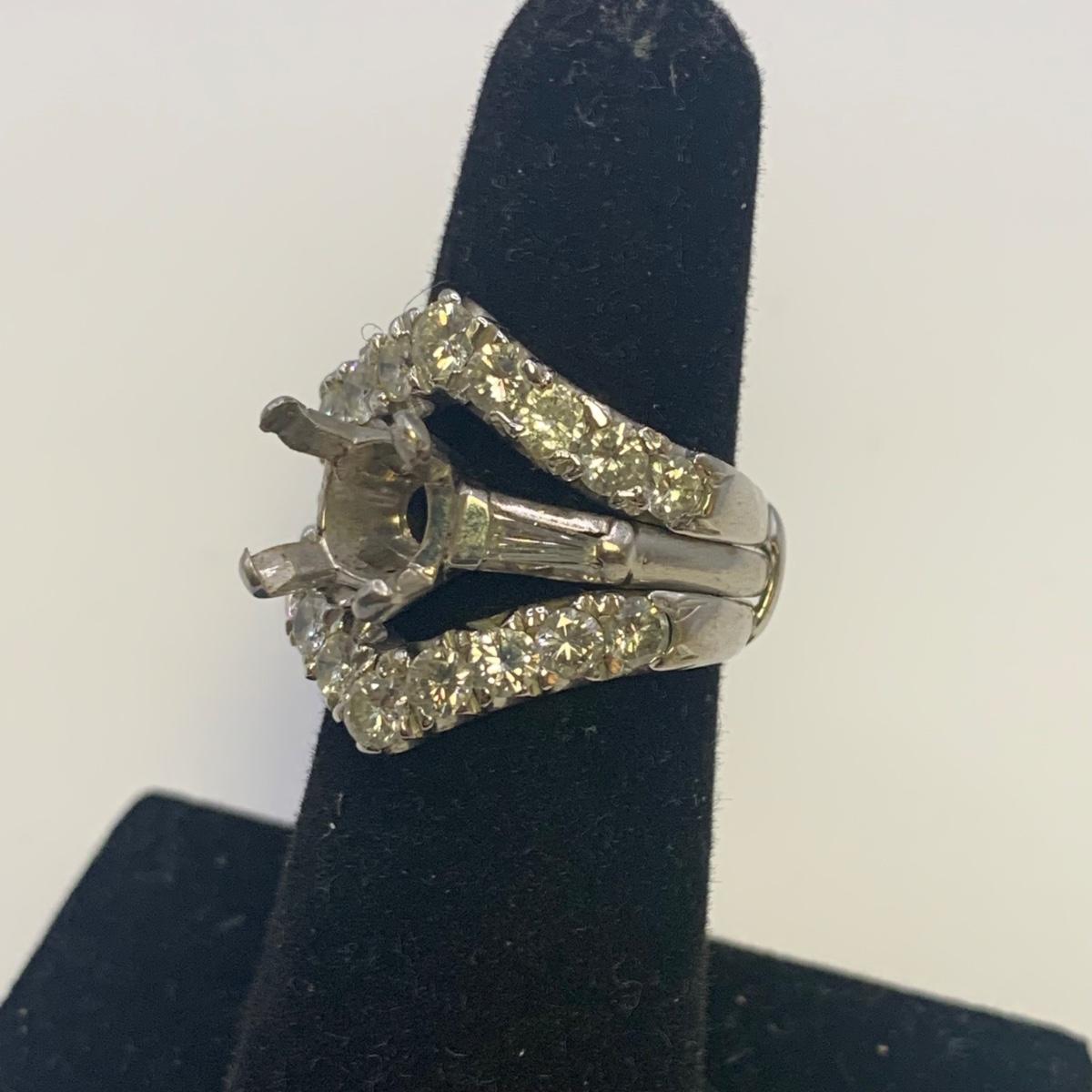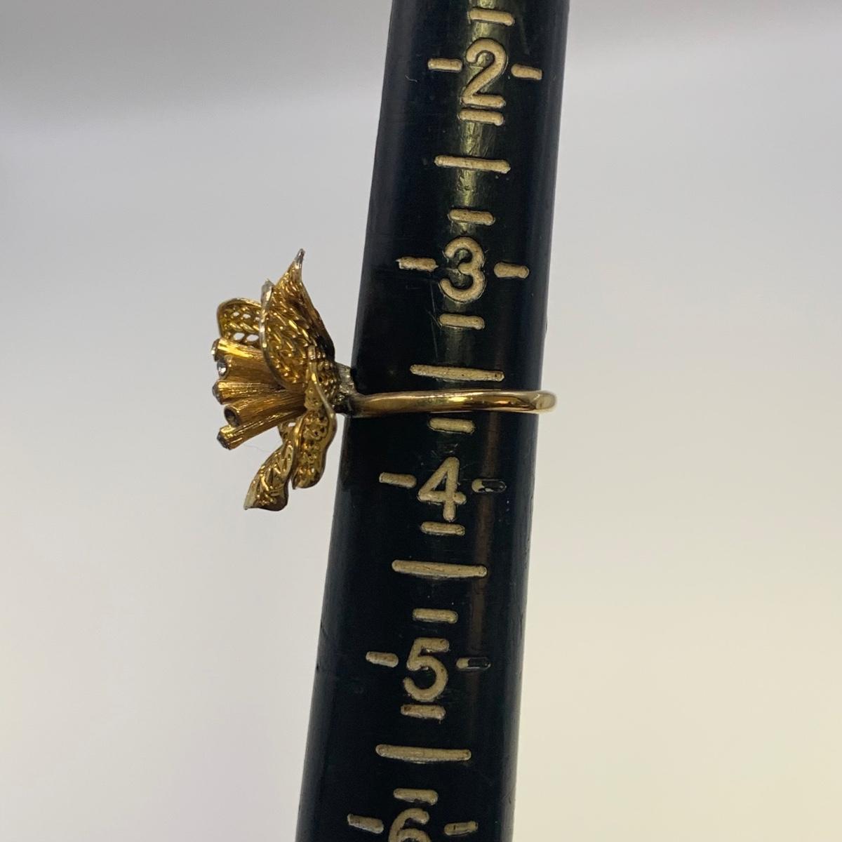 A variety of seven rings. All have clear sparkling gemstones. The gold flower is stamped ‘PSP 14K’. It is missing one small gemstone. The ring enhancer ring with the two bands is marked ‘14K’. One ring that fits perfectly inside the ring enhancer is missing its main stone. It was two gemstones in the band that both tested positive as diamonds with our diamond tester. Its band has hallmarks stamped but they are illegible. Please see photos for hallmarks on the other rings and all sizes. One is marked 925, others are illegible.