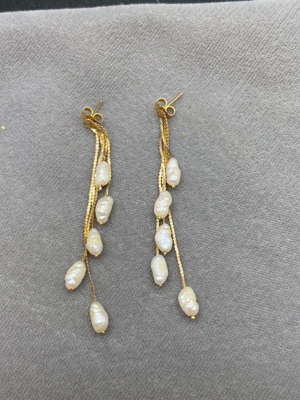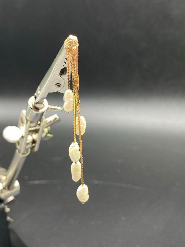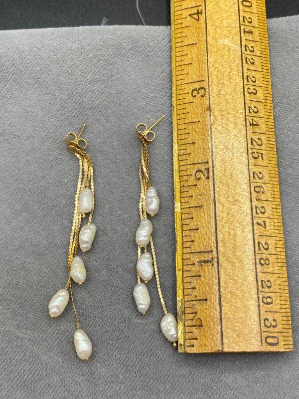14k yellow gold and freshwater pearl multistrand dangle earrings. 2.8g t.w. For pierced ears.