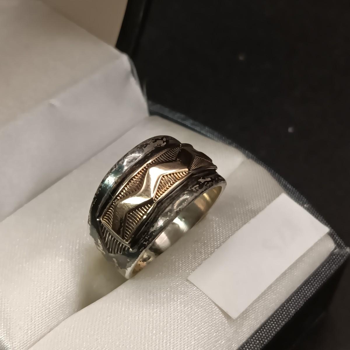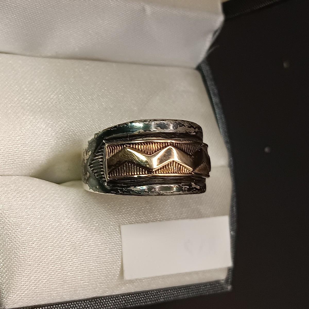 14K AND STERLING SILVER RING 6.19g SIZE 6 marked "MM Rogers JY"