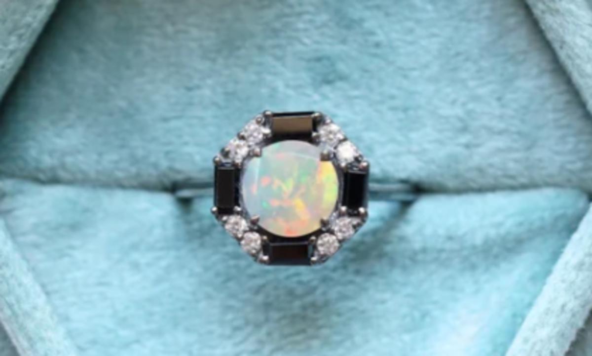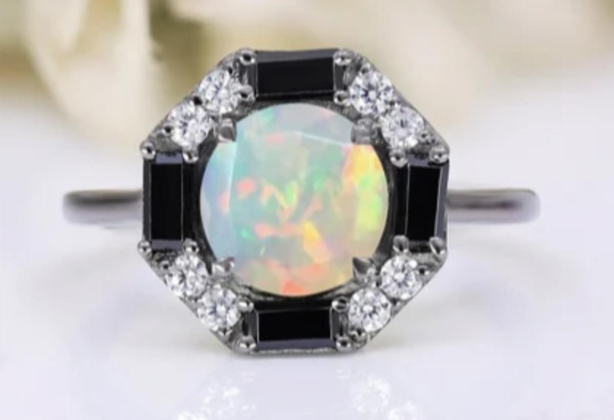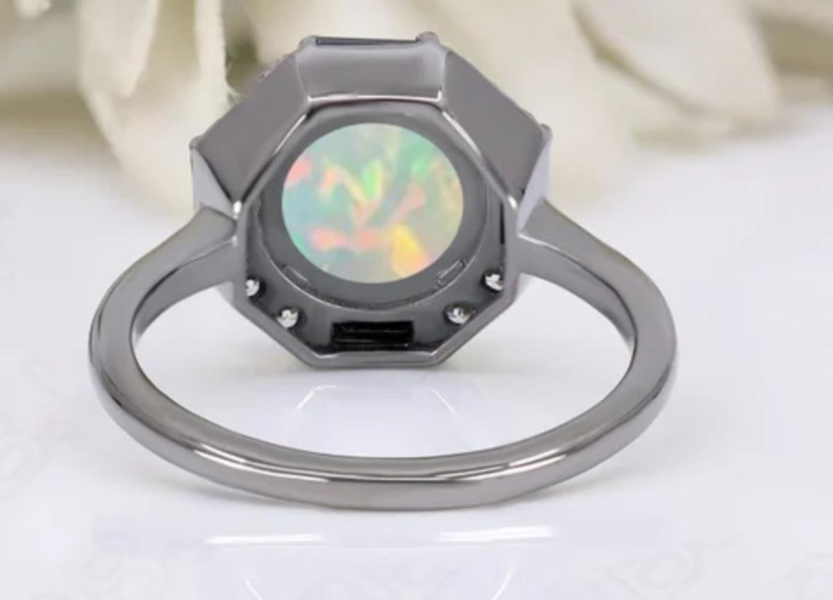 14k Black Gold 8.00ct Round Cut Ethiopian Opal Ring