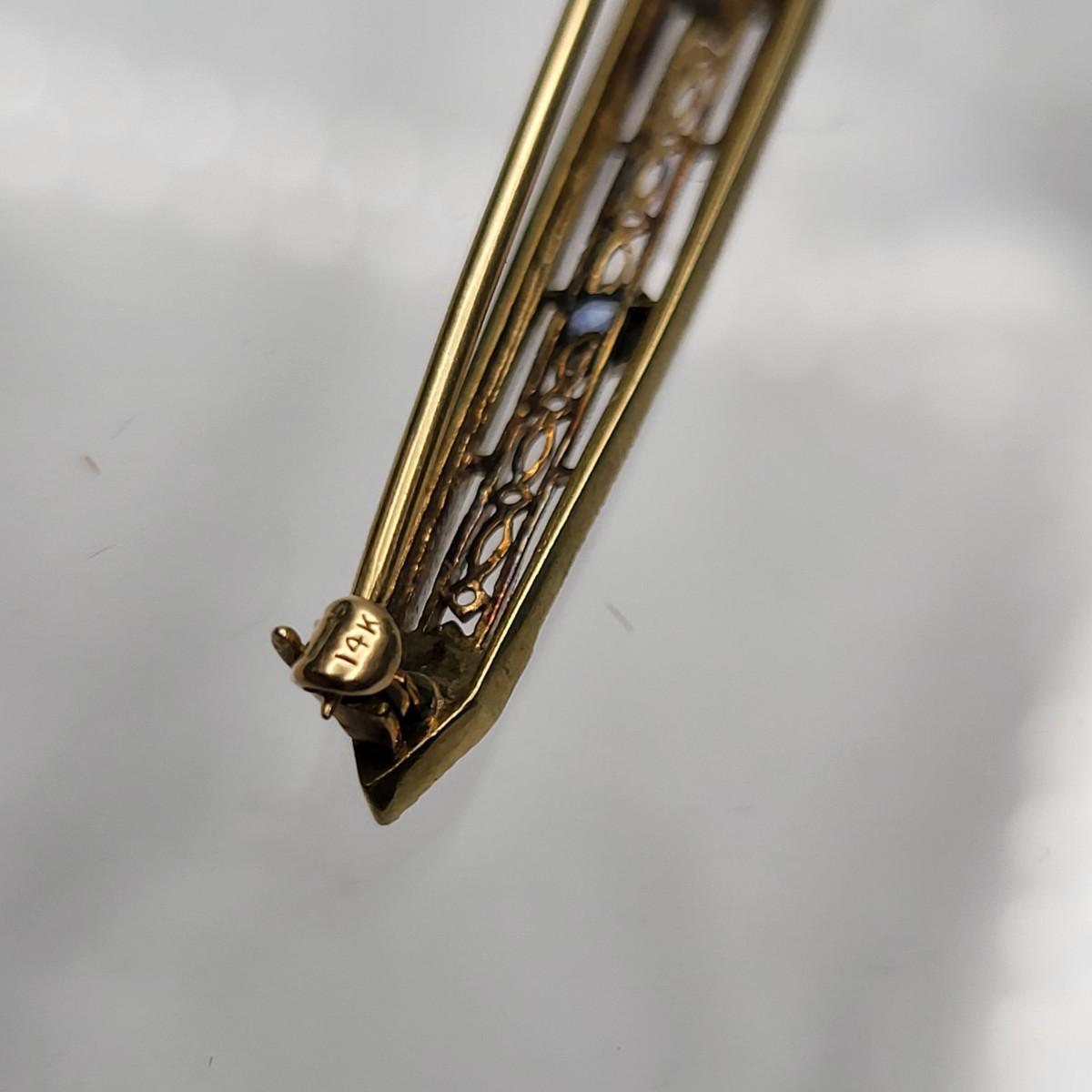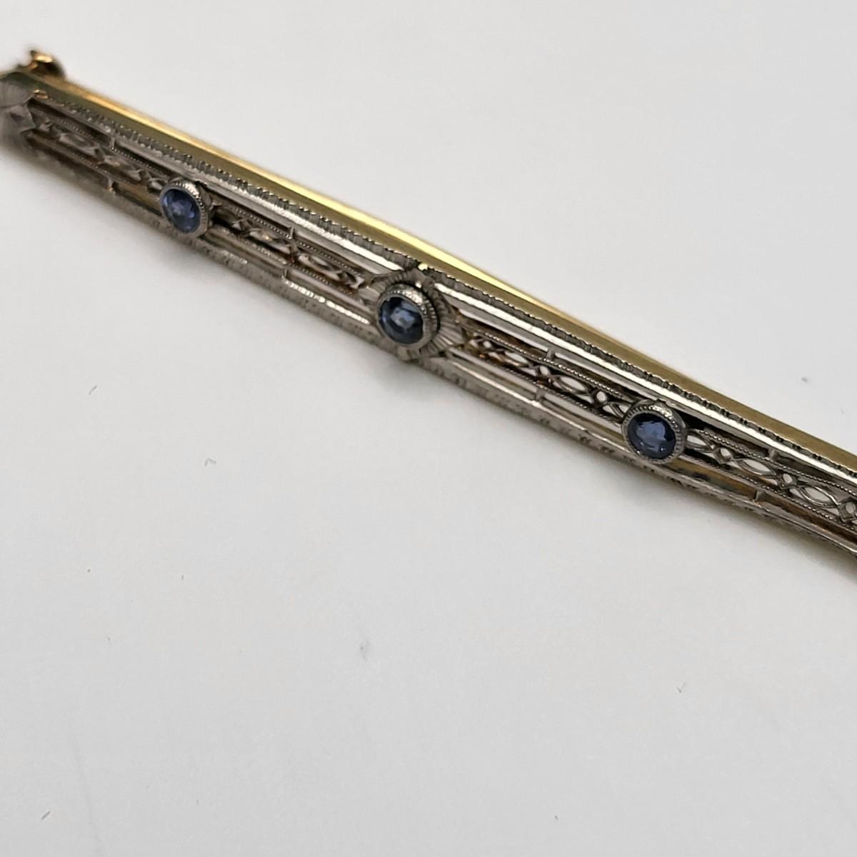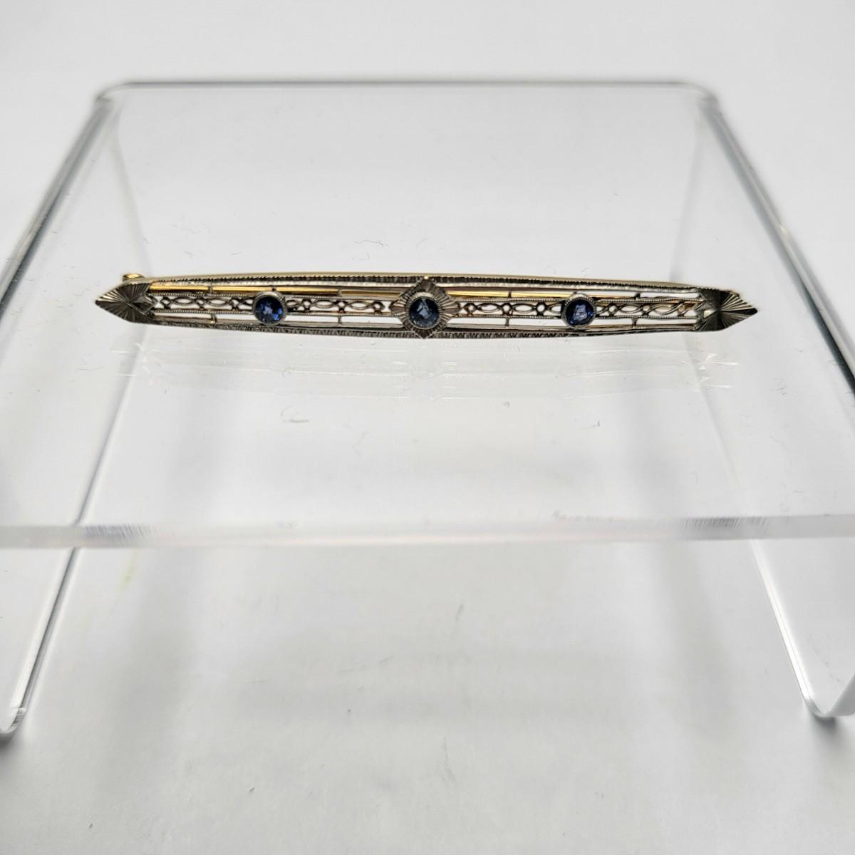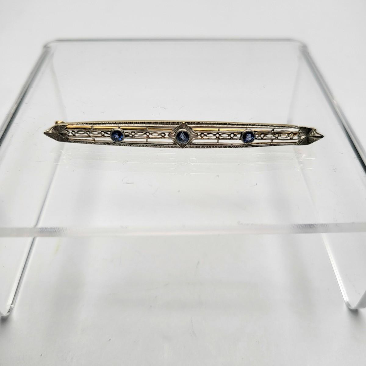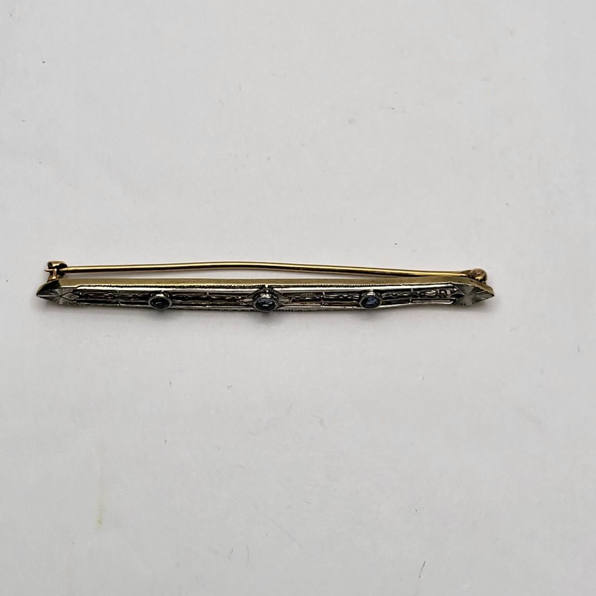 14k Gold & Blue Sapphire Antique Bar Pin 3.9gr