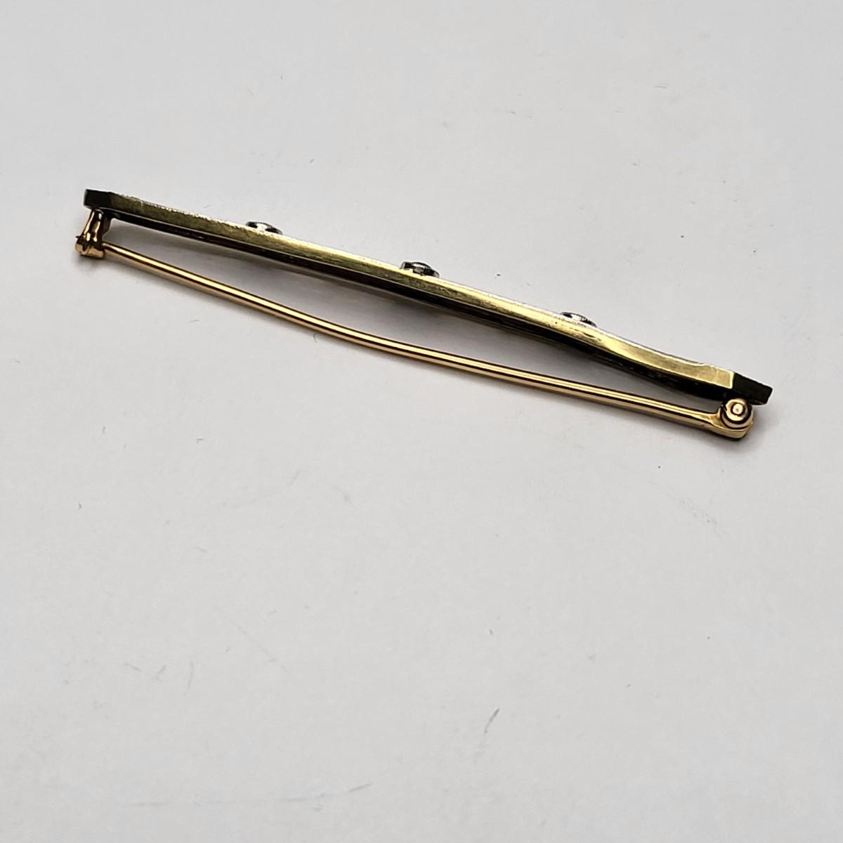 Antique 14k gold bar pin with 3 small blue sapphires.