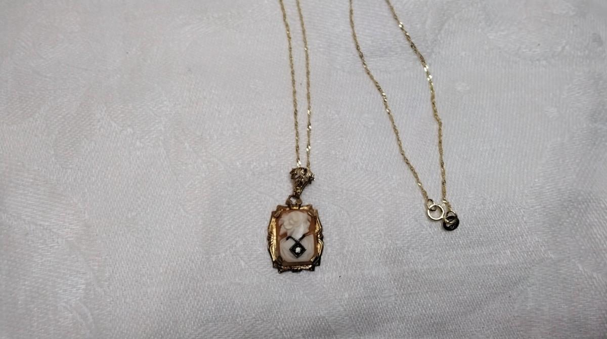 14K Cameo Habille Pendant On A 16" 10K Italian Gold Necklace