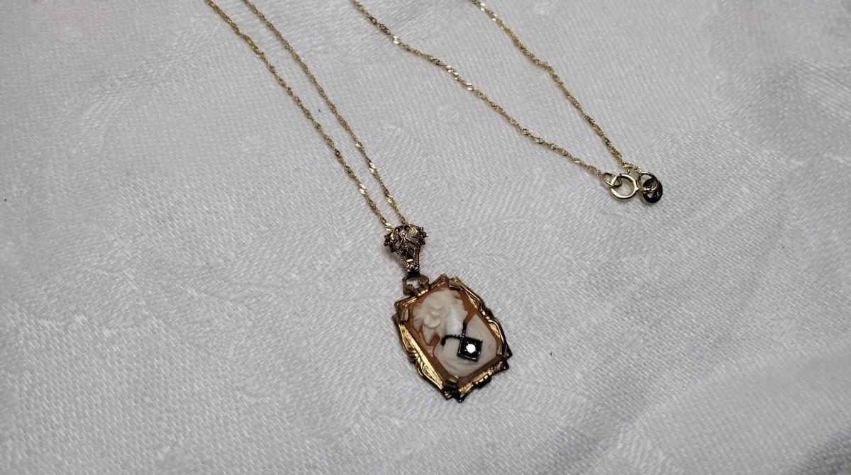 14K Cameo Habille  Pendant On A 16" 10K Italian Gold Necklace