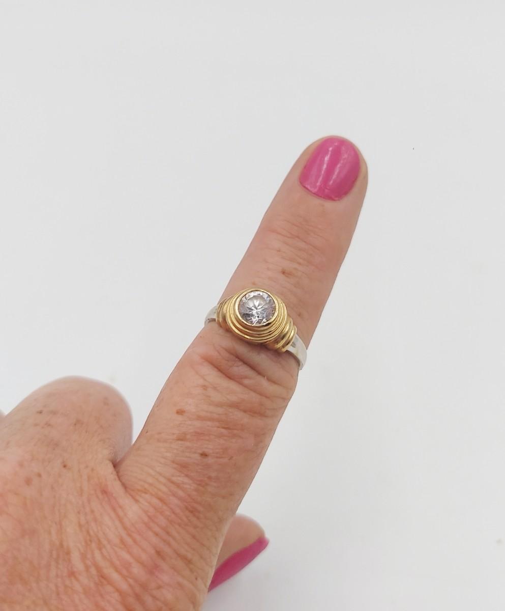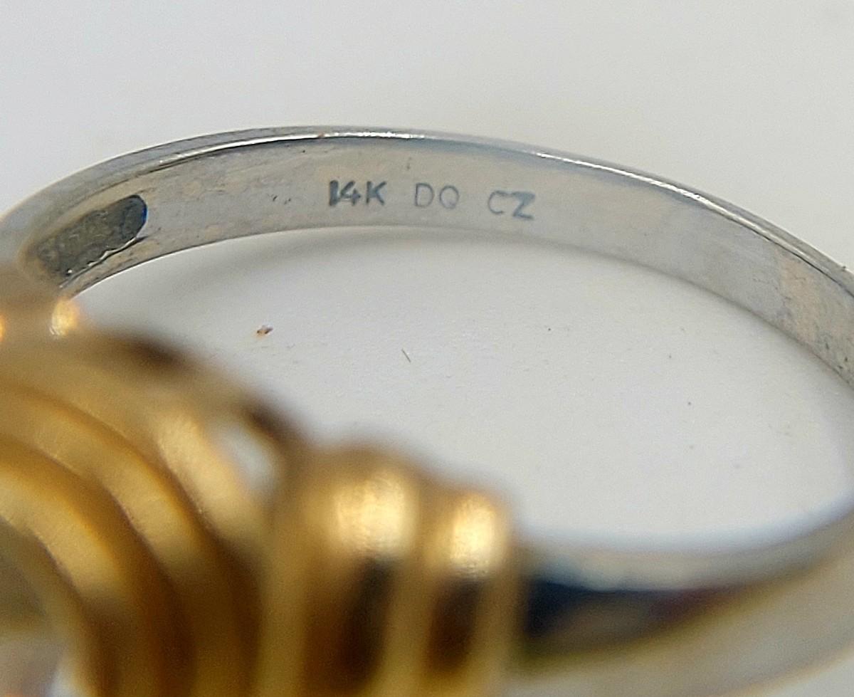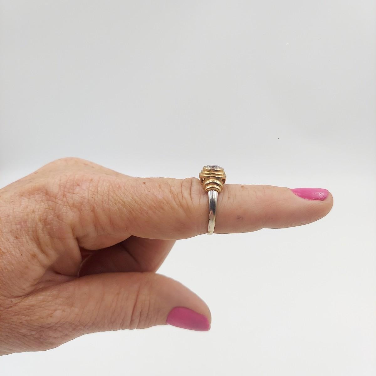 14K & CZ SILVER & GOLD TONED RING