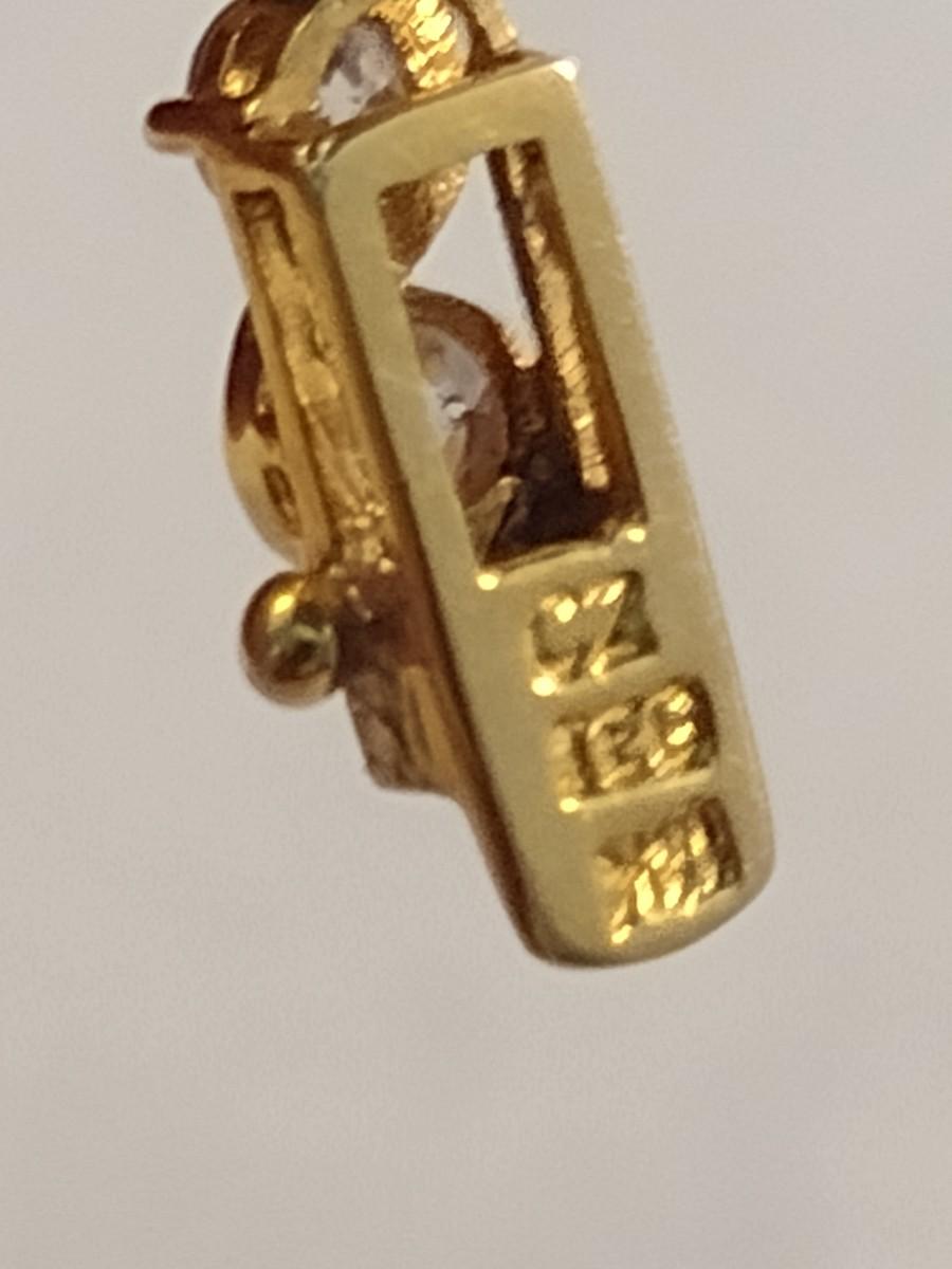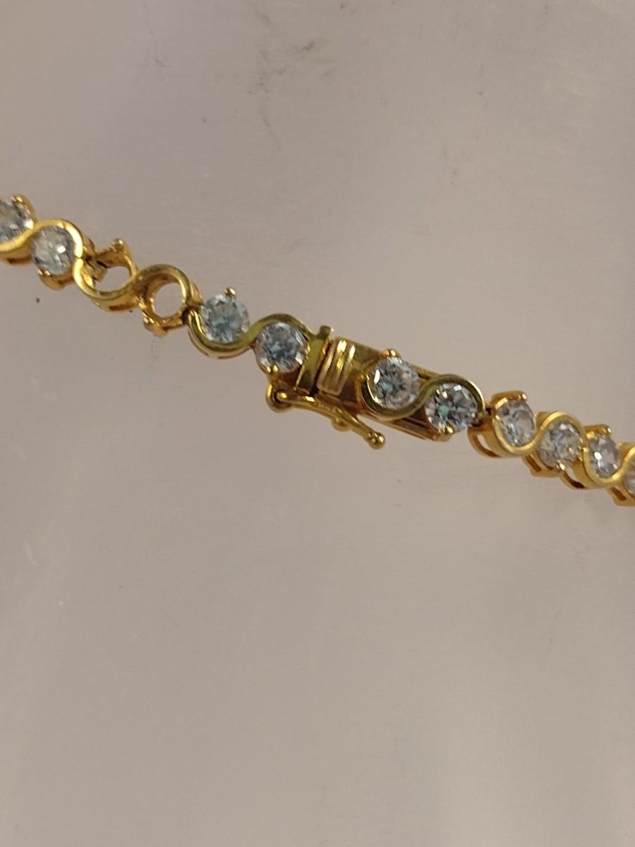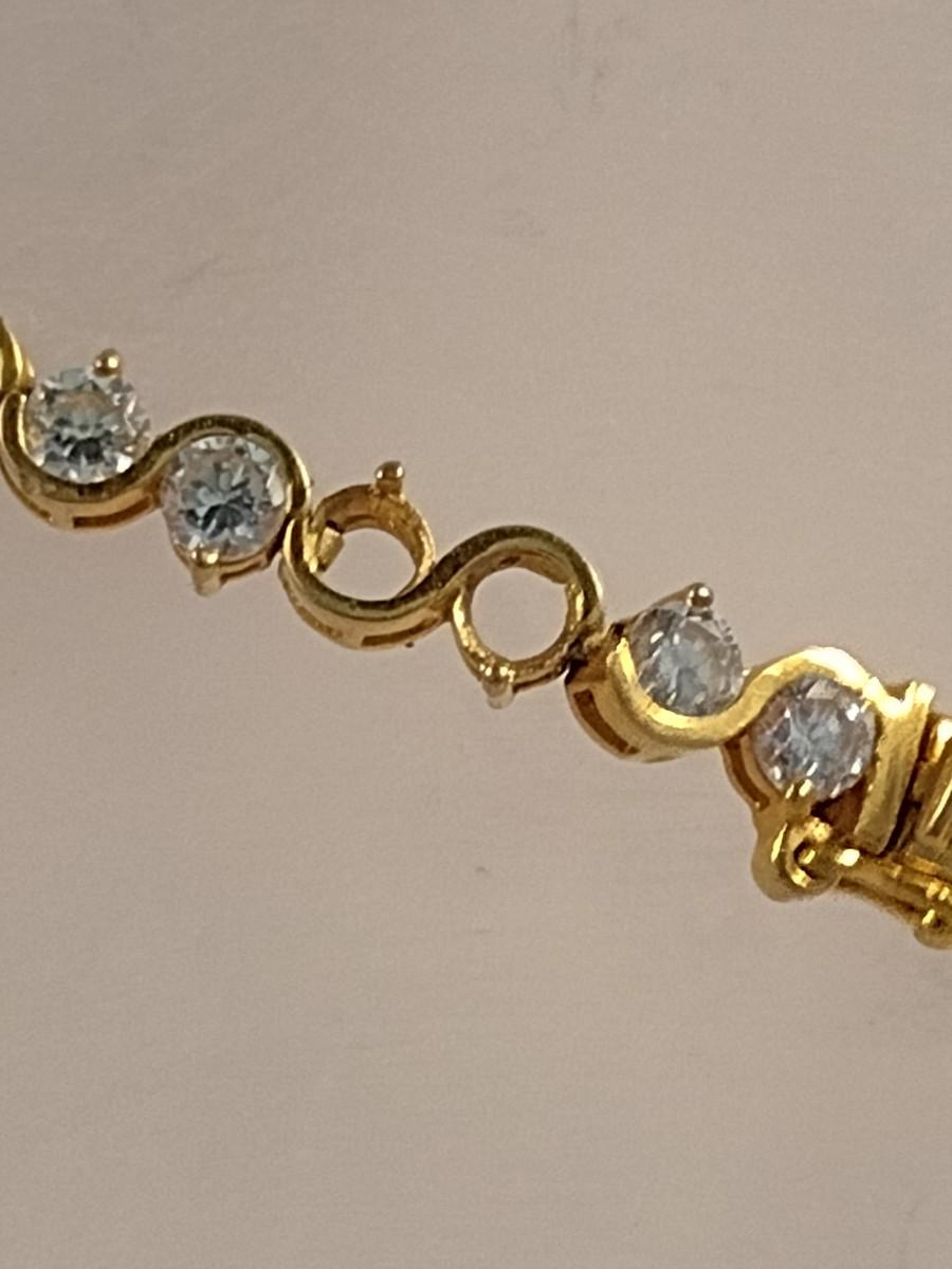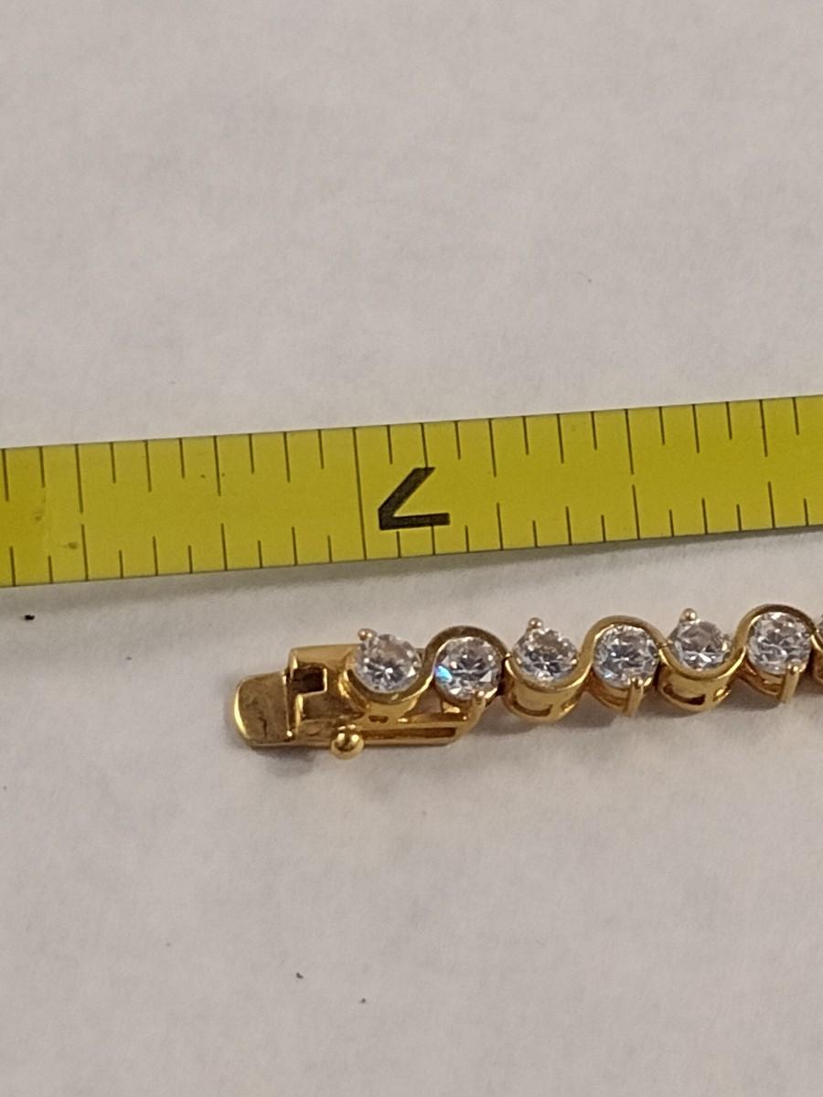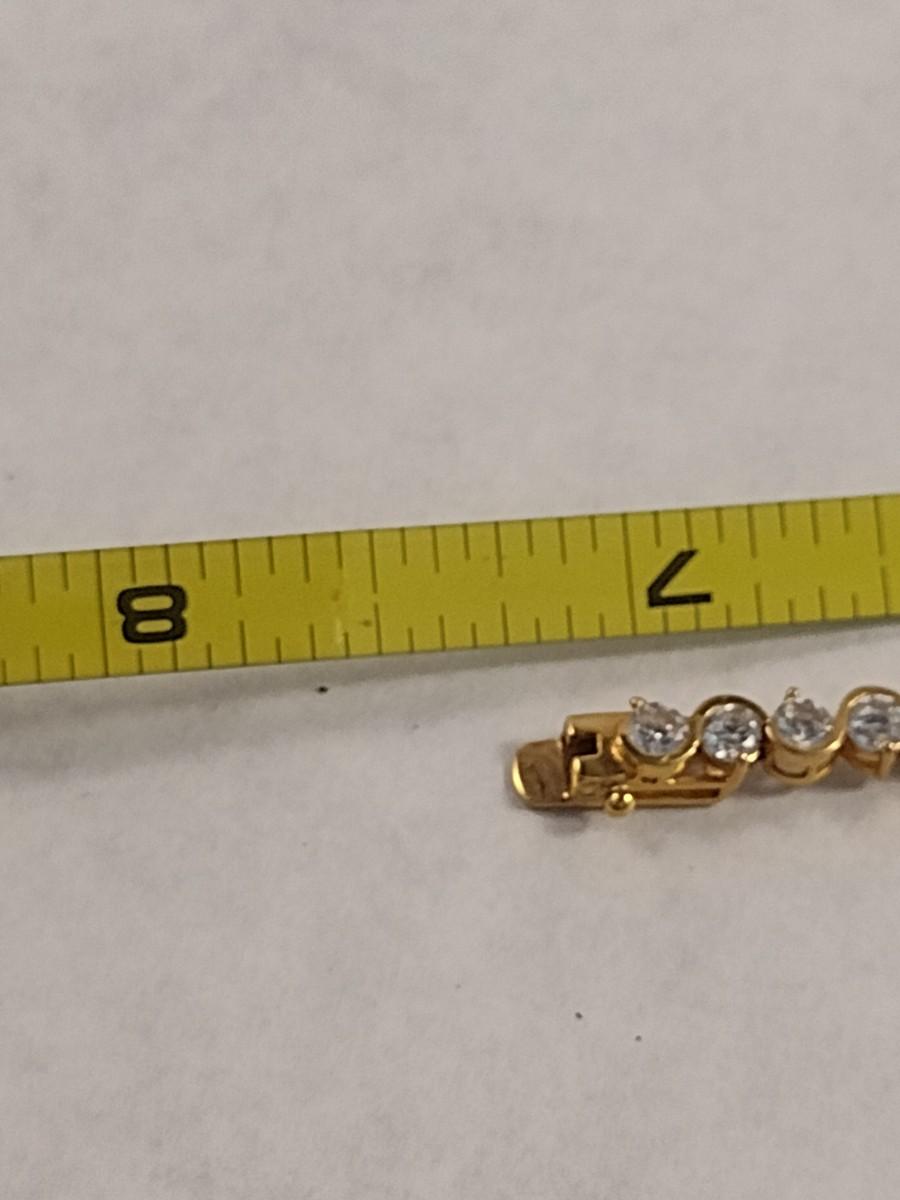 14K and Cubic Zirconia Tennis Bracelet 8 (gram total weight). Has two diamonds missing as shown.