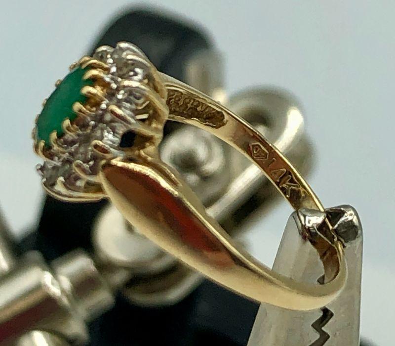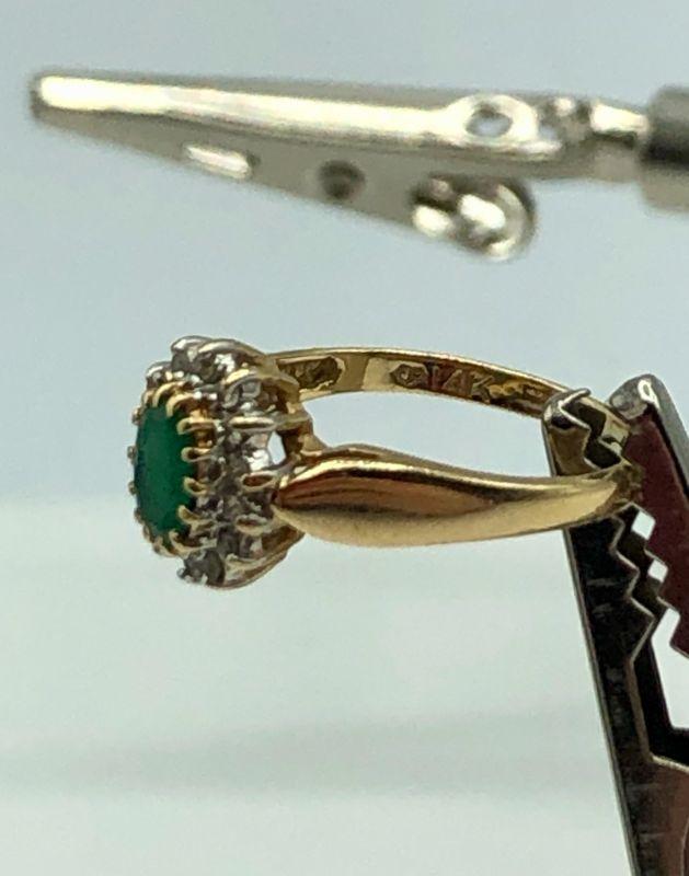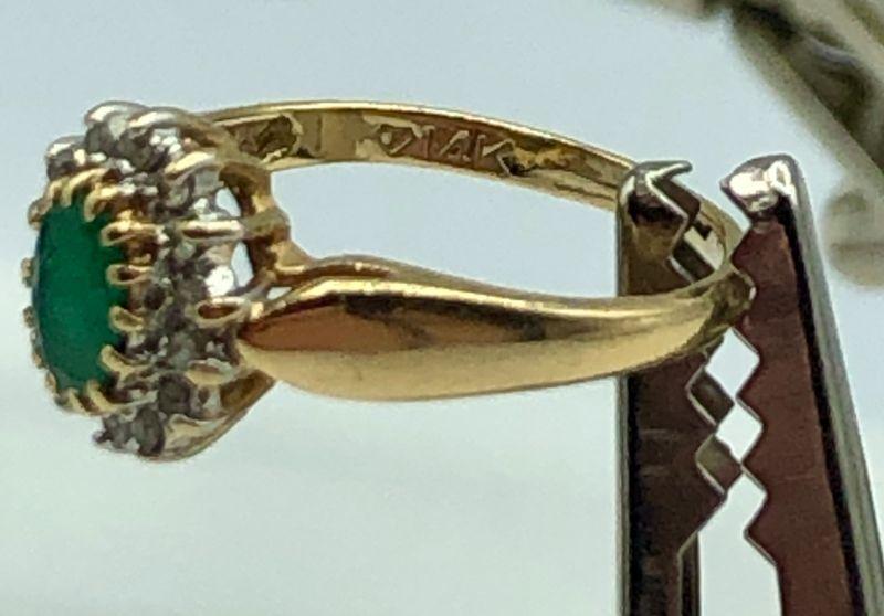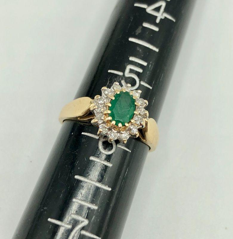 Emerald & Diamond Ring. 14k yellow gold. Size 5.