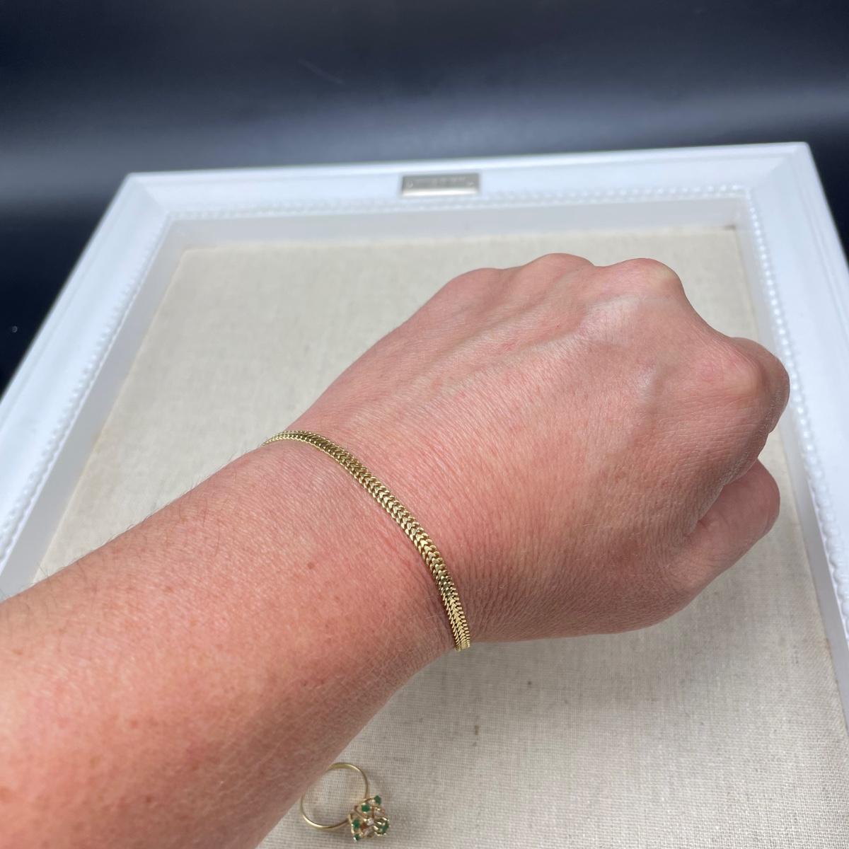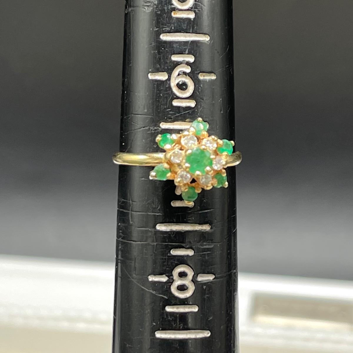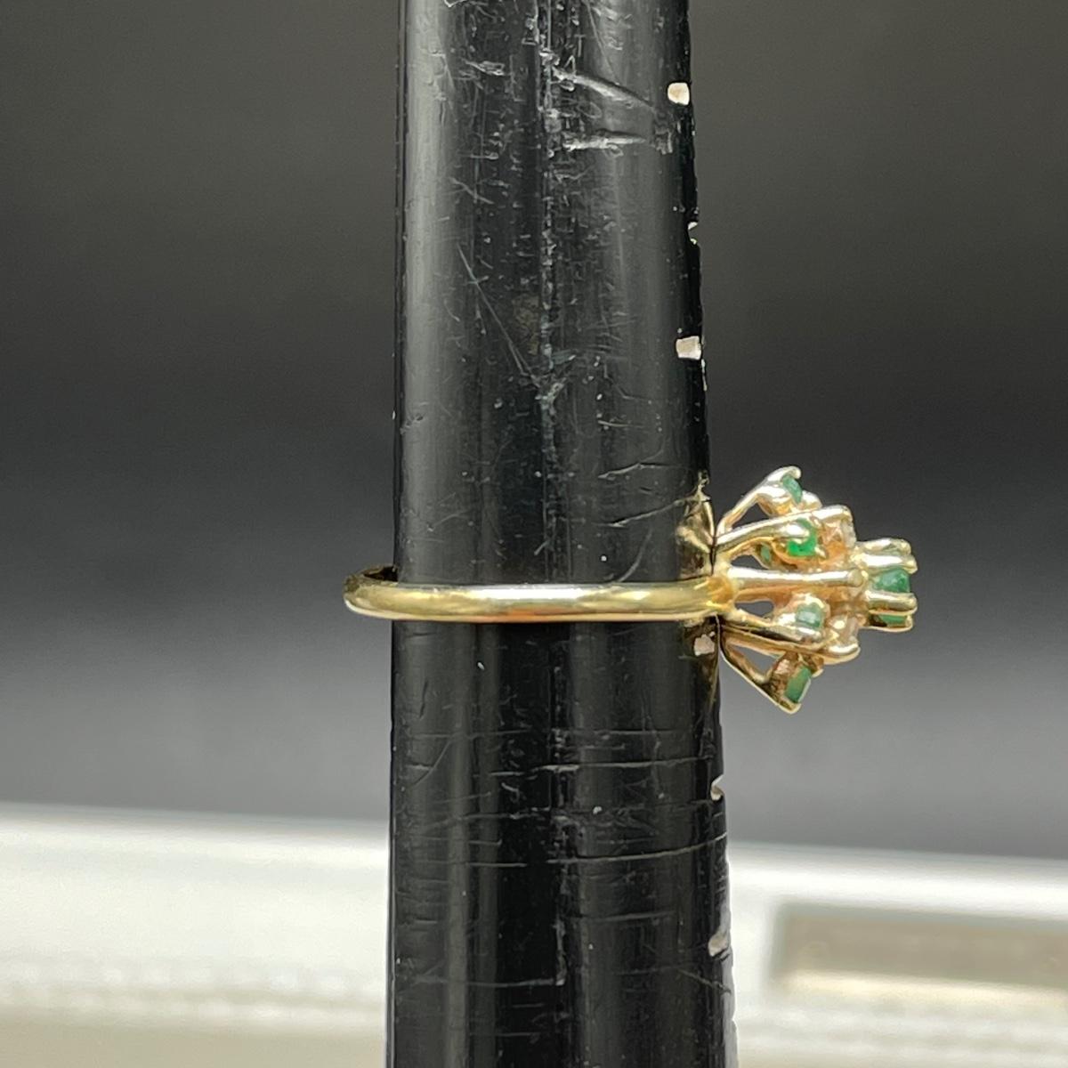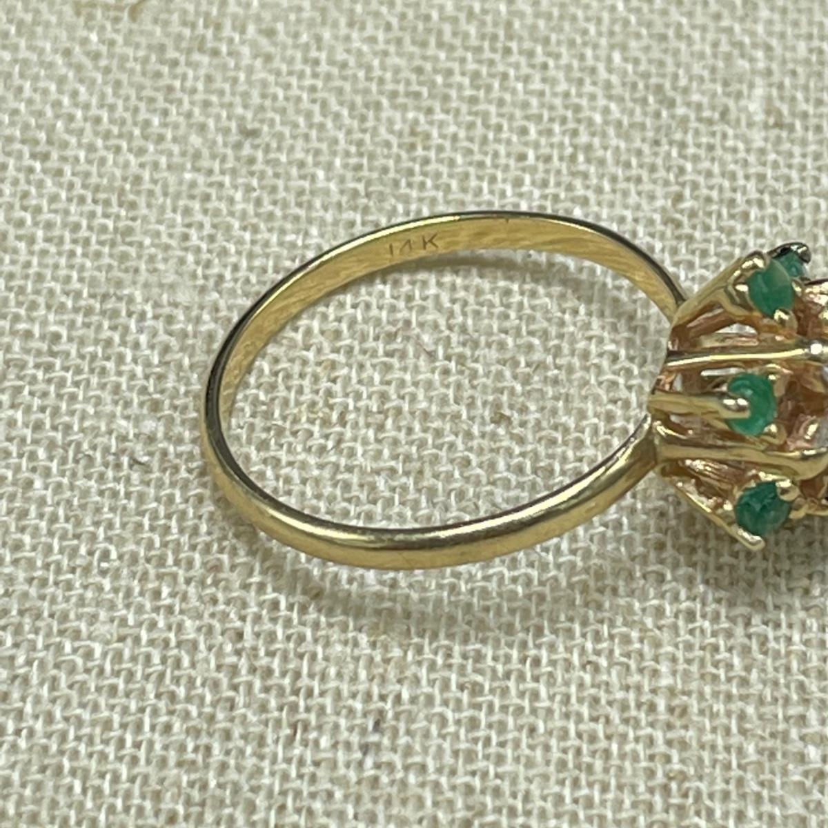 Ring with emerald-like gems marked 14K and a unique link bracelet marked 585. Bracelet is 7.25” long. See images. Shipping available.