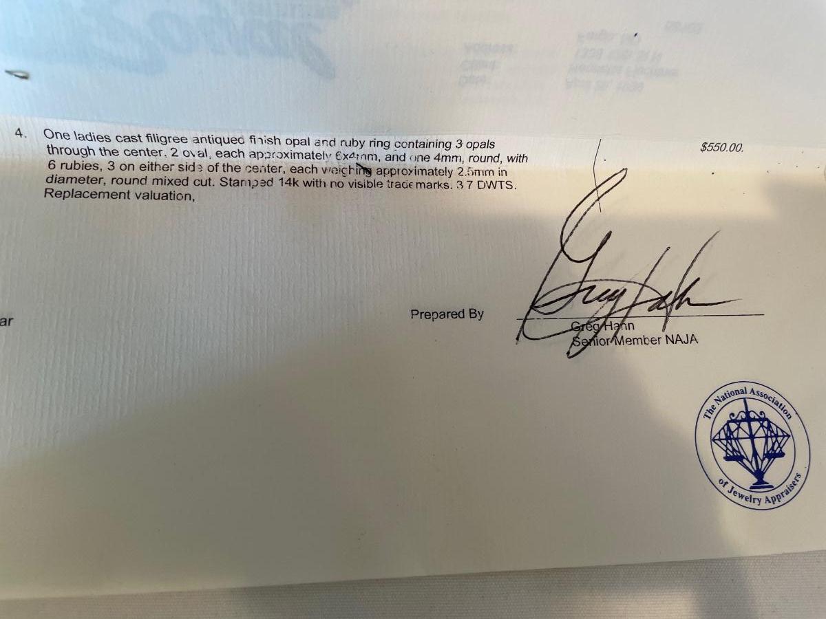 Appraisal is also pictured from Royal Jewelers is dated 4/29/99