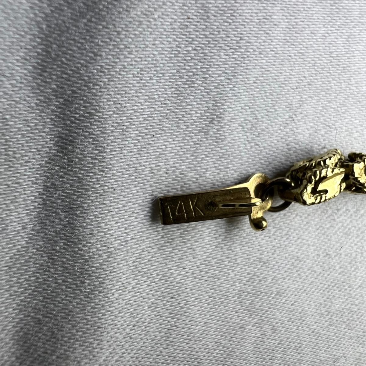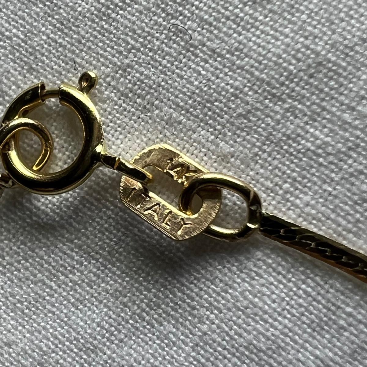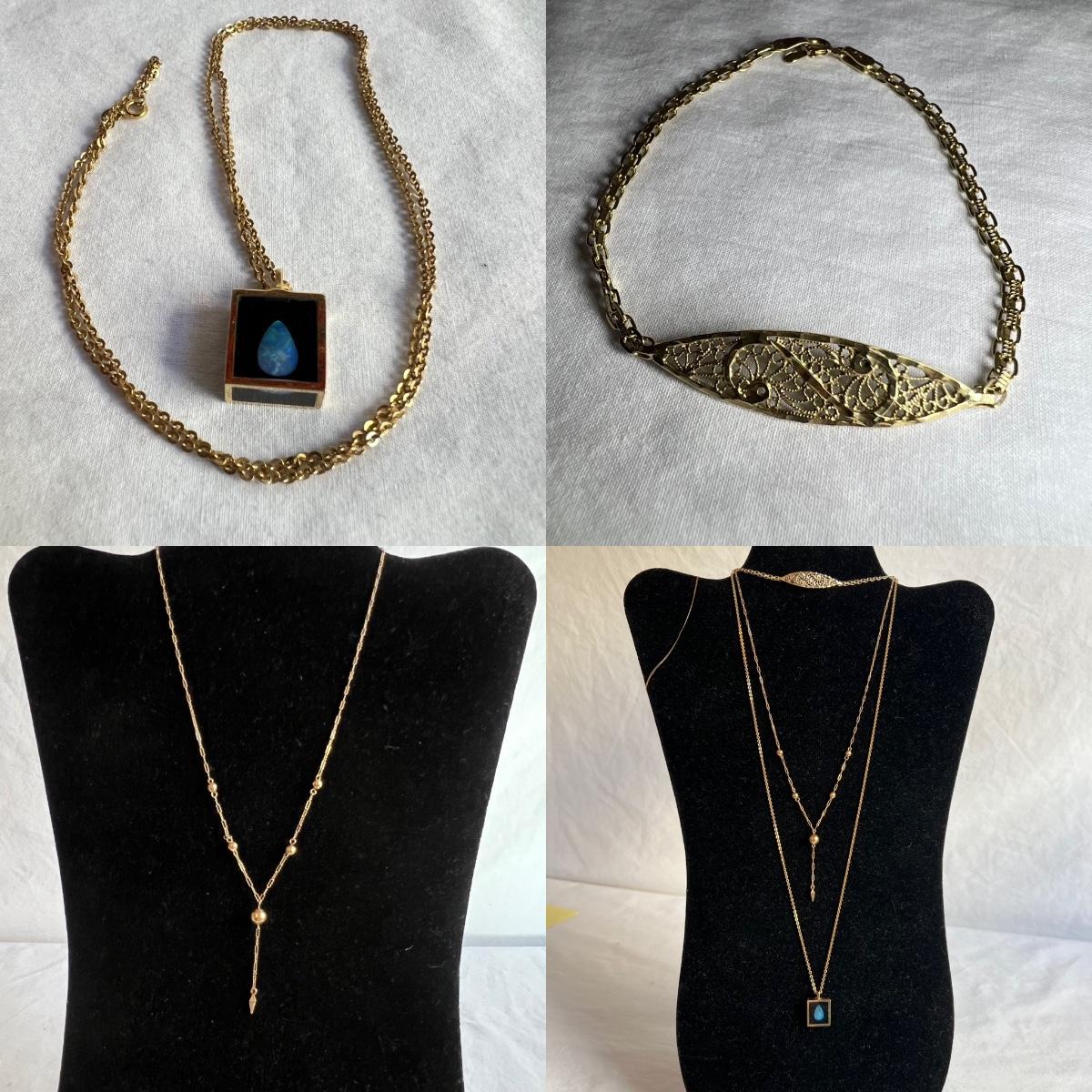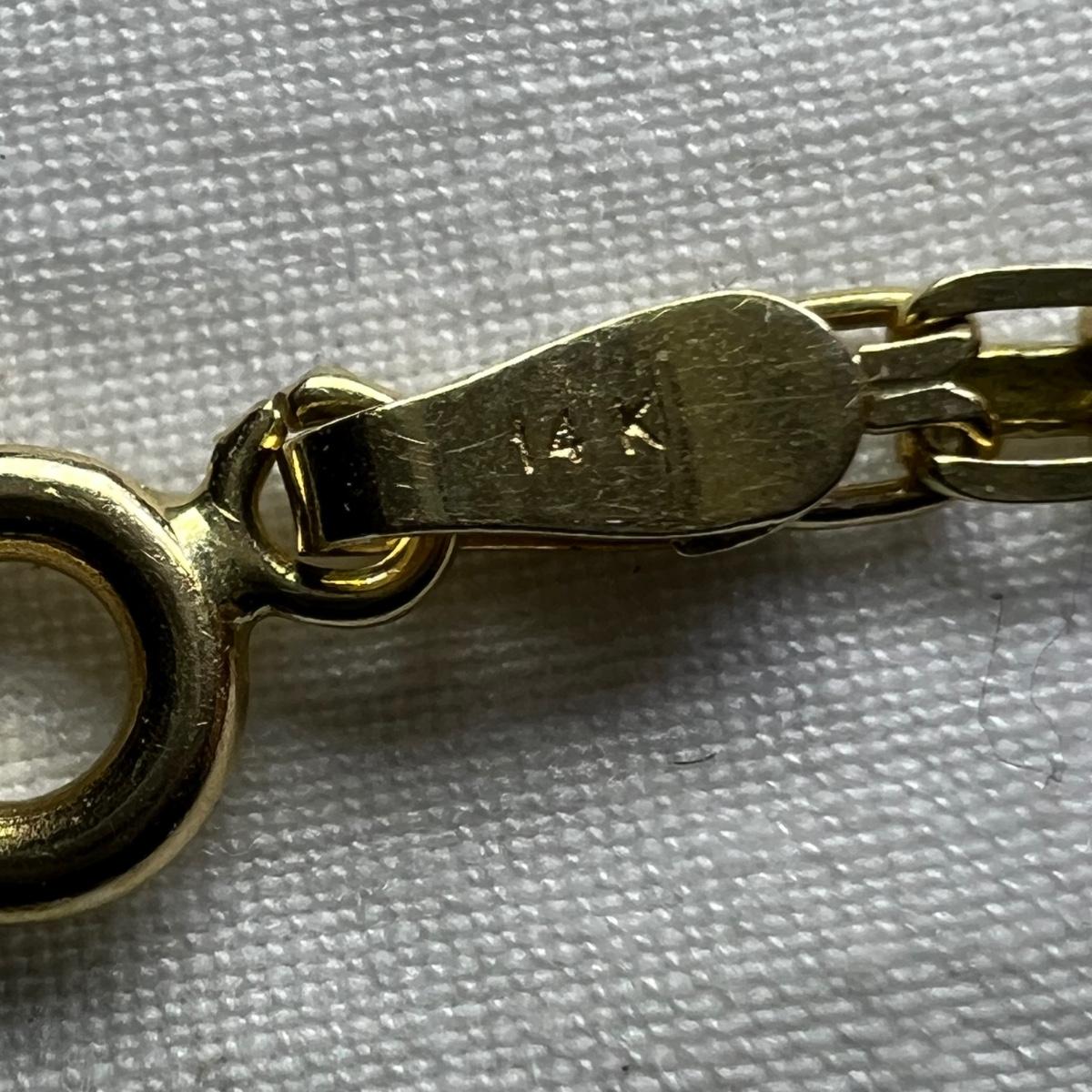 Five pieces of 14K jewelry includes two necklaces and three bracelets. The longest necklace has a pendant which has an opal like stone set within a box with a black backdrop to highlight the luminosity of the stone within; its chain measures 24” long. All sales are final. No returns or refunds. Please bid accordingly. Starting price is at or near melt value.
