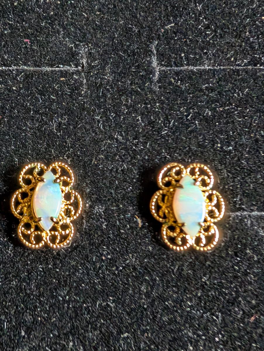 14K Fire Opal Stud Earrings