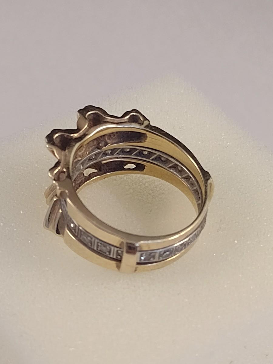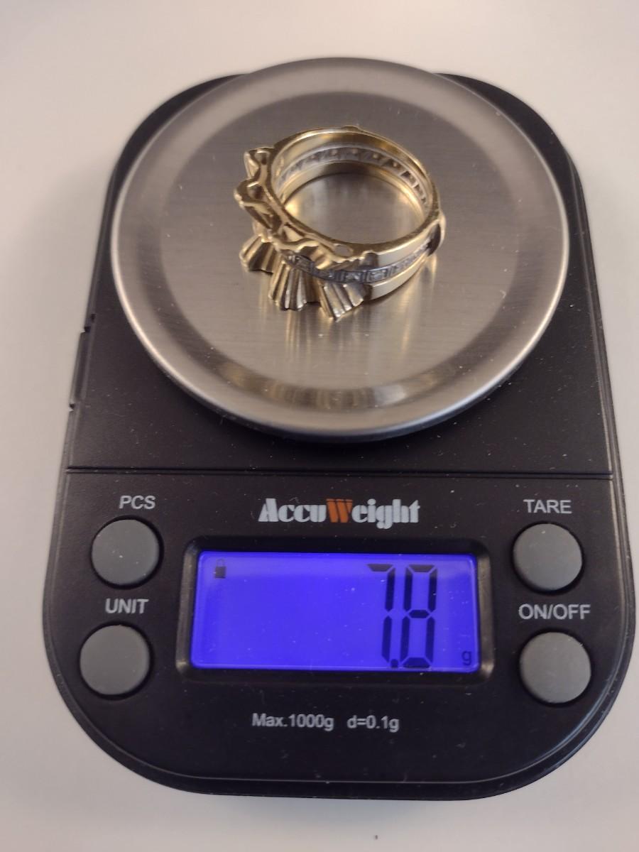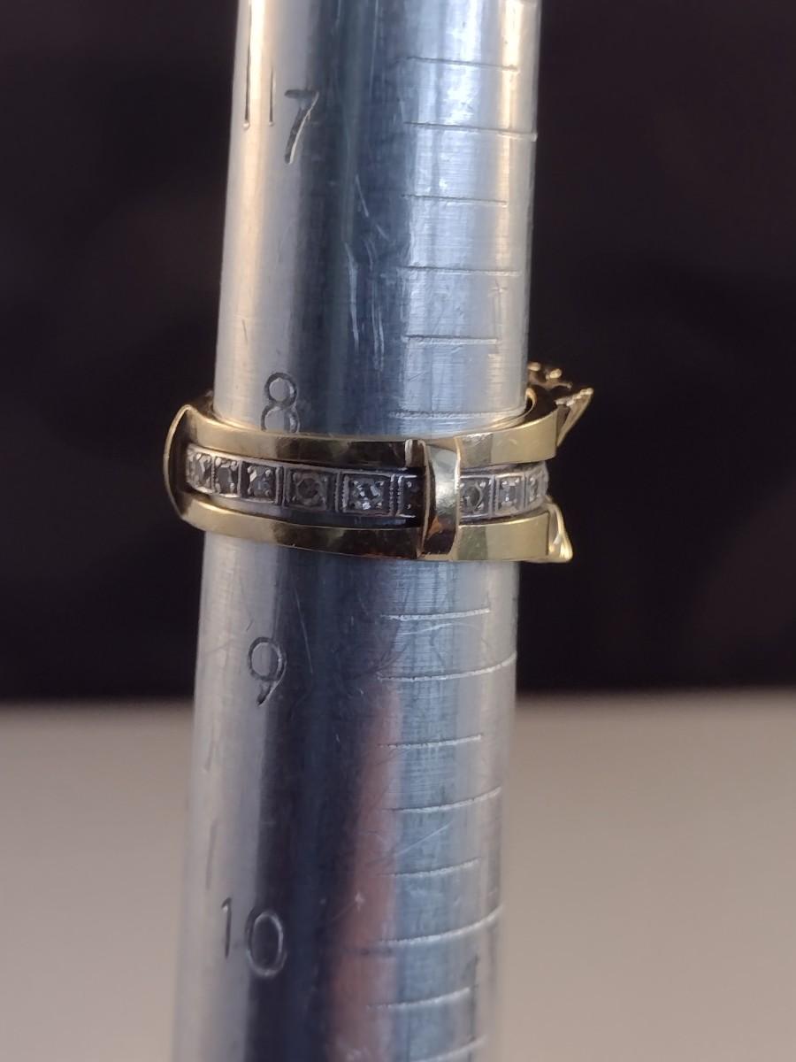 14K Gold Sunburst Design Ring with Diamond Chip Accents Set in Center Channel 7.8 grams