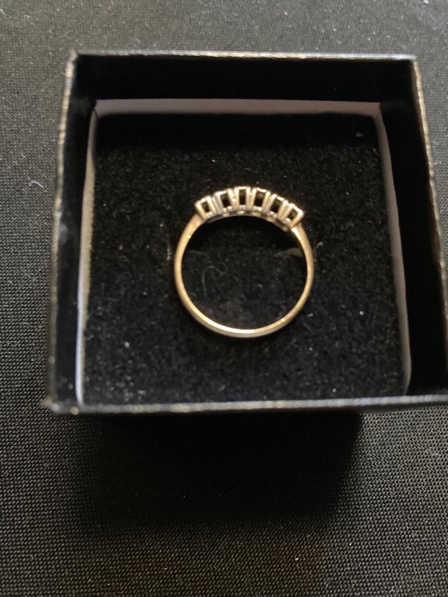 Very good condition. Six small diamonds in a row. Please see pictures for details.