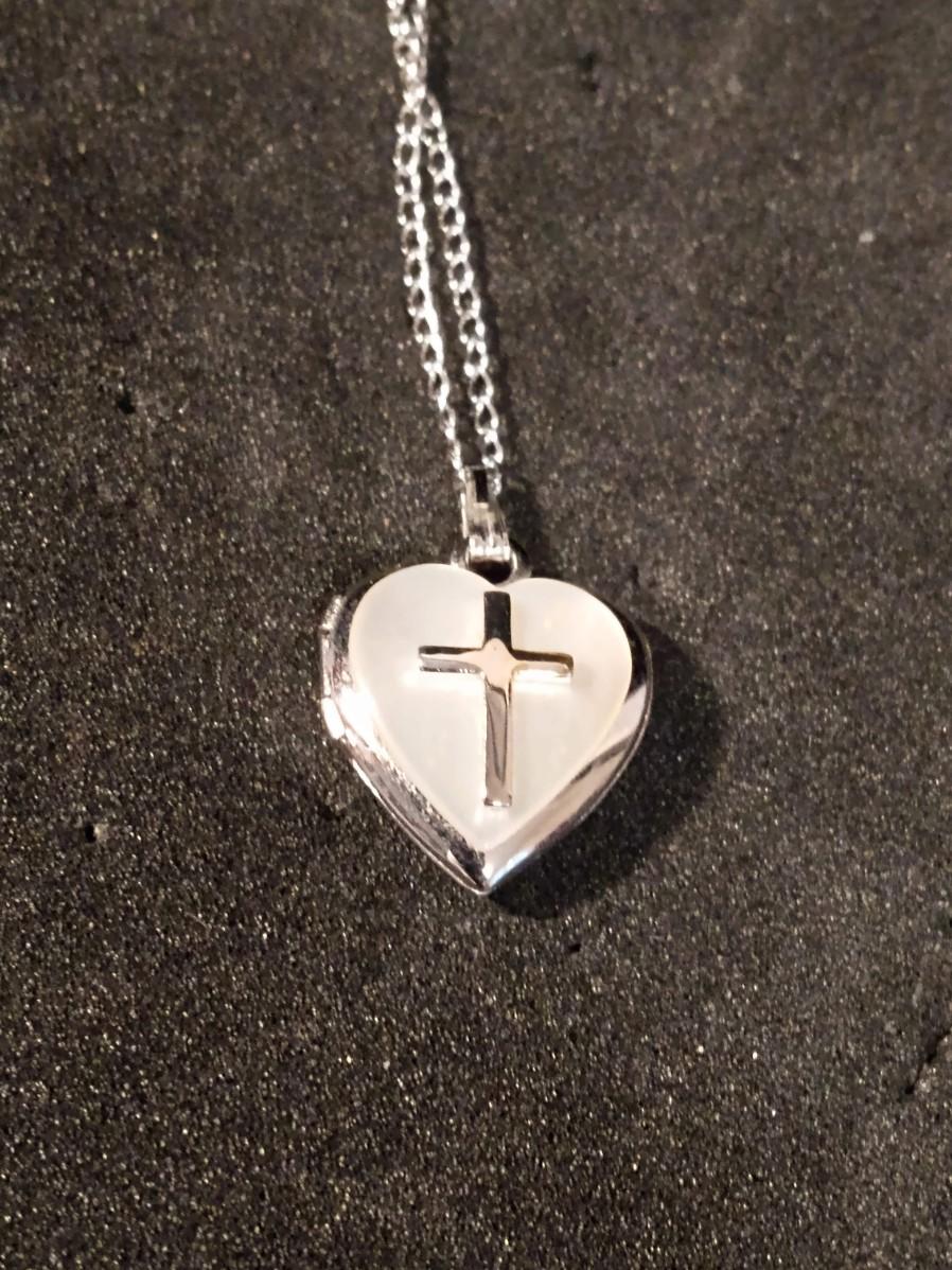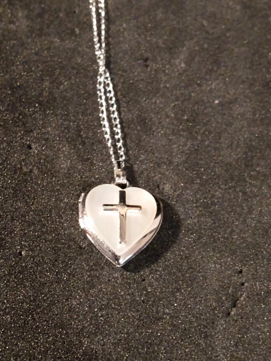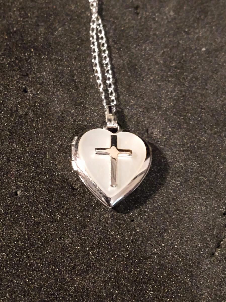 14K GOLD AND PEARL HOOP EARRINGS, HEART LOCKET WITH CROSS