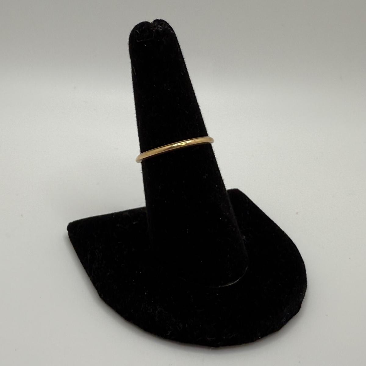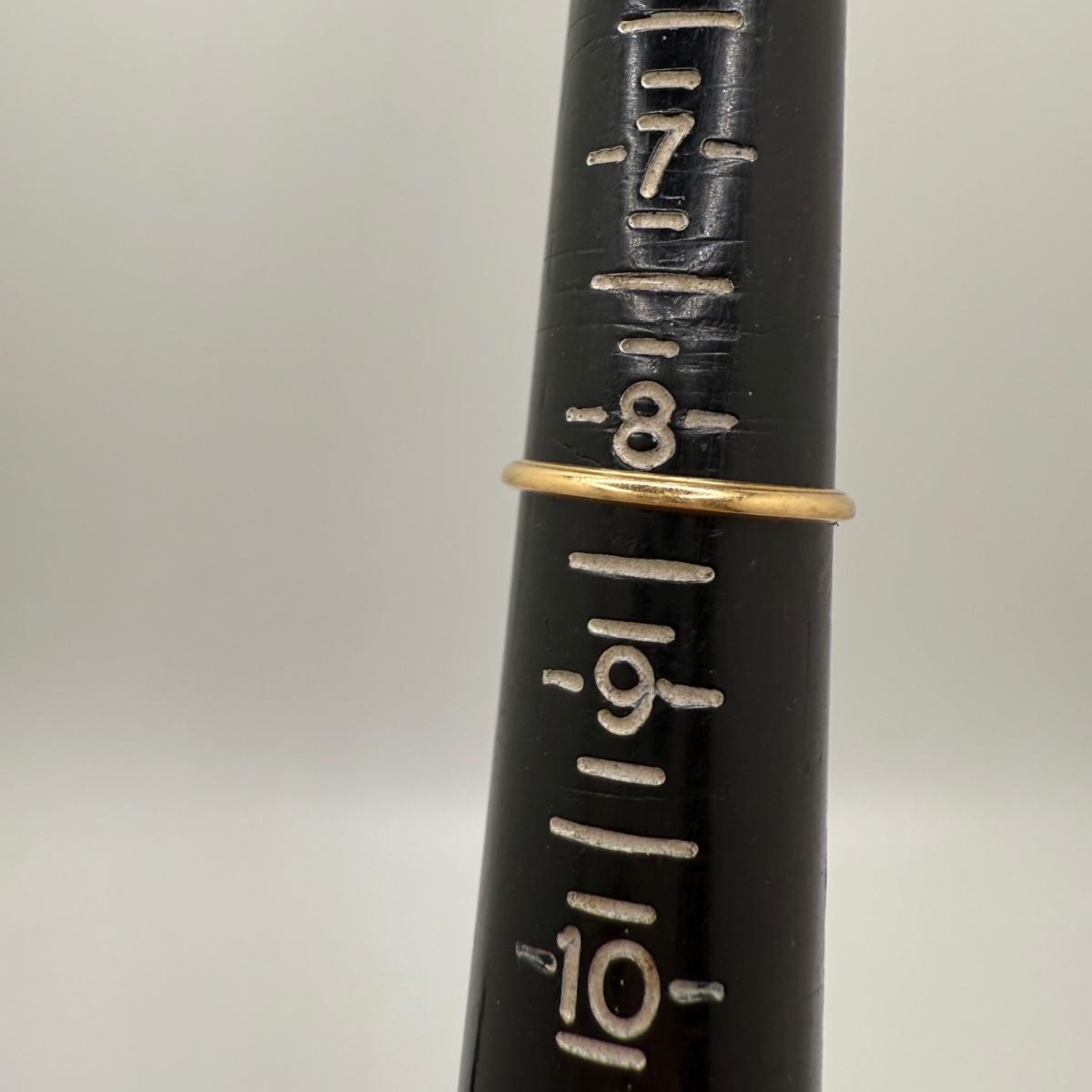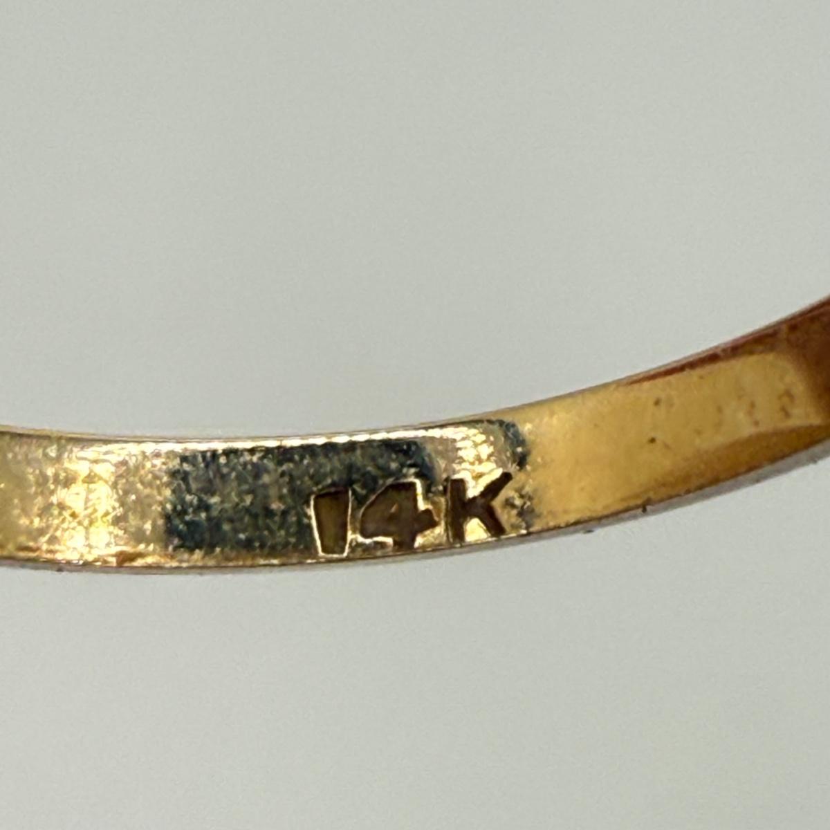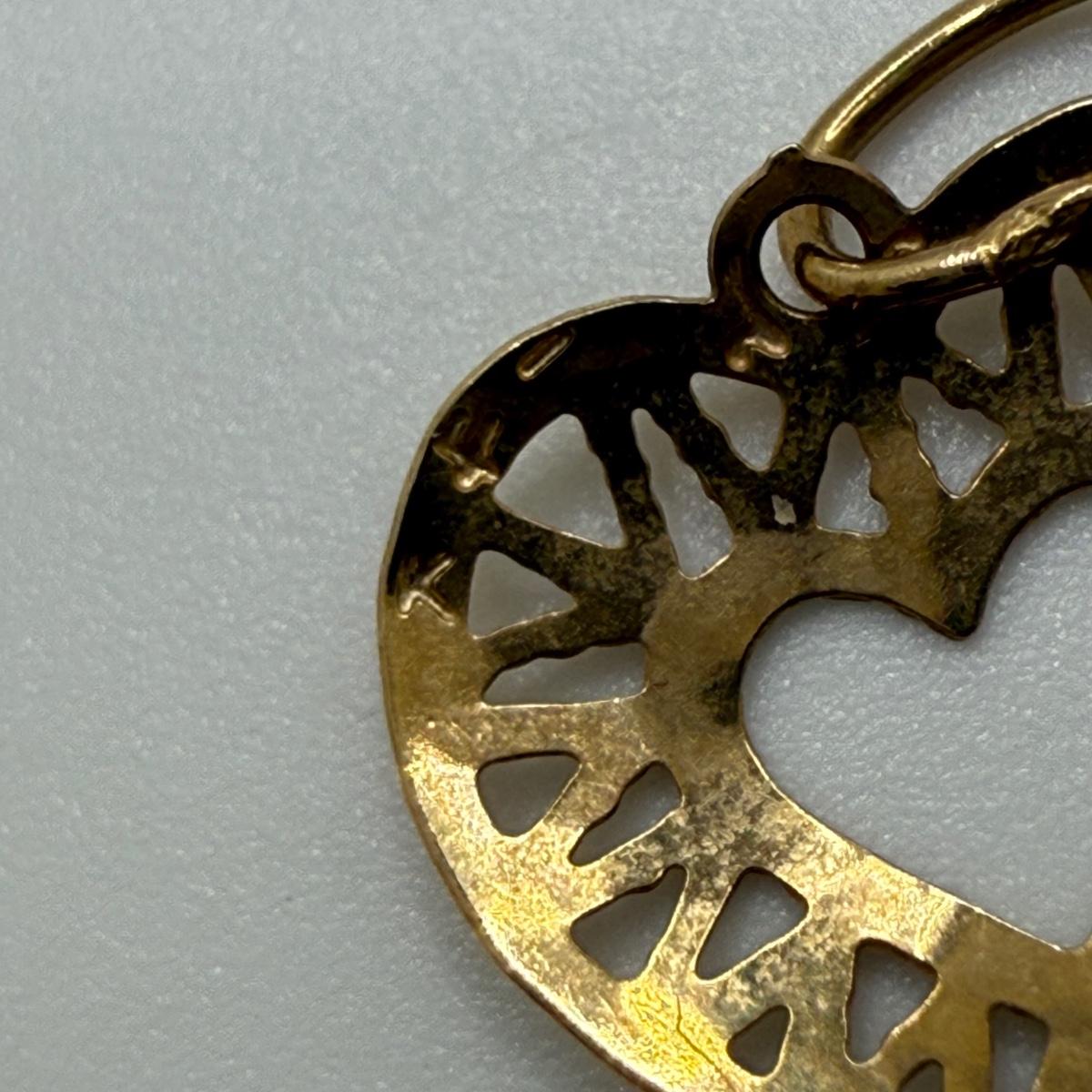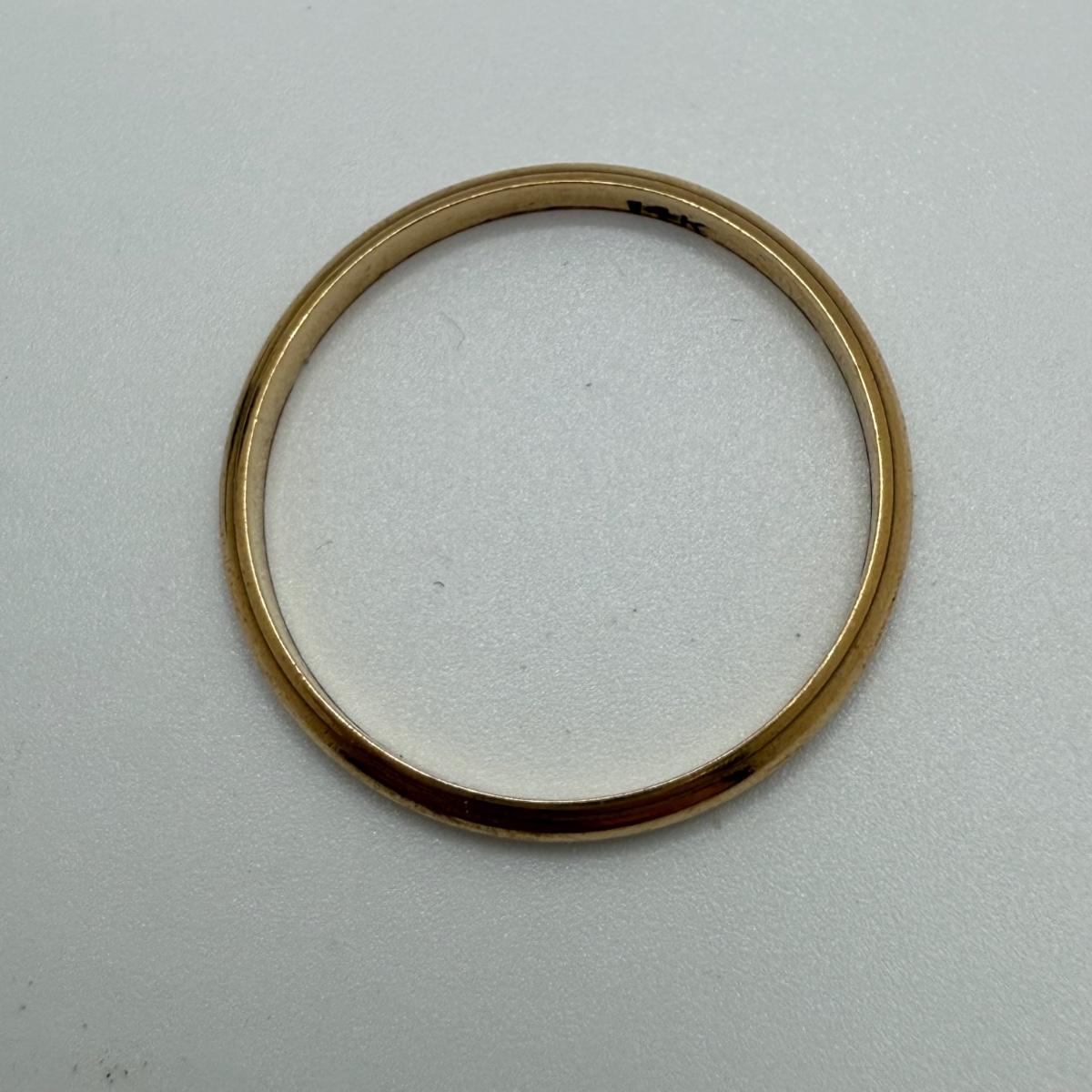Thin ring band is stamped 14K. Ring appears to be size 8.25. Small gold heart pendant included as well. Pendant is stamped 14K.