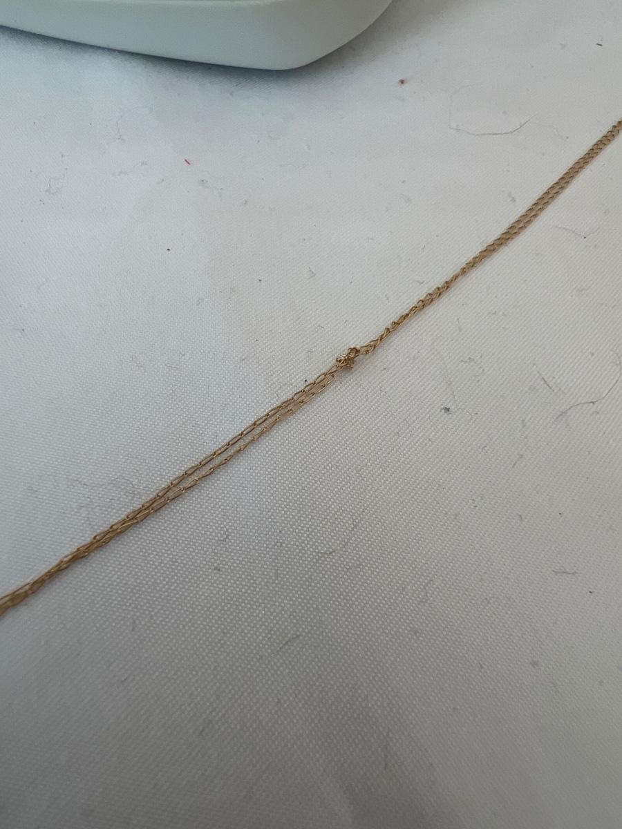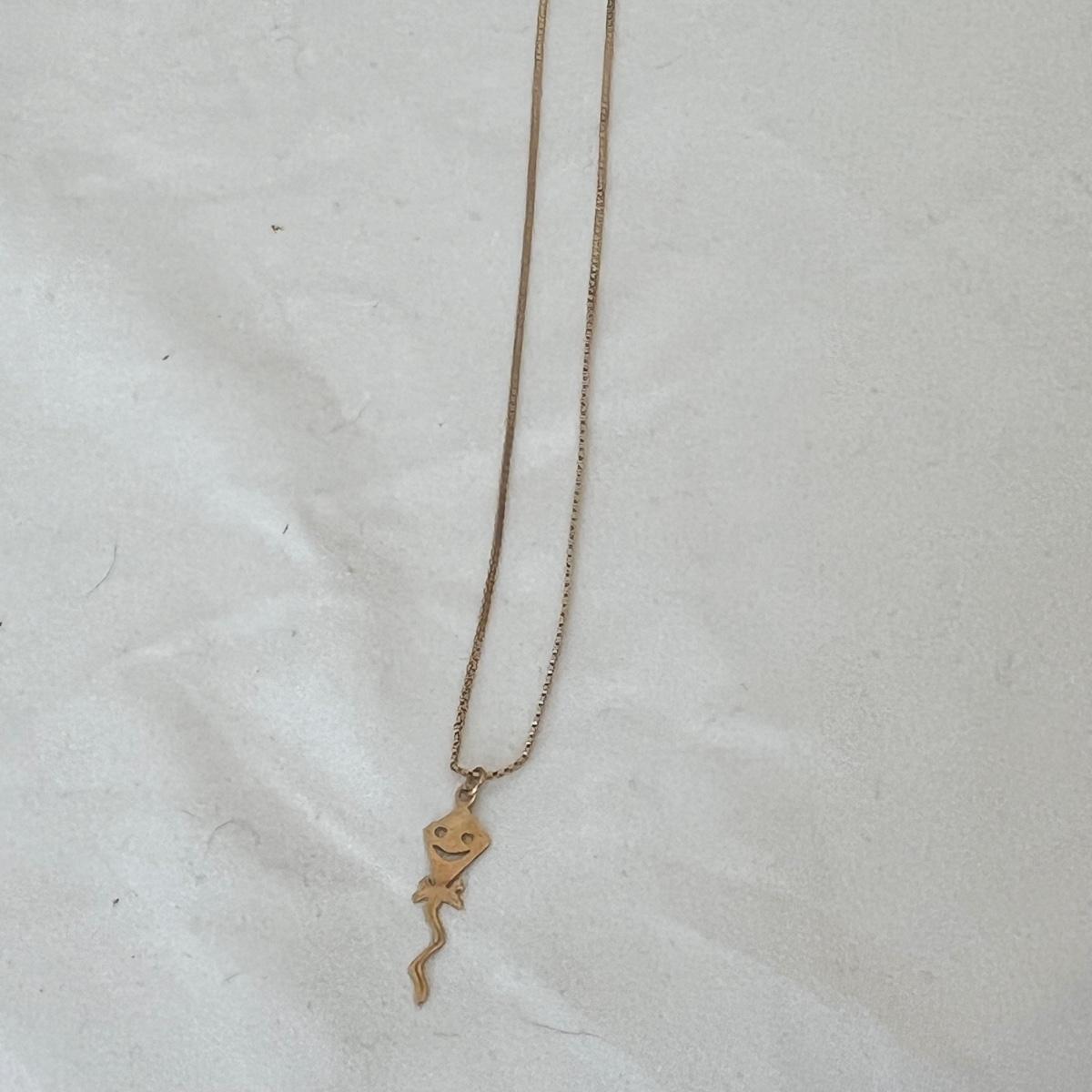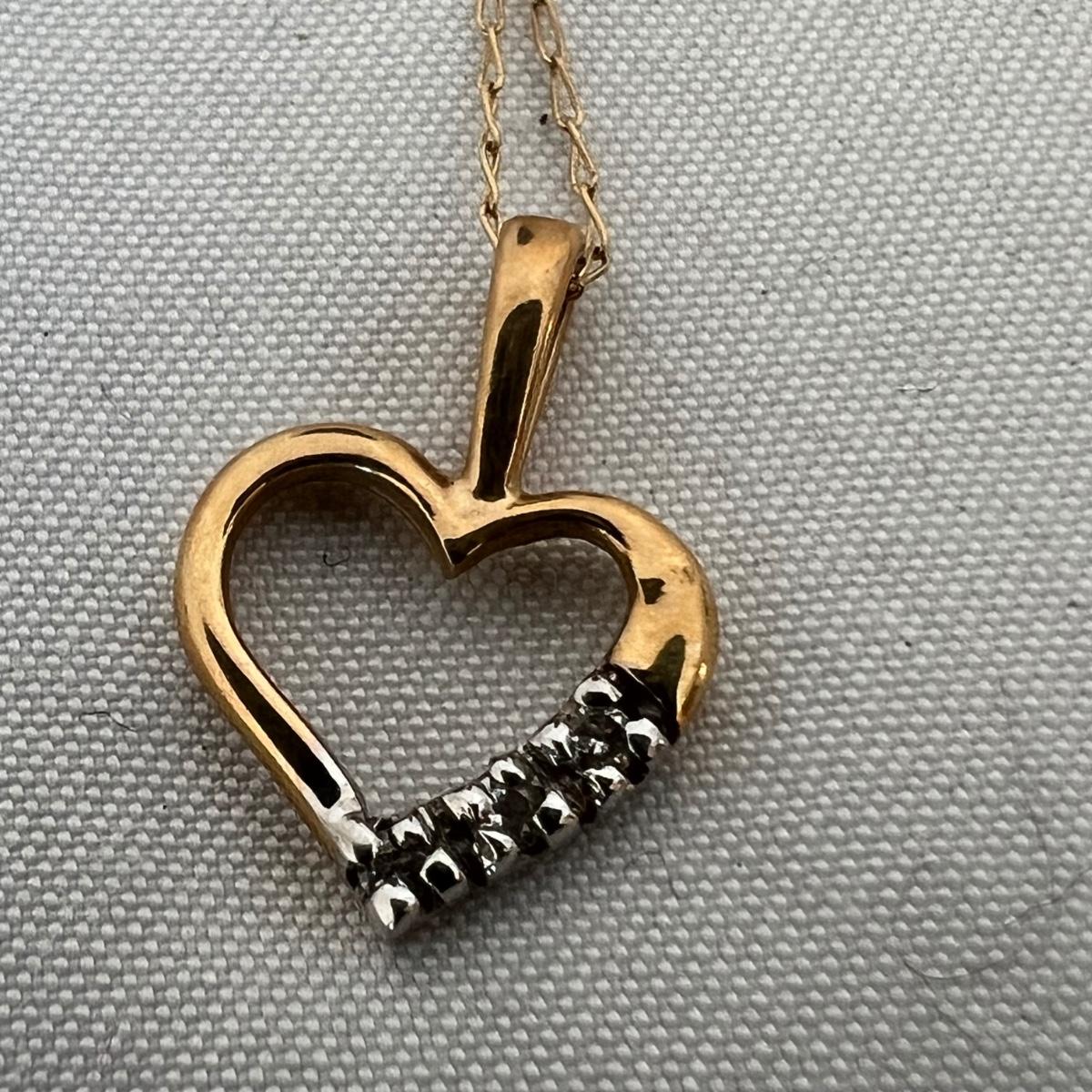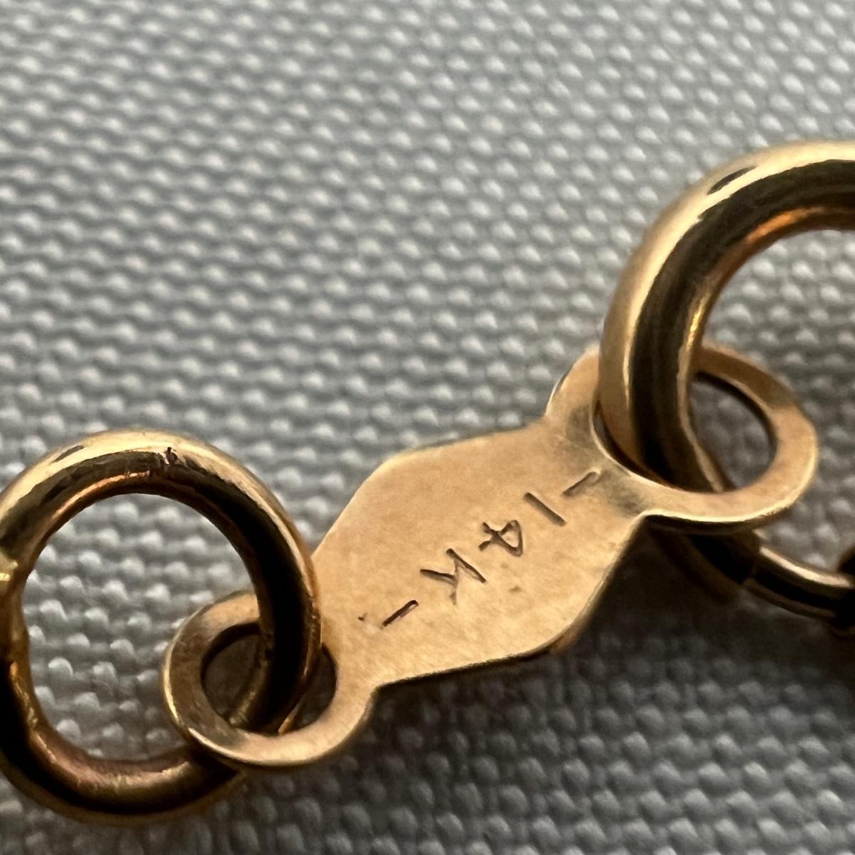 Five necklaces and a large pendant are all marked 14K gold. The only item that is unmarked is the bow shaped pendant. The chain for the heart shaped pendant has a small knot that needs untangling; it is also the longest chain measuring 16” long.