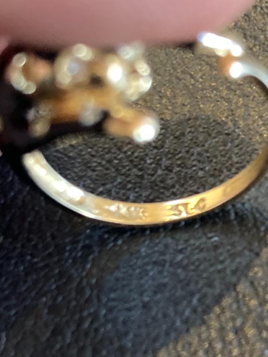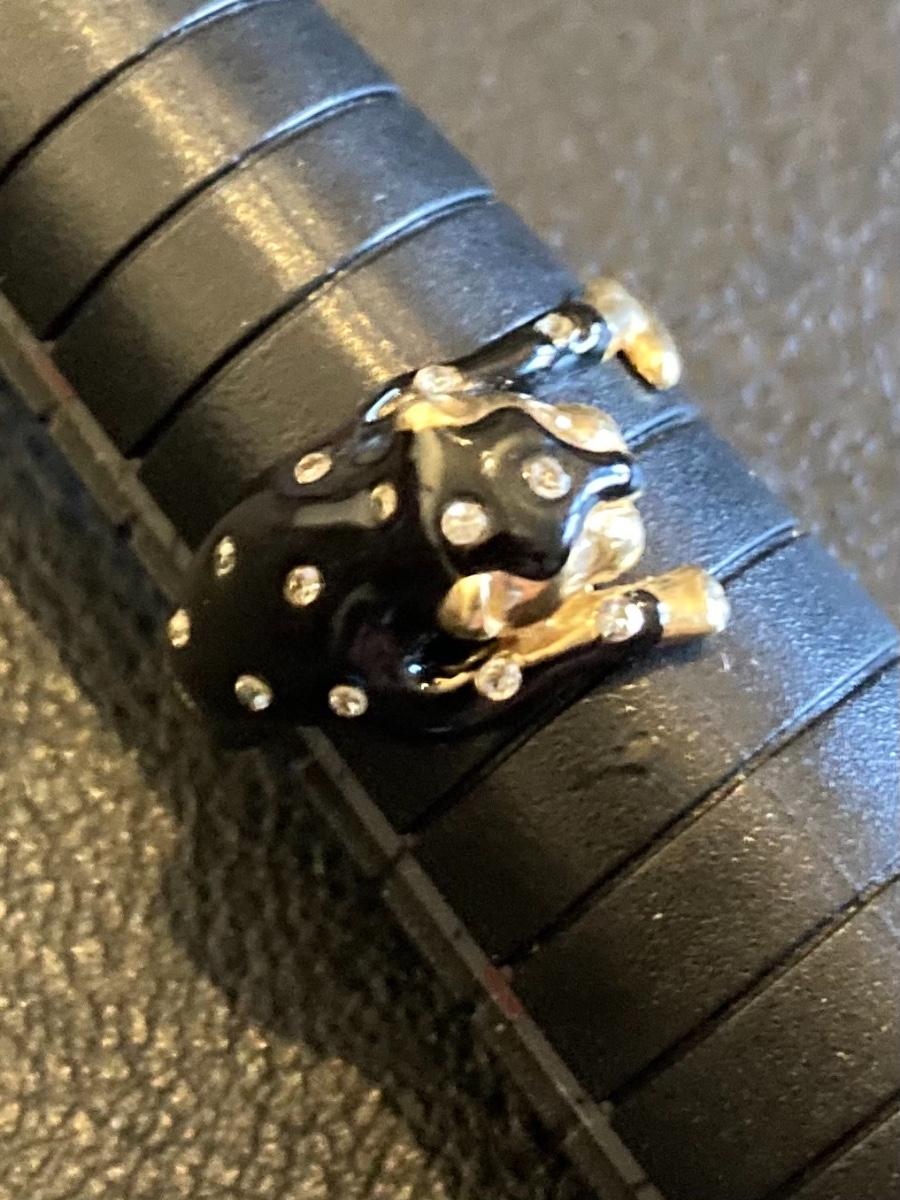 14k Gold Custom Cat Ring with Black Enamel and Diamonds Size 7