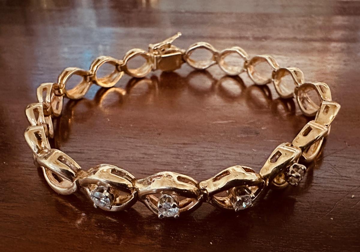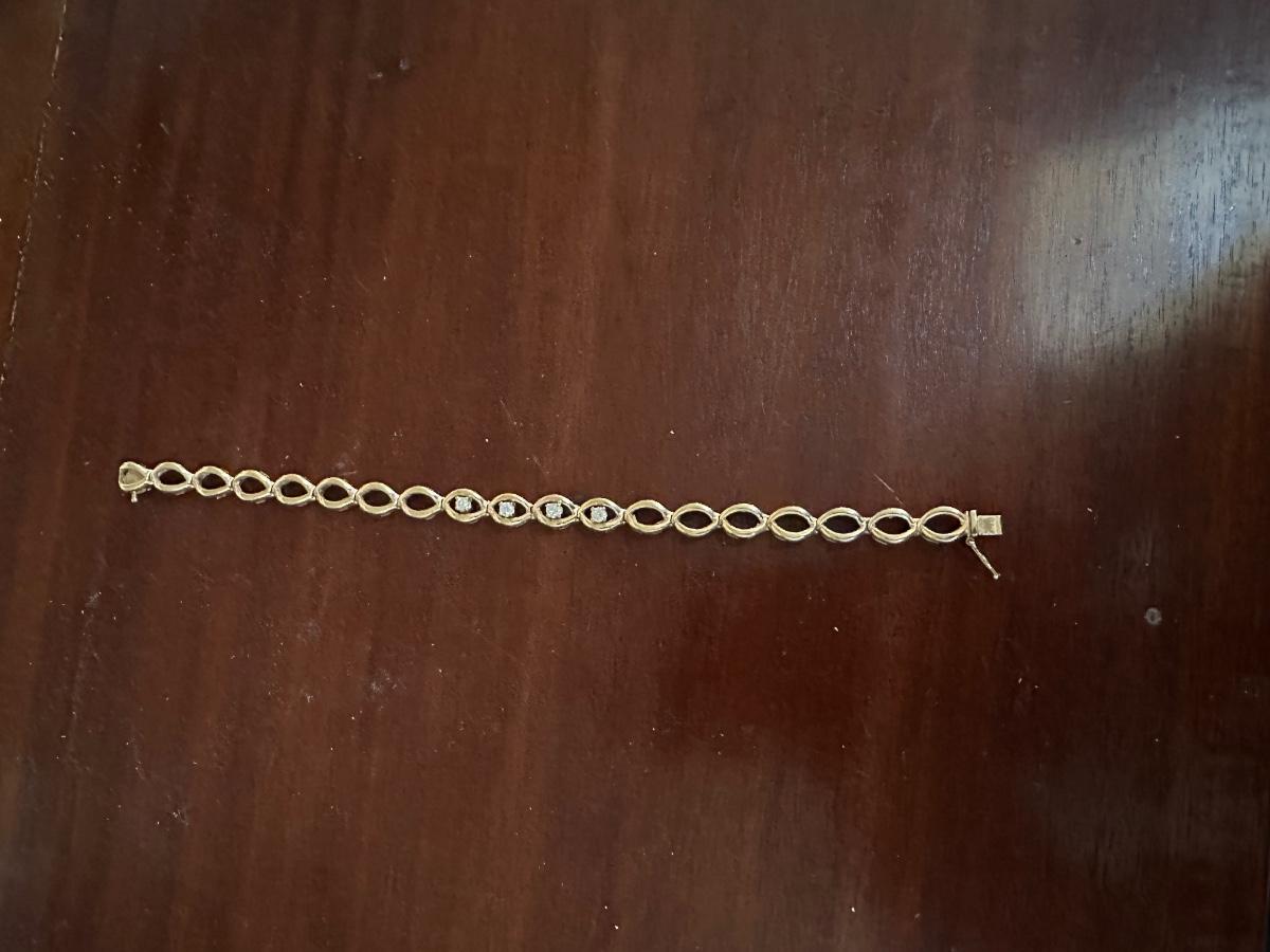 14K GOLD DIAMOND ACCENT BRACELET 7.5 IN LONG, 4 DIAMOND ACCENTS