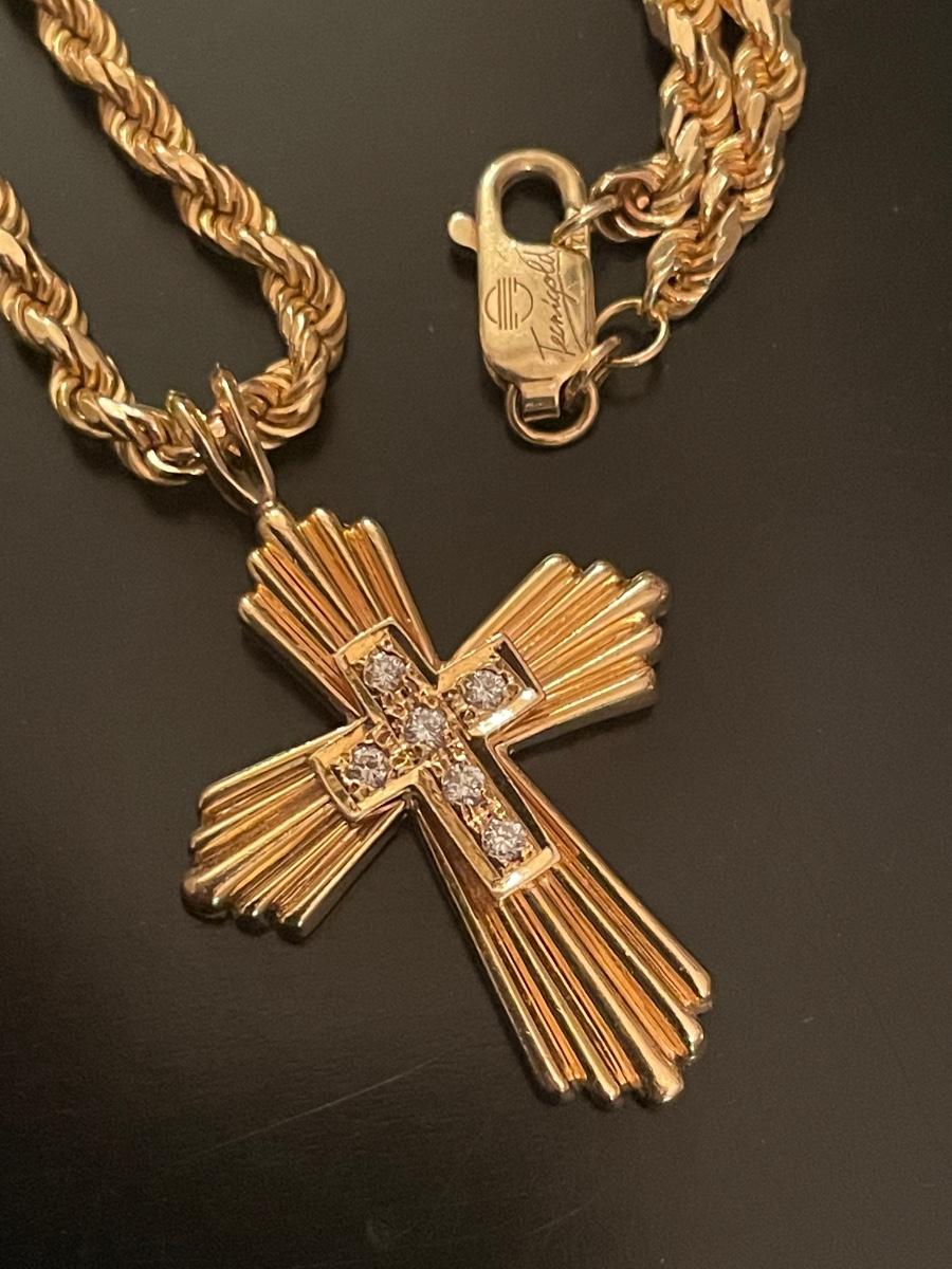 Clasp stamped ‘417 Technigold’ clasp is not original to chain.