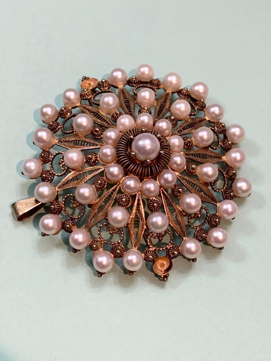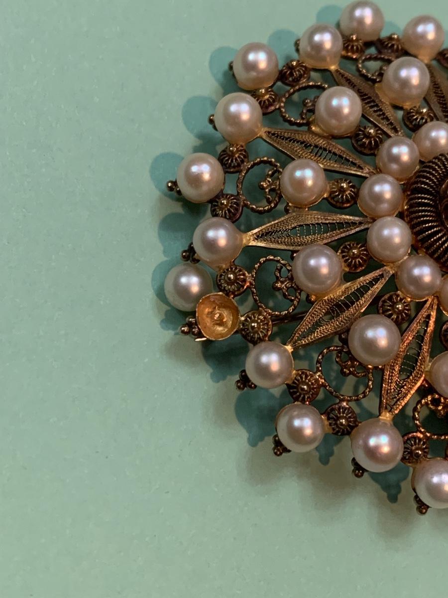 10k Brooch - 19 grams (missing 2 pearls - 1 is here / one is gone)