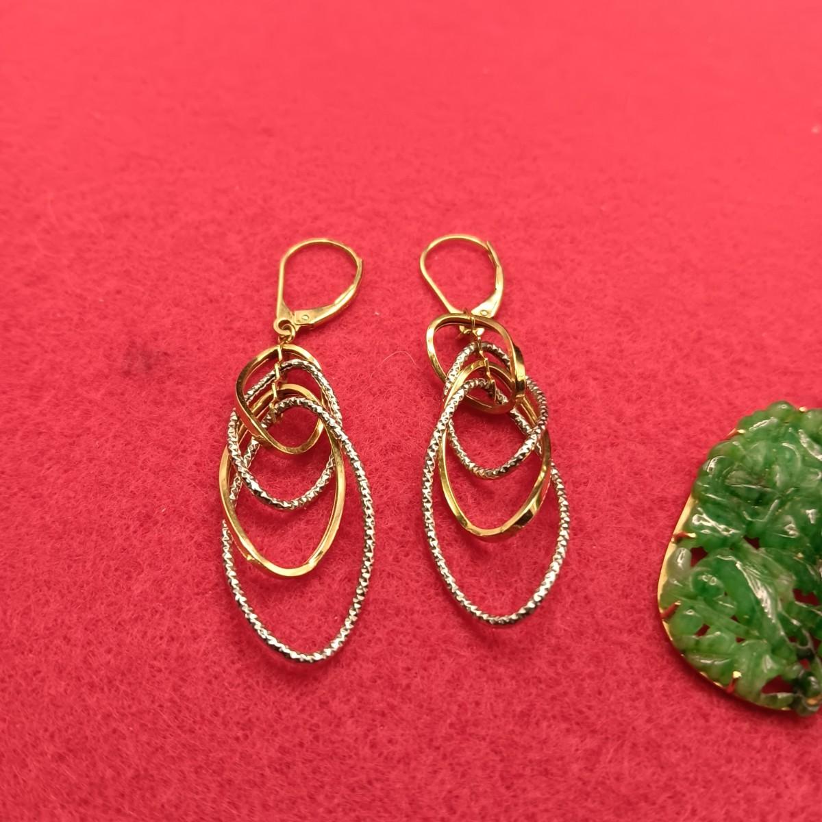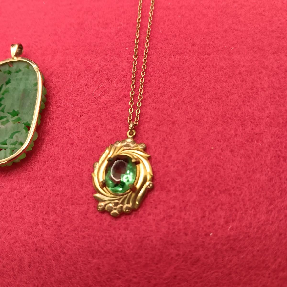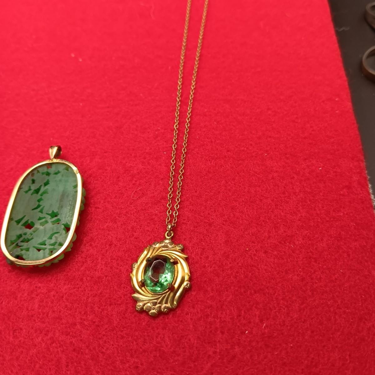 14K GOLD EARRINGS, 18K AND JADE PENDANT AND A COSTUME NECKLACE (GOLD 2.36g)