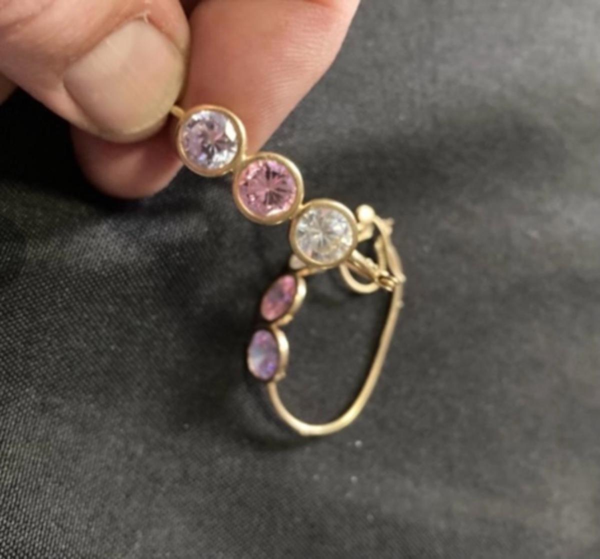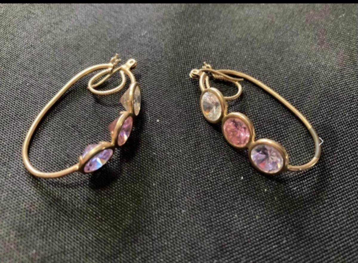 14k Gold Earrings with Colored Stones 1.5” x 3/4”