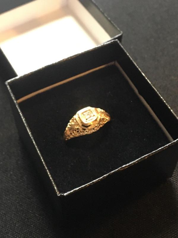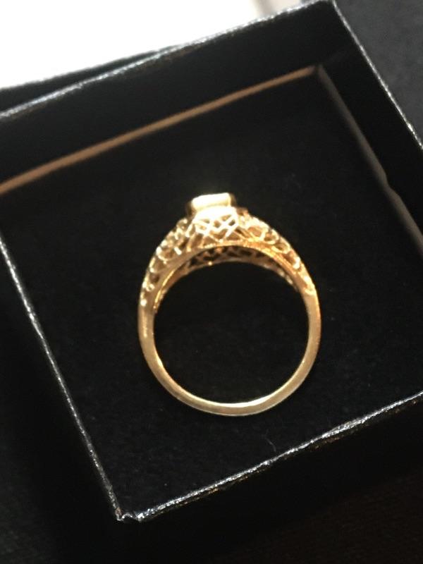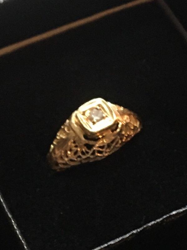 14k Gold Filigree and Solitaire Diamond Ring Size 4.5. LOT 58