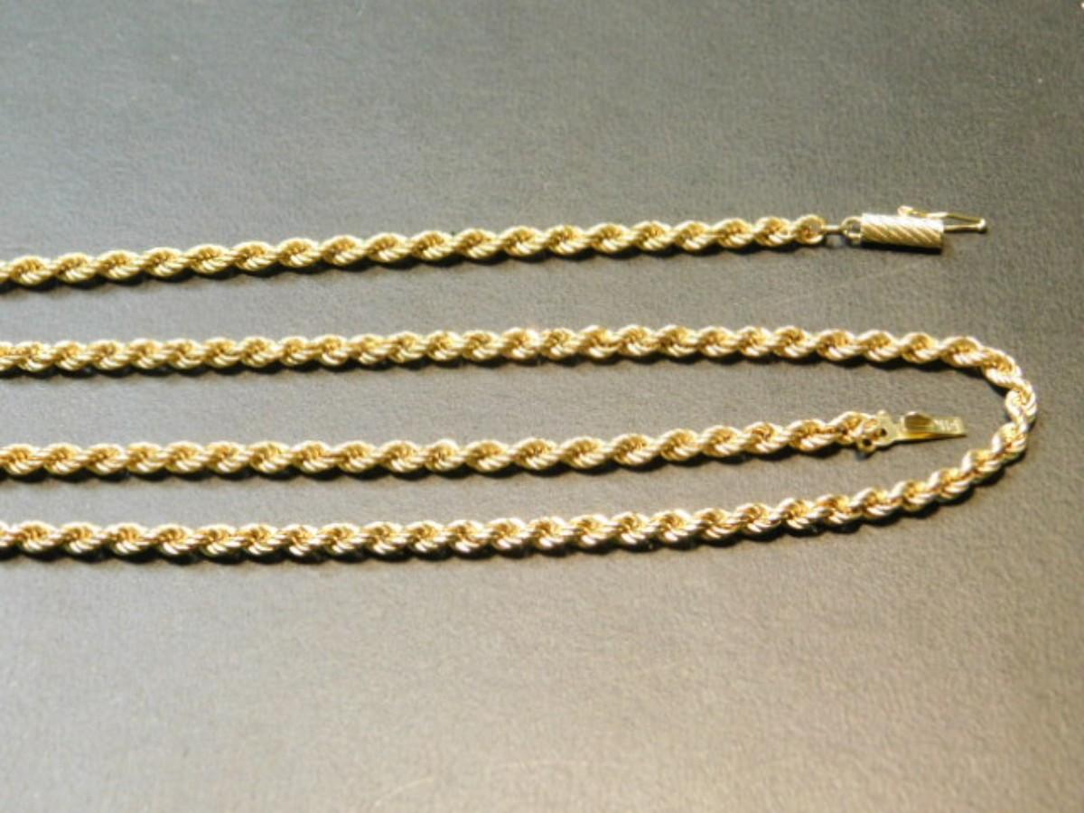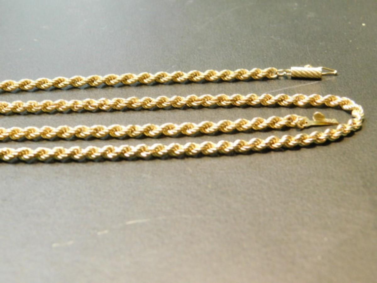 14K Gold French Rope Necklace Approximately 8.9 Grams