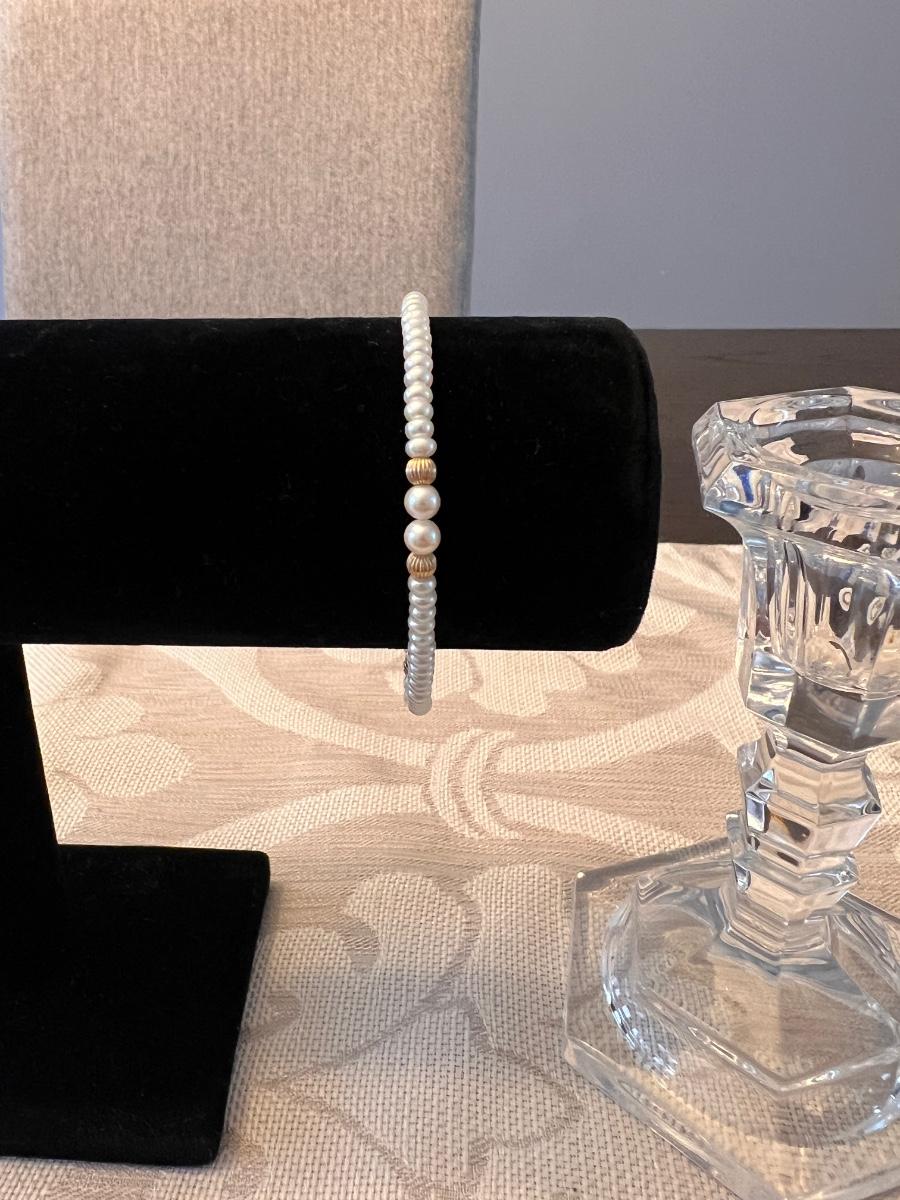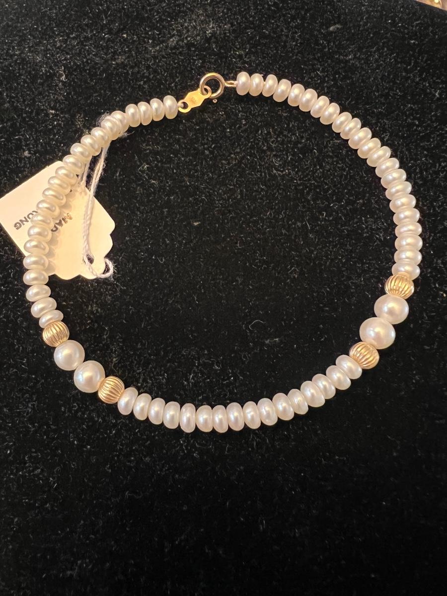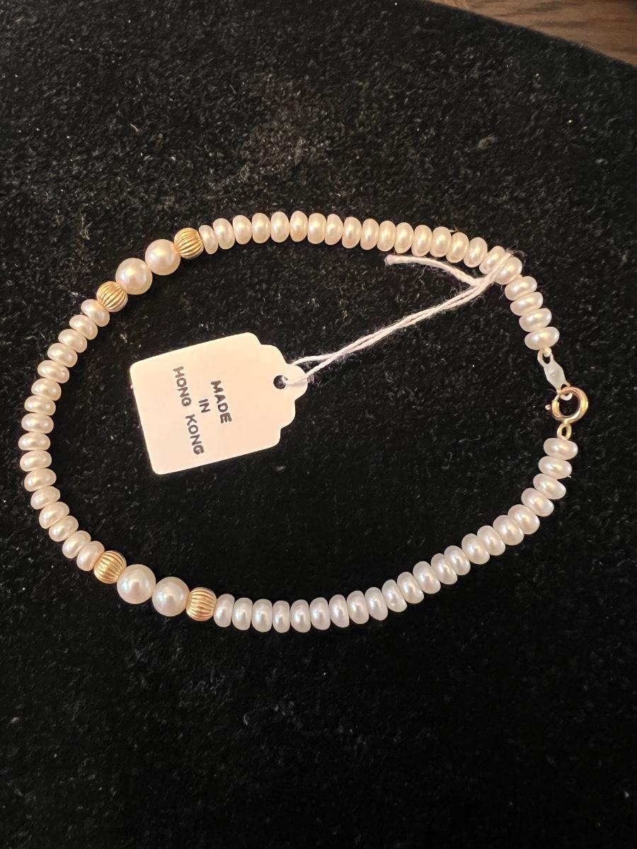 14KT gold fresh water pearl bracelet 7.5 inch long New With Tag