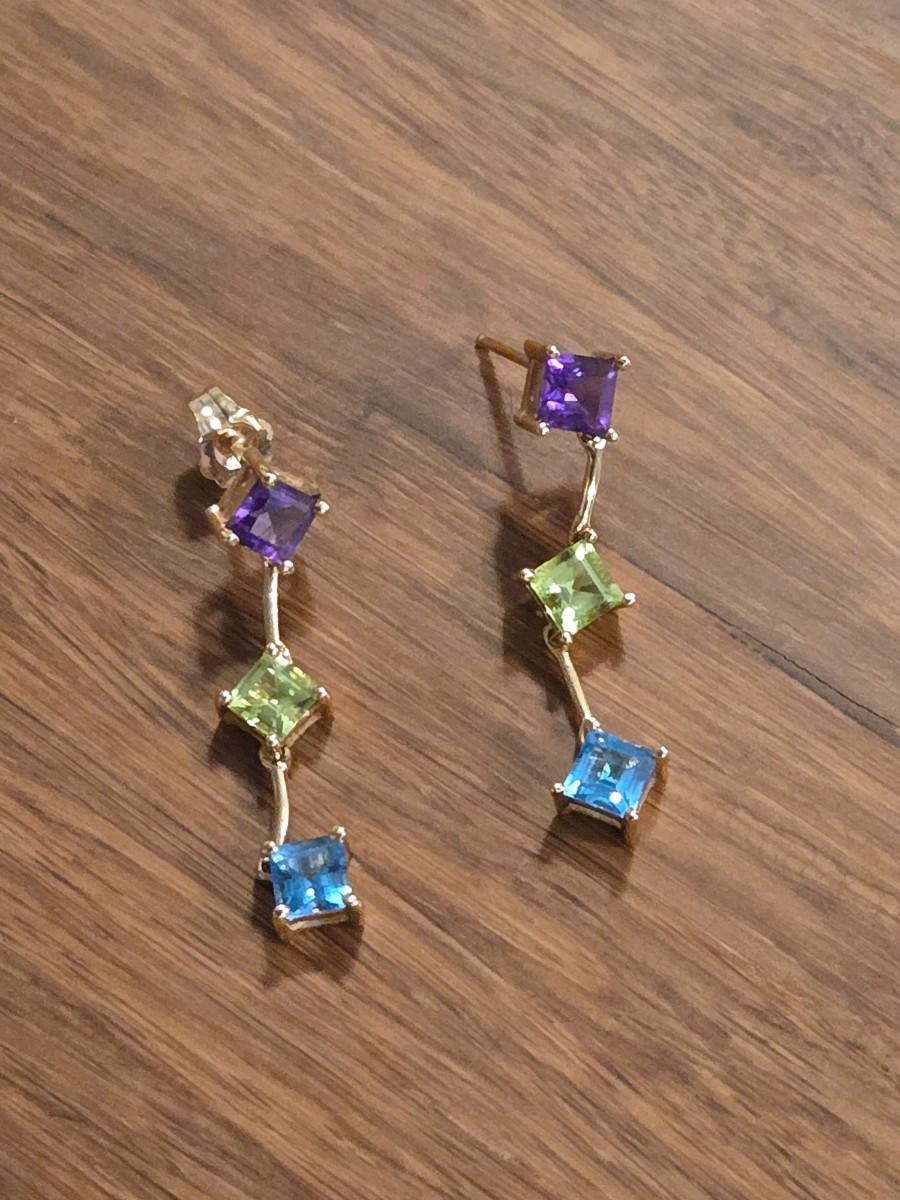 14k Gold Multicolored Gemstone Earrings