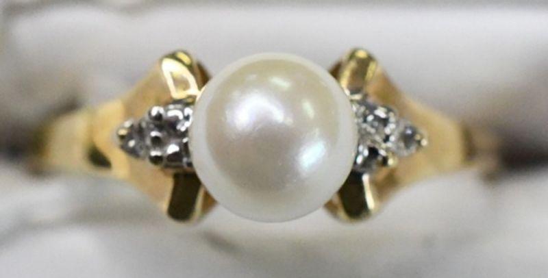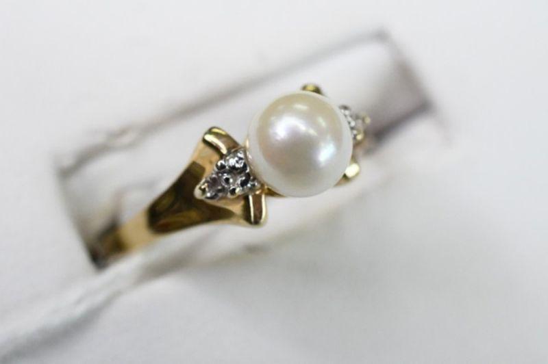 Beautiful 14K Yellow Gold Natural Diamond & Pearl Ring
