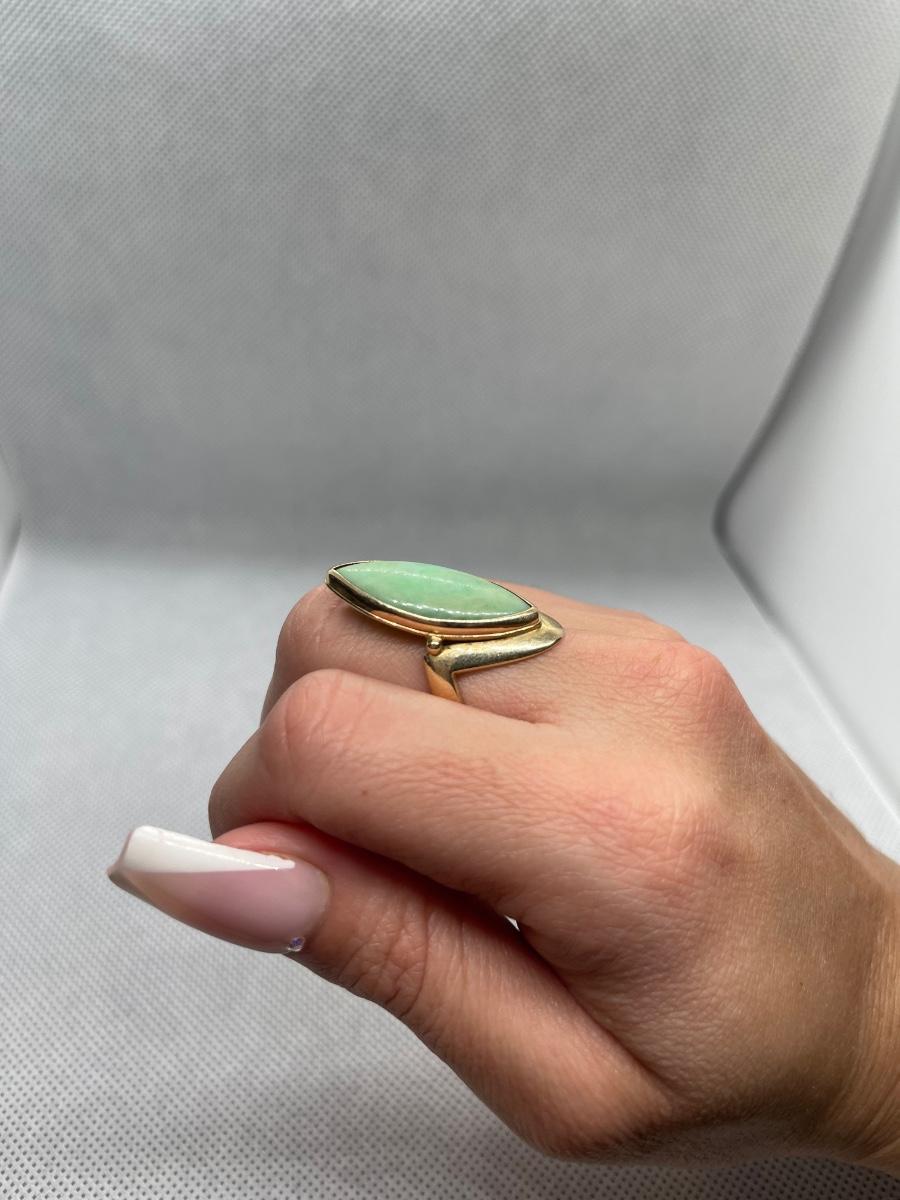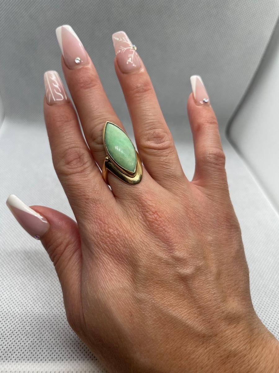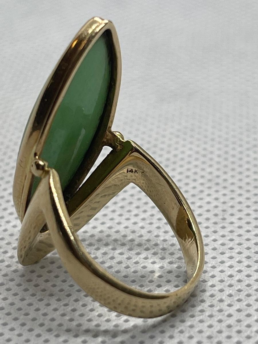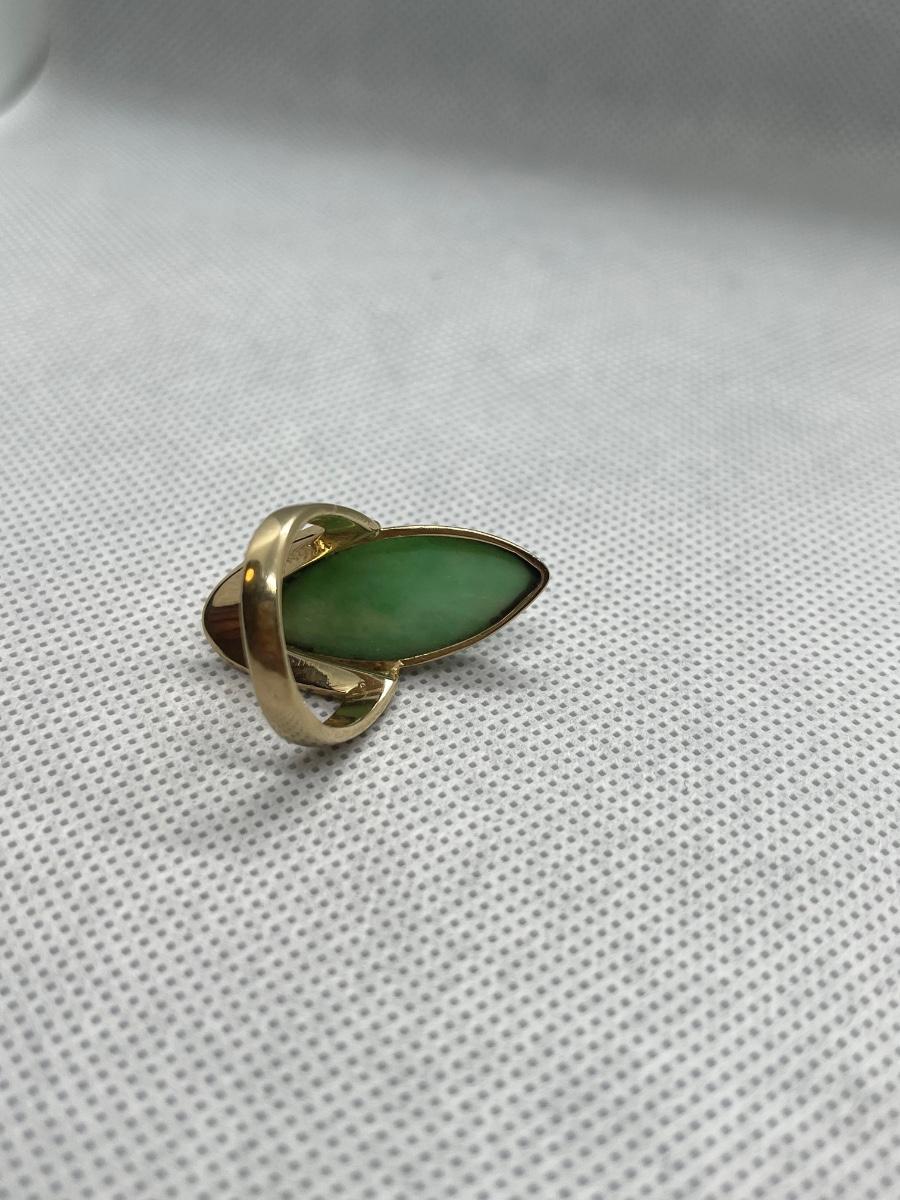 14K GOLD NATURAL GREEN JADE JADEITE - Sz 7 RING NAVETTE