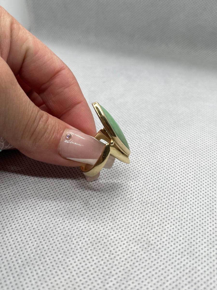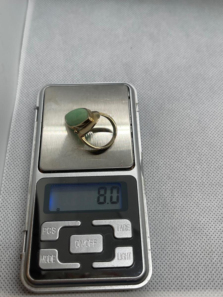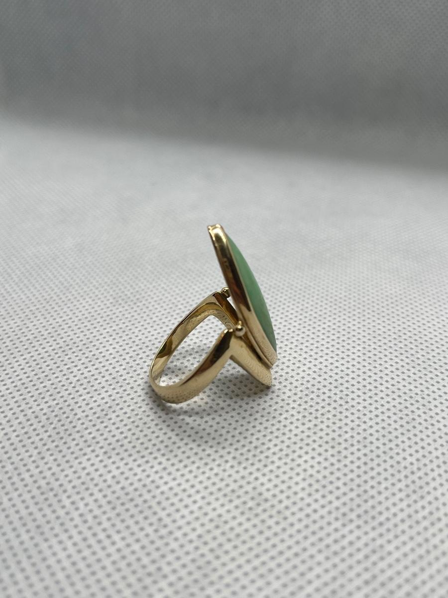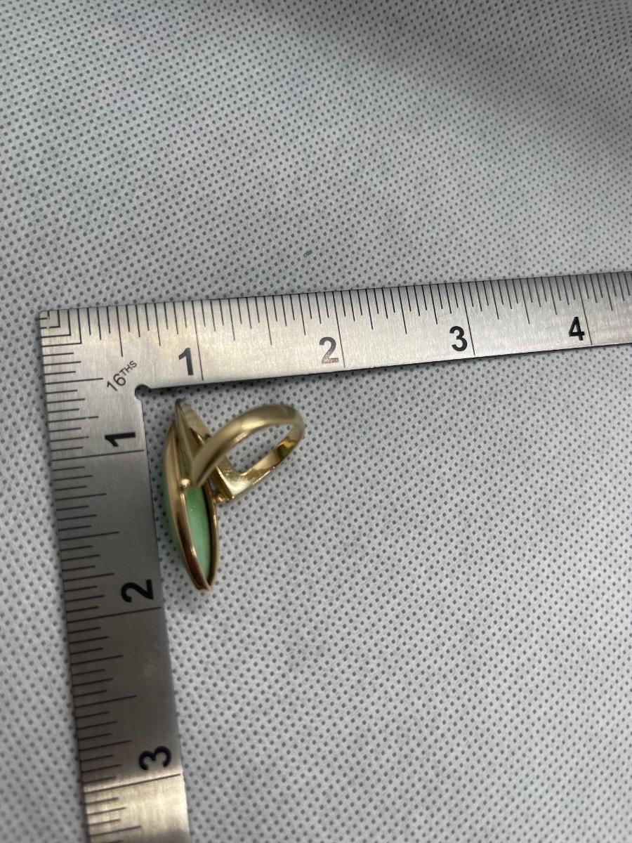 14K GOLD NATURAL GREEN JADE JADEITE - Sz 7 RING NAVETTE