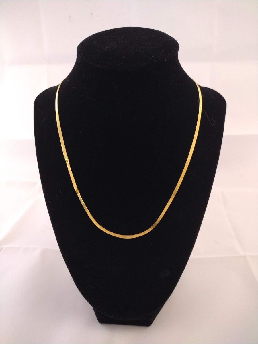 Necklace is marked 14 Italy, 18 inches, weighs 4.5 grams. Necklace has several bends that need to be repaired