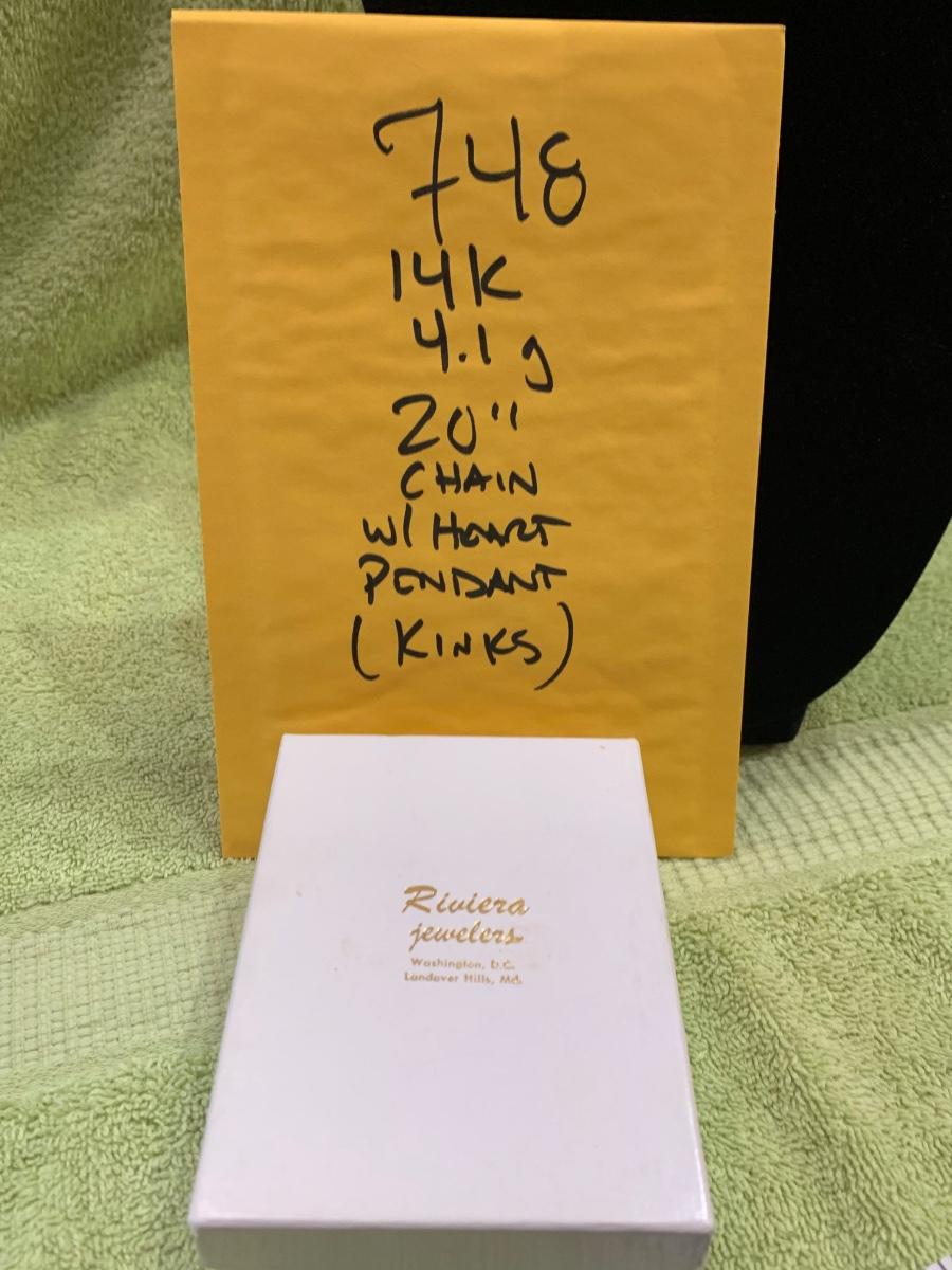14k Gold 20” Necklace & Heart Pendant 4.1 grams