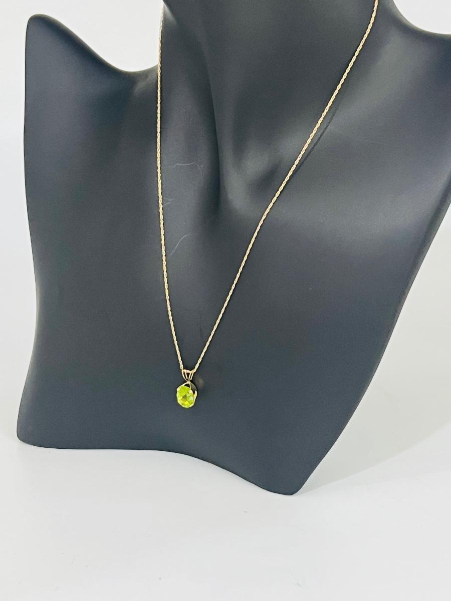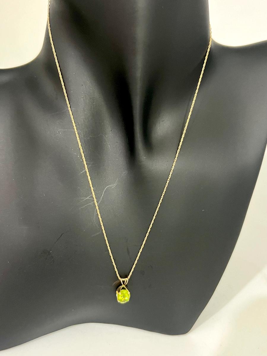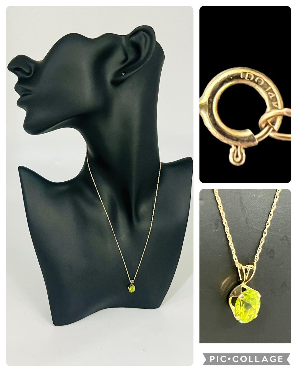 Gorgeous 14K Gold Necklace With Green Pendant. Necklace measures 18 inches