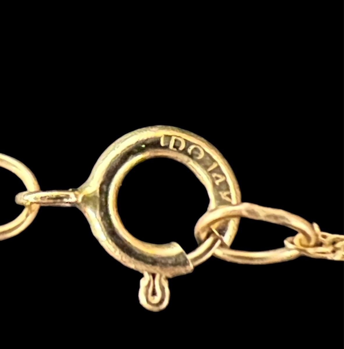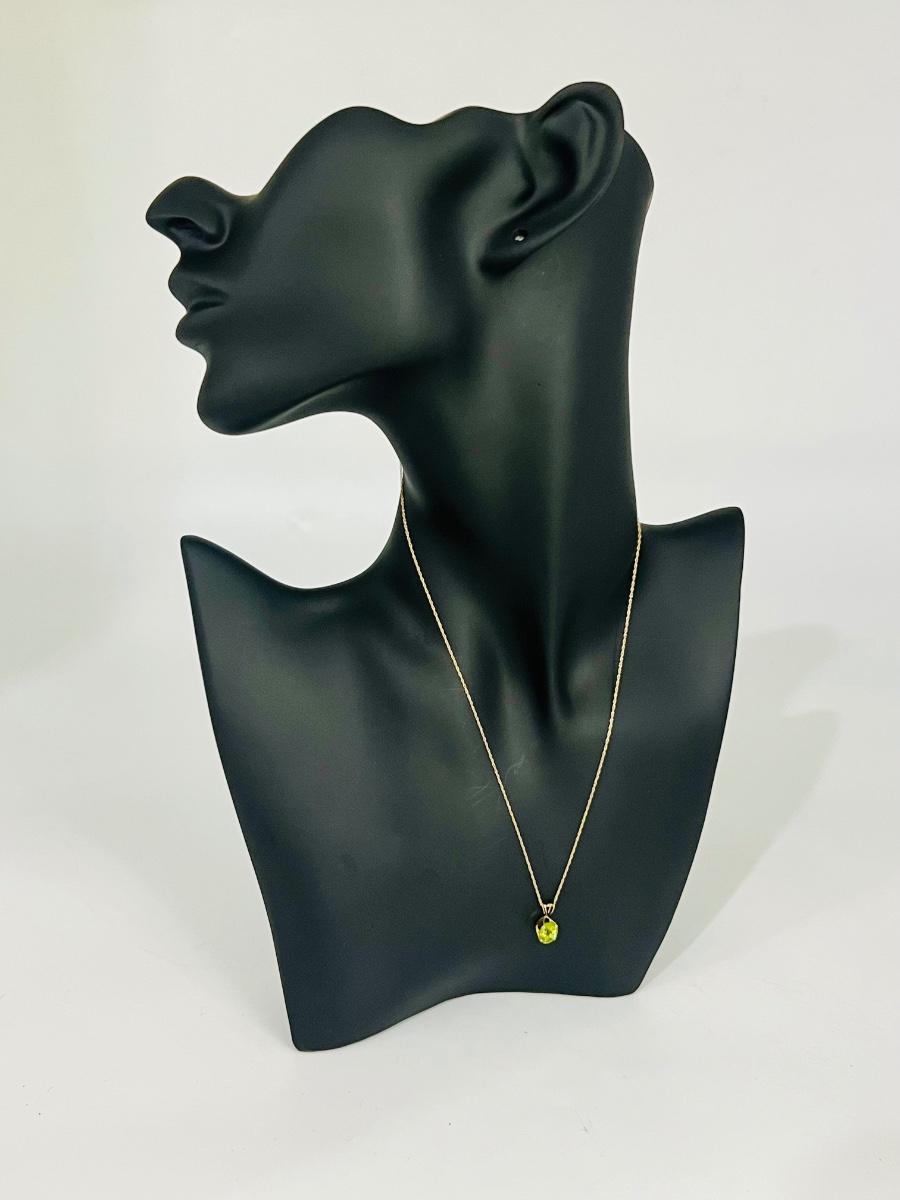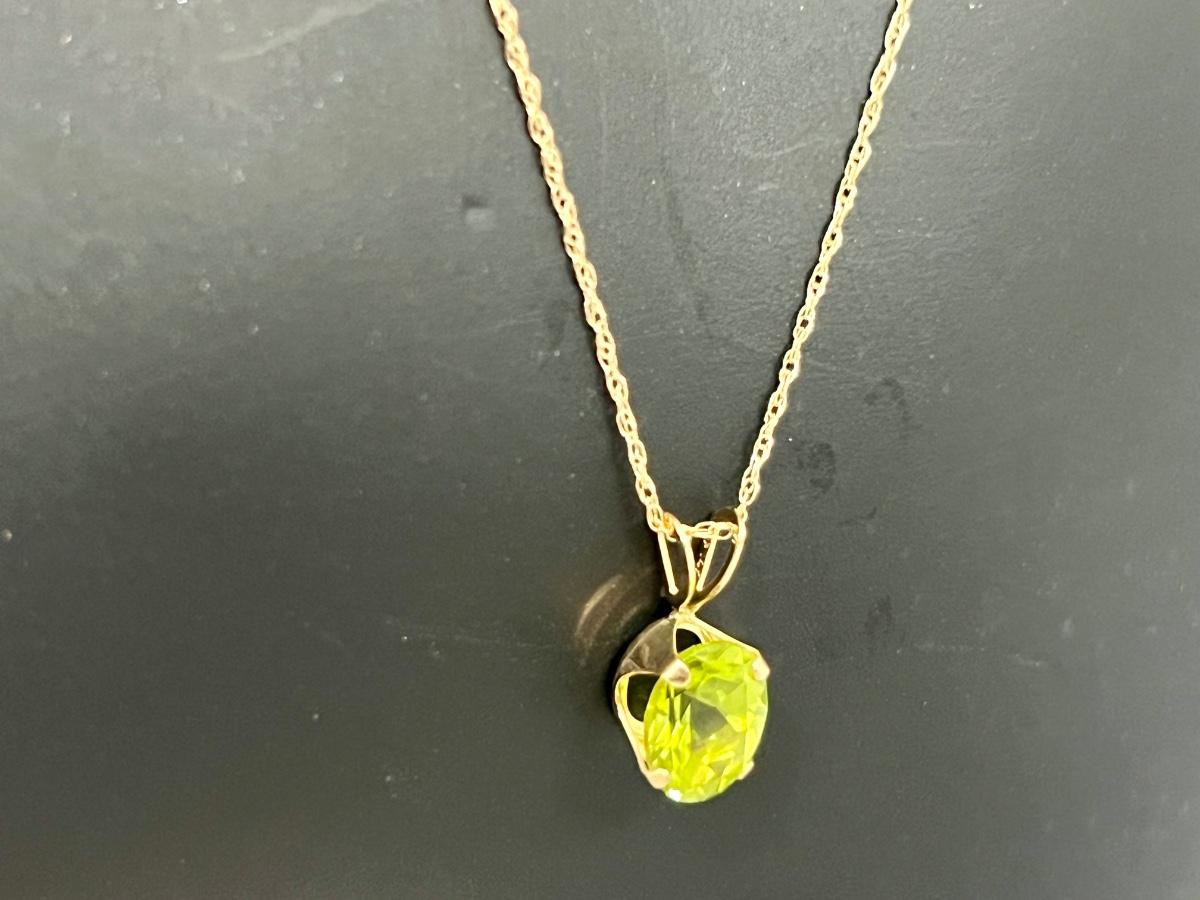 Gorgeous 14K Gold Necklace With Green Pendant. Necklace measures 18 inches