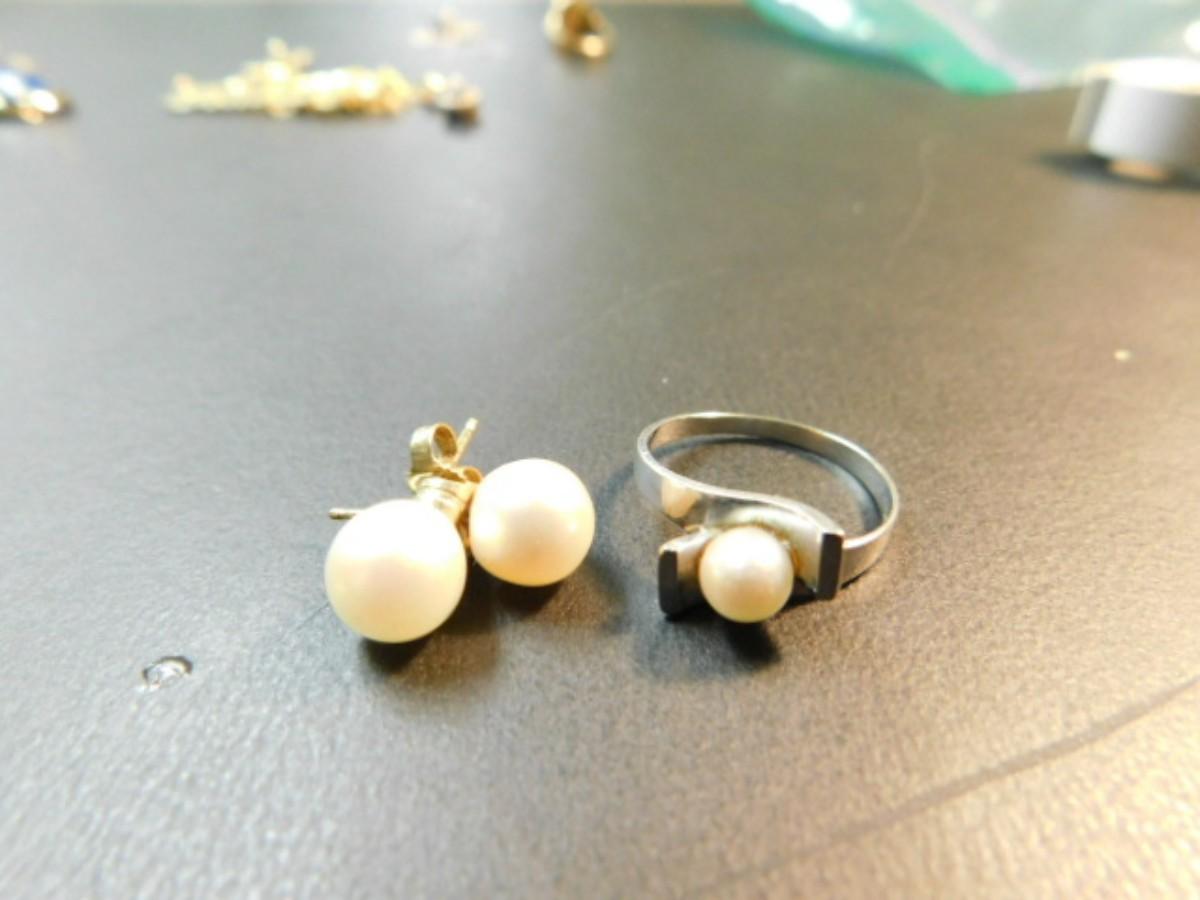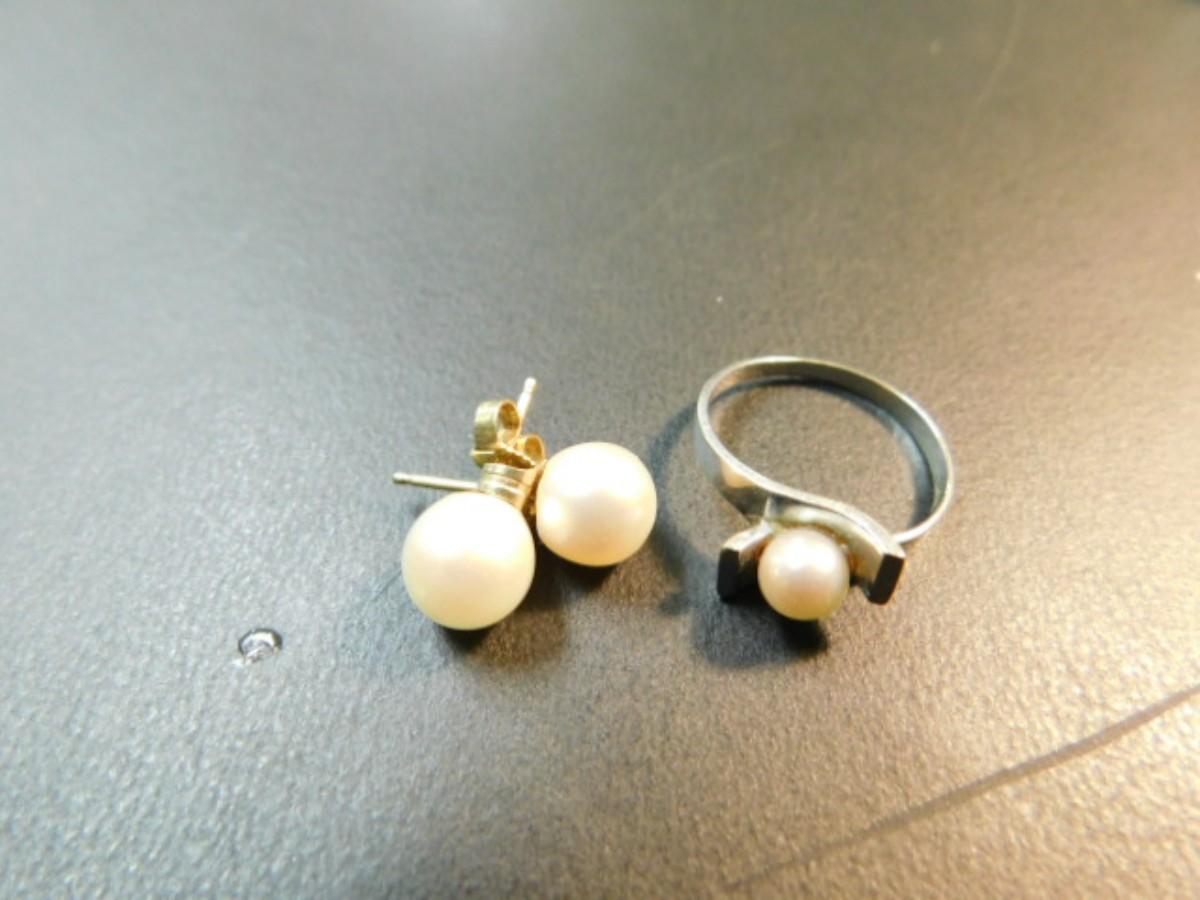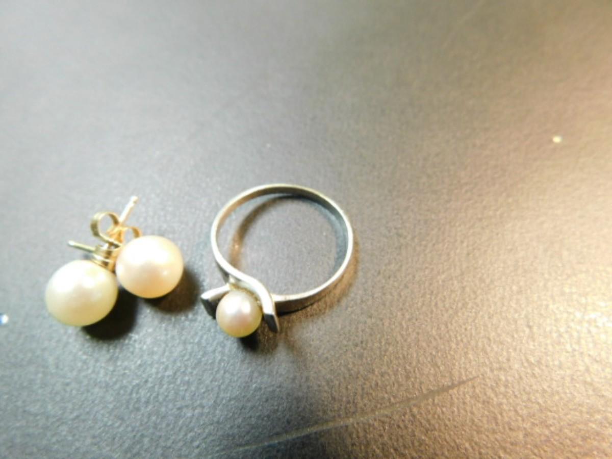 14K Gold Pearl Earring and Ring Set Approximately 3.4 Grams