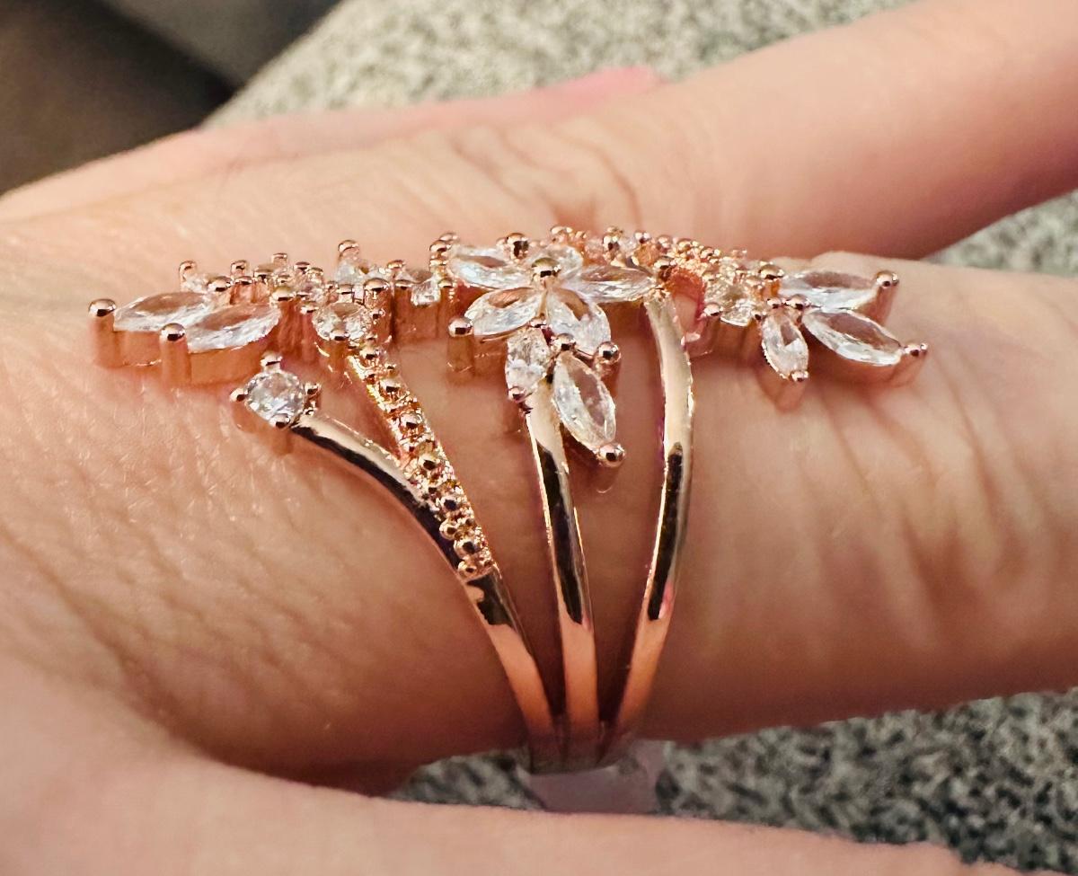 Size 8 beautiful rose gold plated cocktail ring.