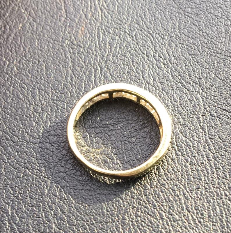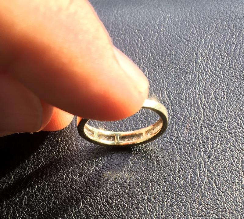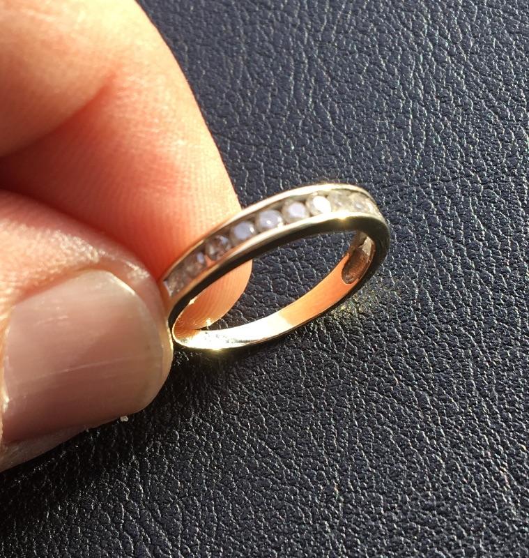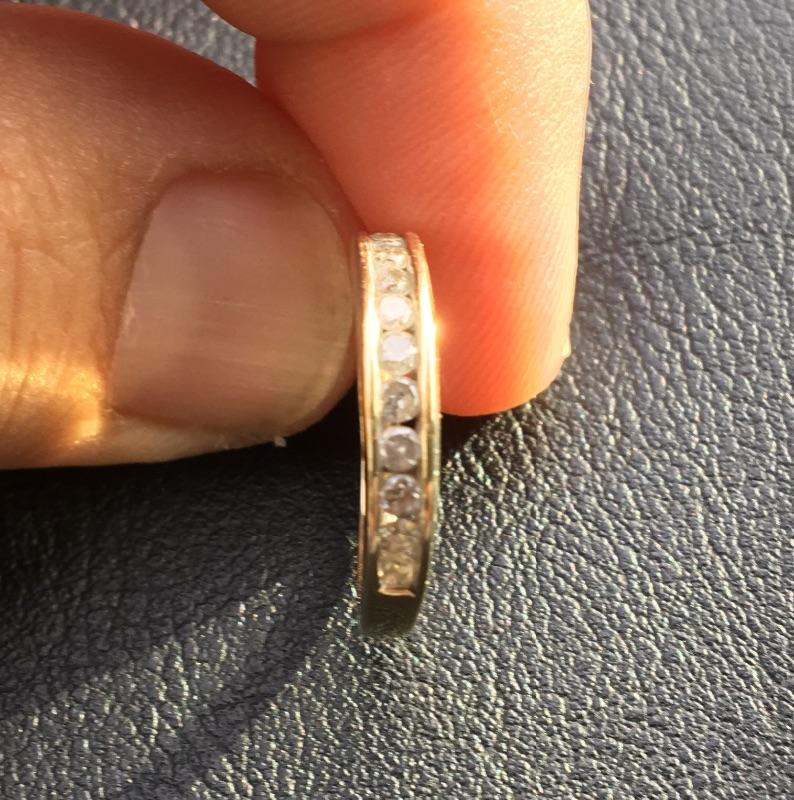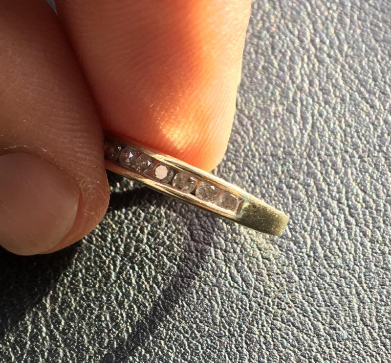 Beautiful gold ring with graduated diamonds that are all cut to about .03-.05 carats each. Tested 14k gold. Size 6. Delivery and shipping services available. Please contact us to request a quote.